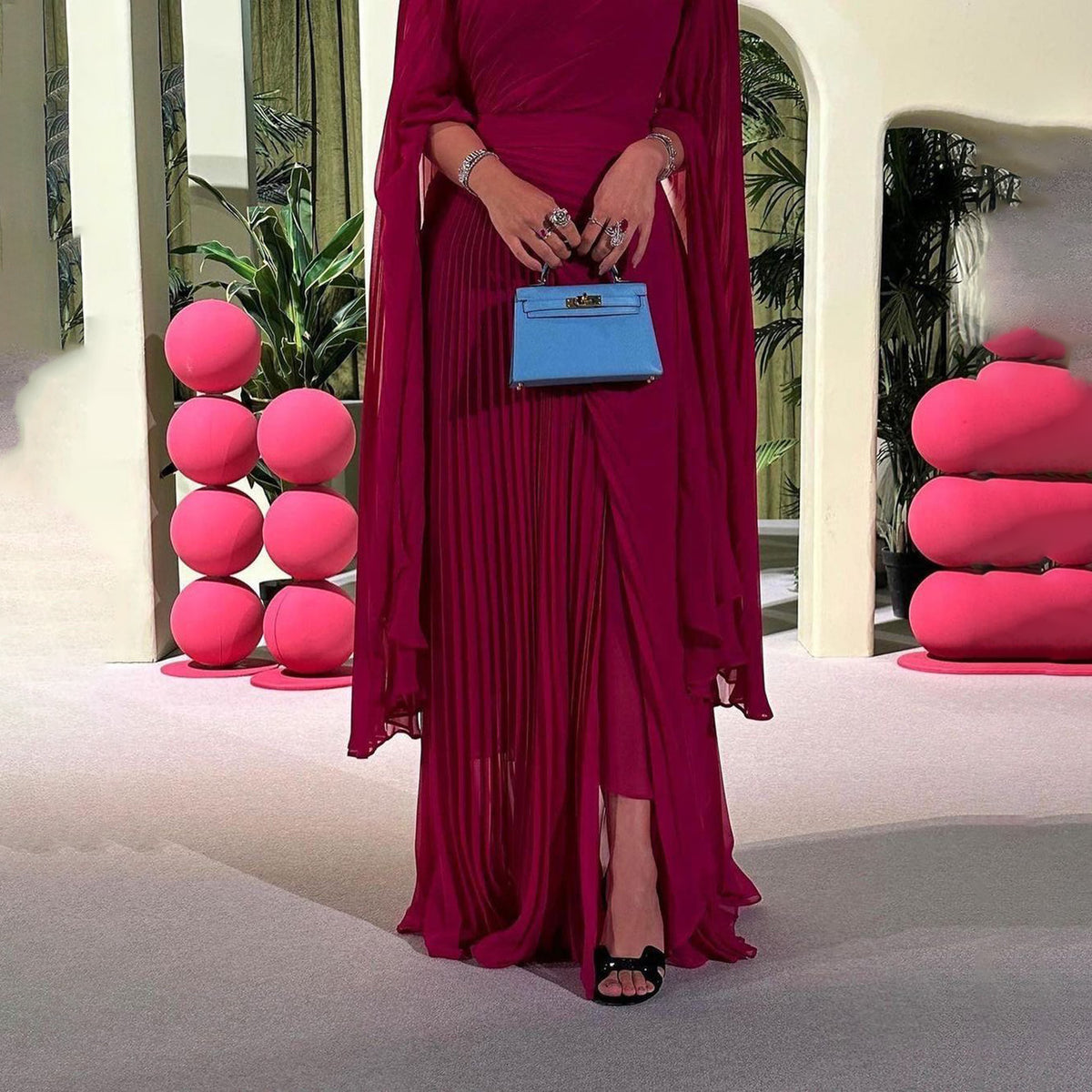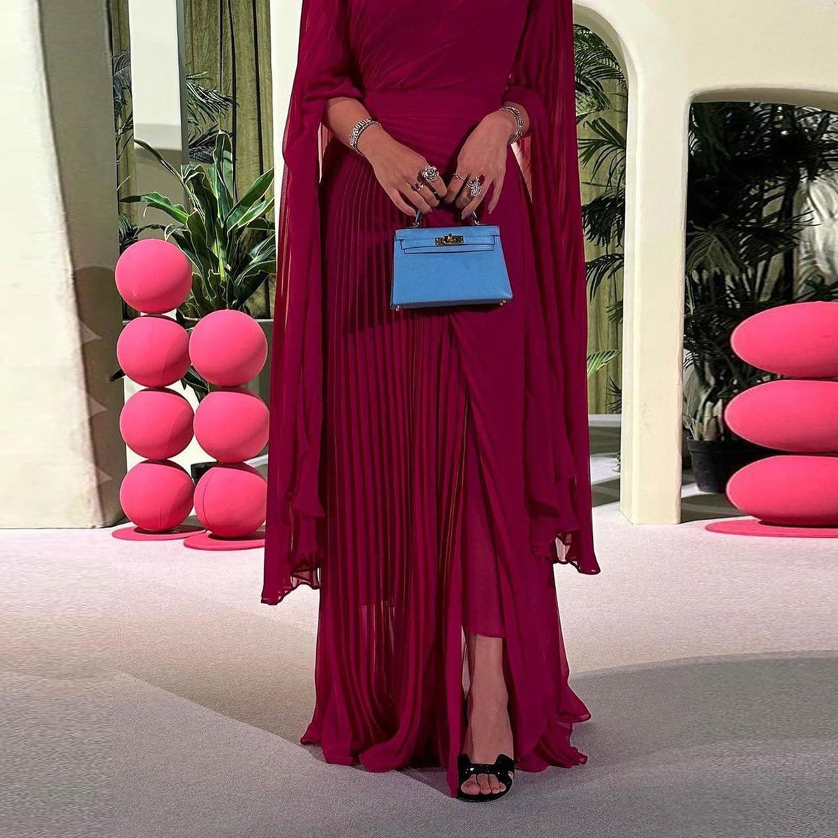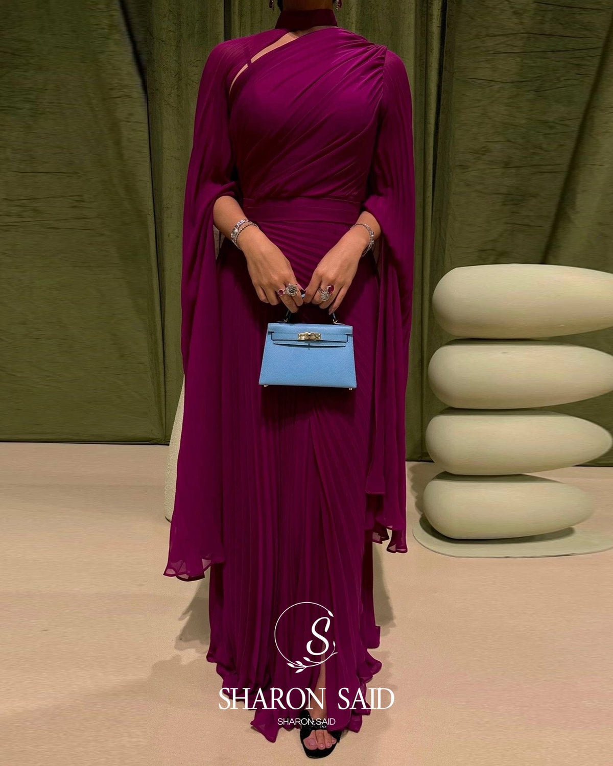 Elegant Purple Mermaid Evening Dress with cap and ruffles SF085