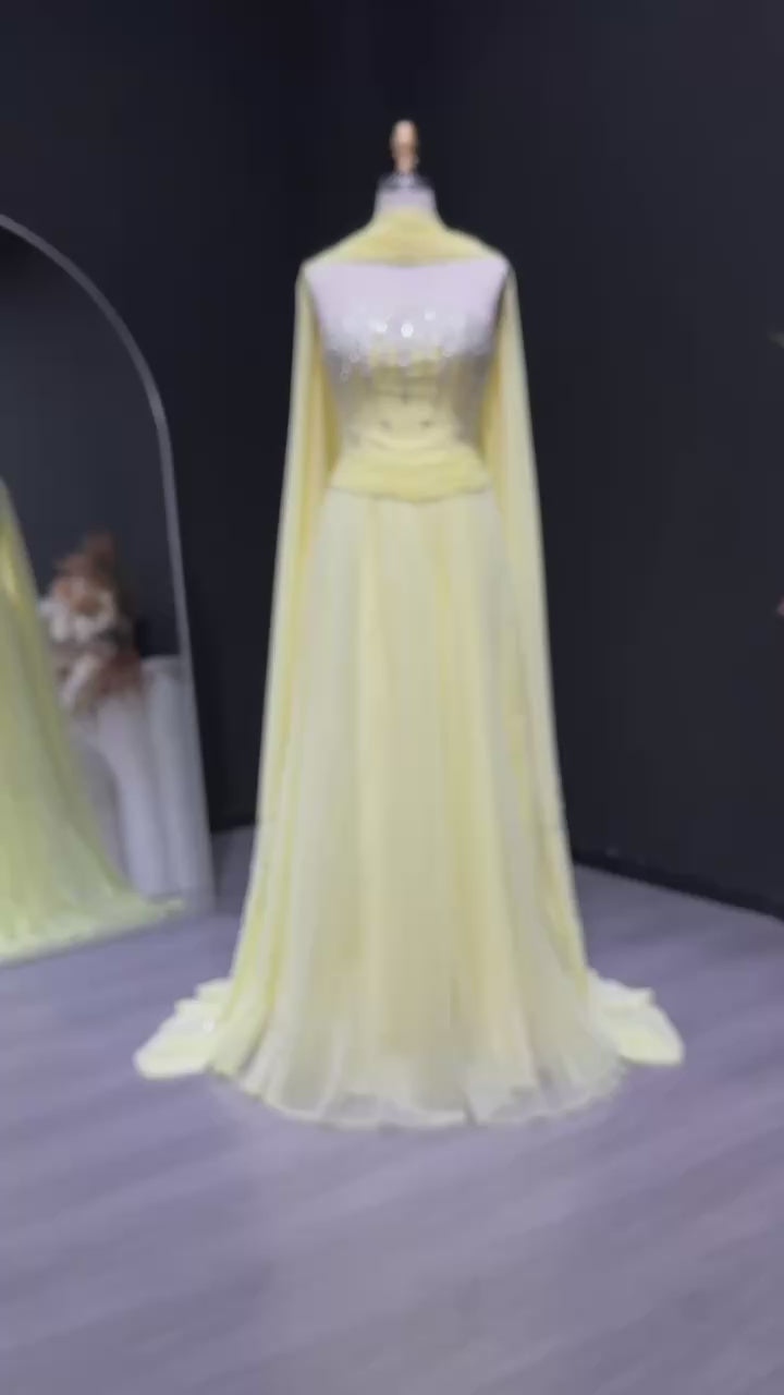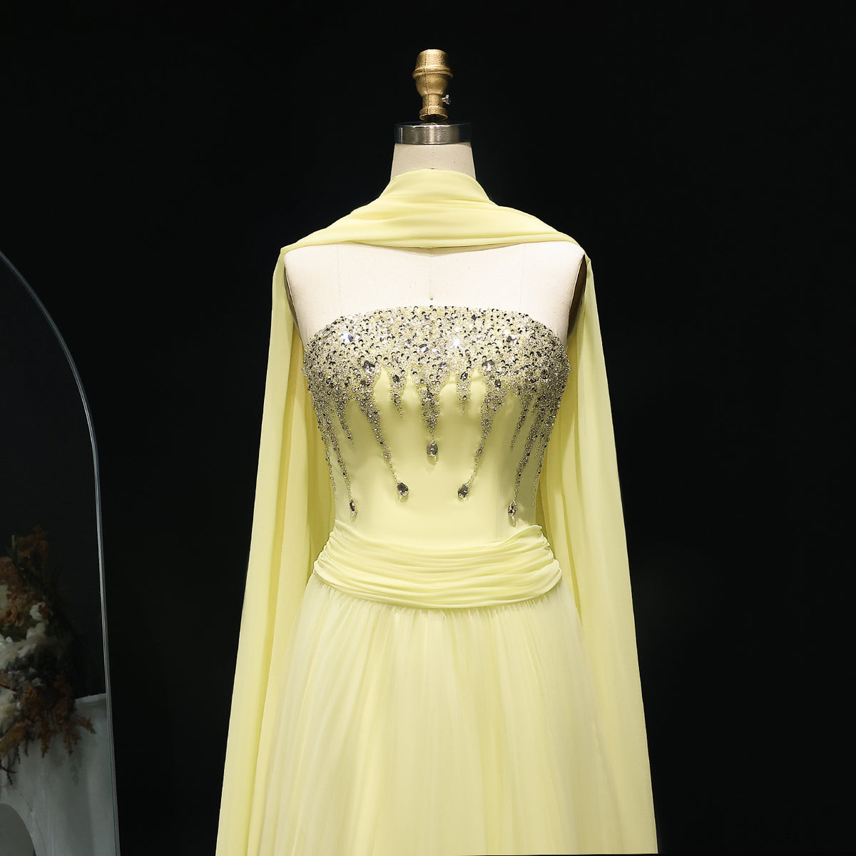 Graceful Crystal Yellow Strapless Evening Dress with Scarf XD-009