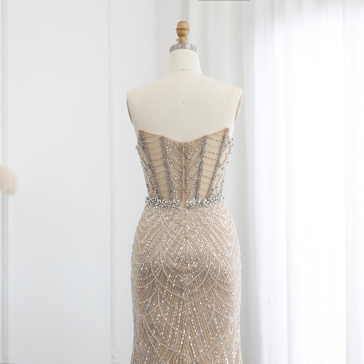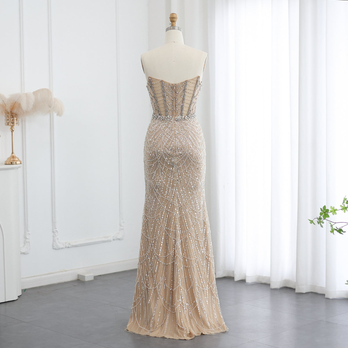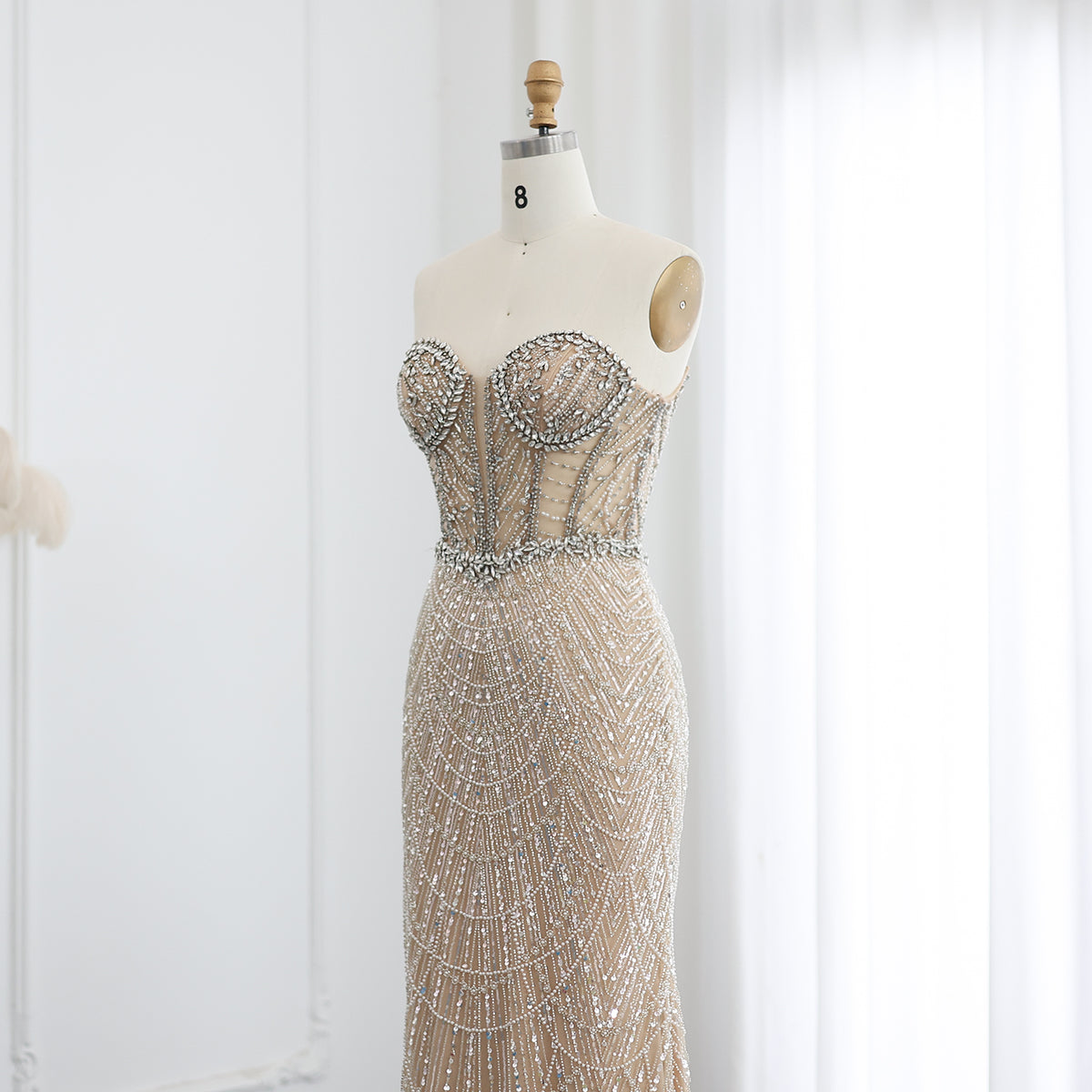 شارون سعيد فاخر دبي حورية البحر كريستال عارية فساتين سهرة أنيقة على شكل قلب مطرز المرأة العربية رداء حفلات الزفاف SS223