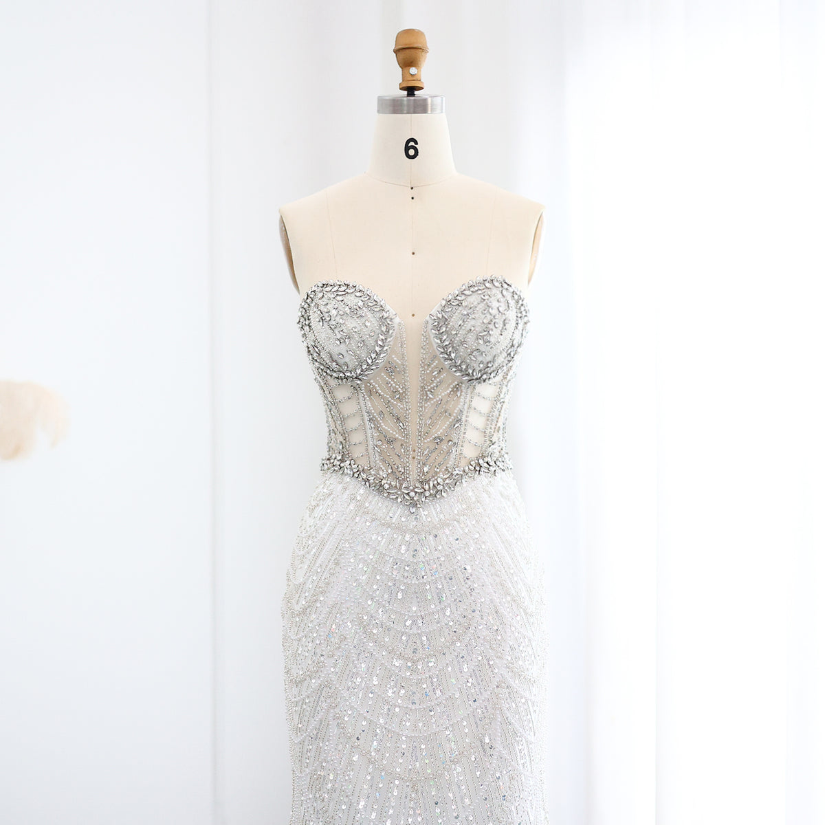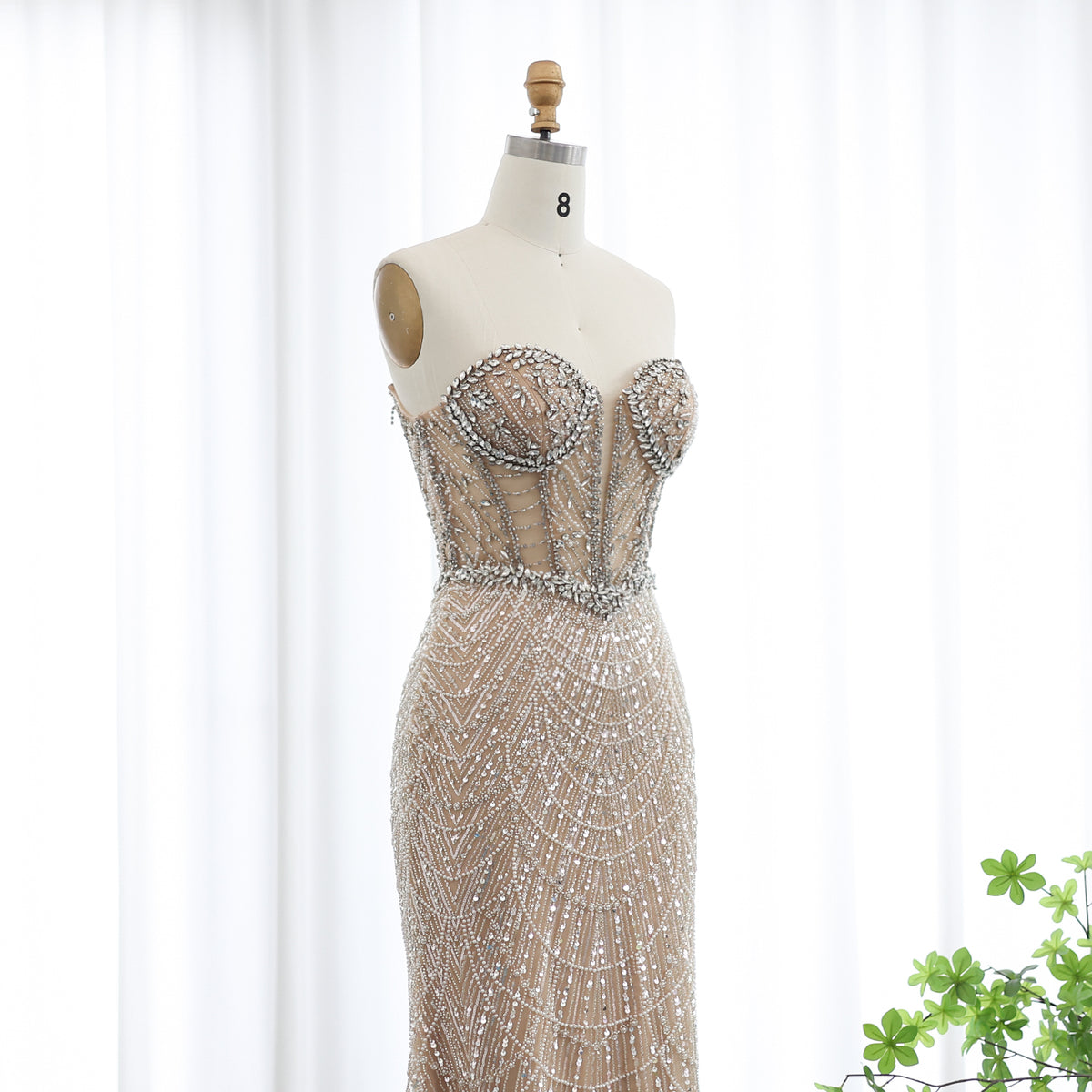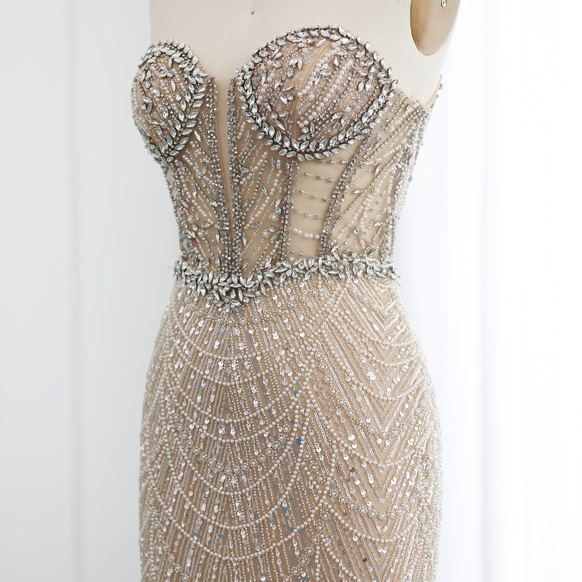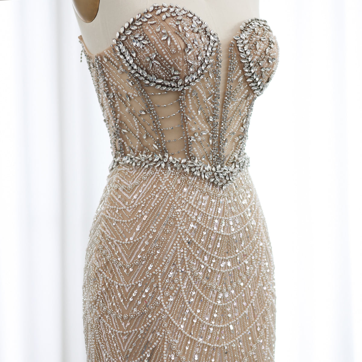 شارون سعيد فاخر دبي حورية البحر كريستال عارية فساتين سهرة أنيقة على شكل قلب مطرز المرأة العربية رداء حفلات الزفاف SS223