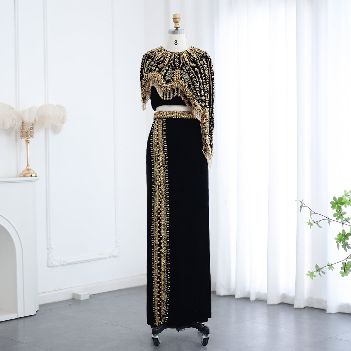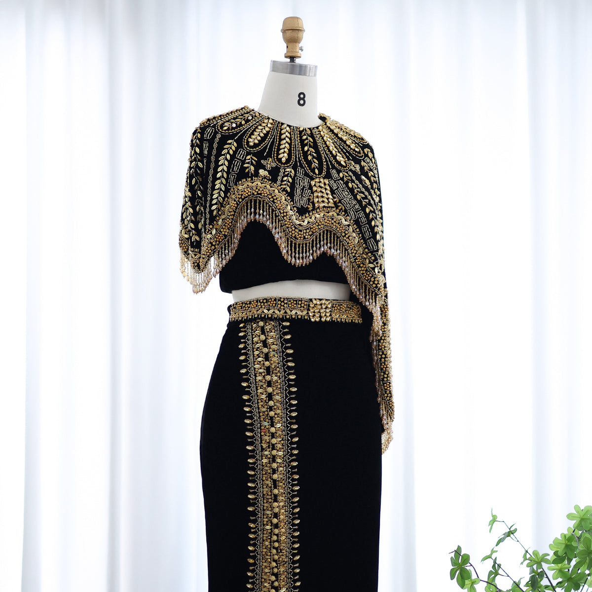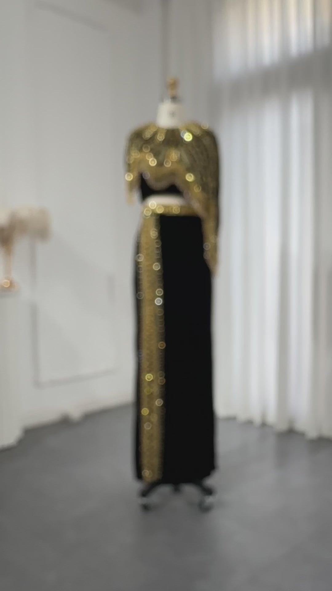 شارون سعيد فساتين سهرة فاخرة عربية باللونين الأسود والذهبي من قطعتين للنساء لحفلات الزفاف مطرز ميدي رسمية للحفلات الراقصة SS367