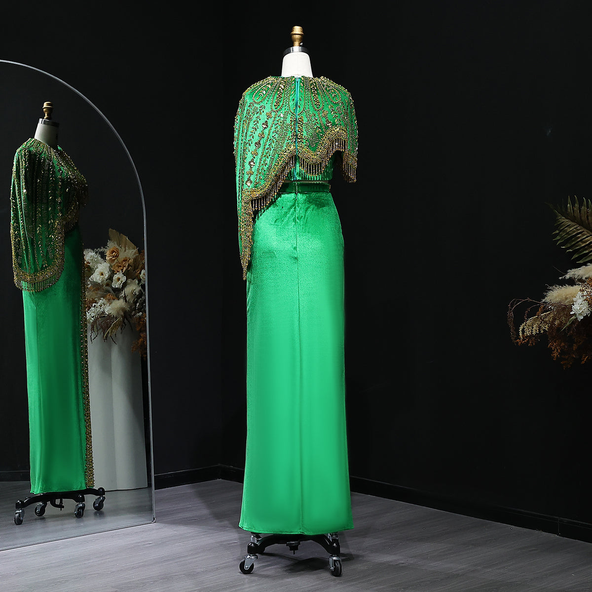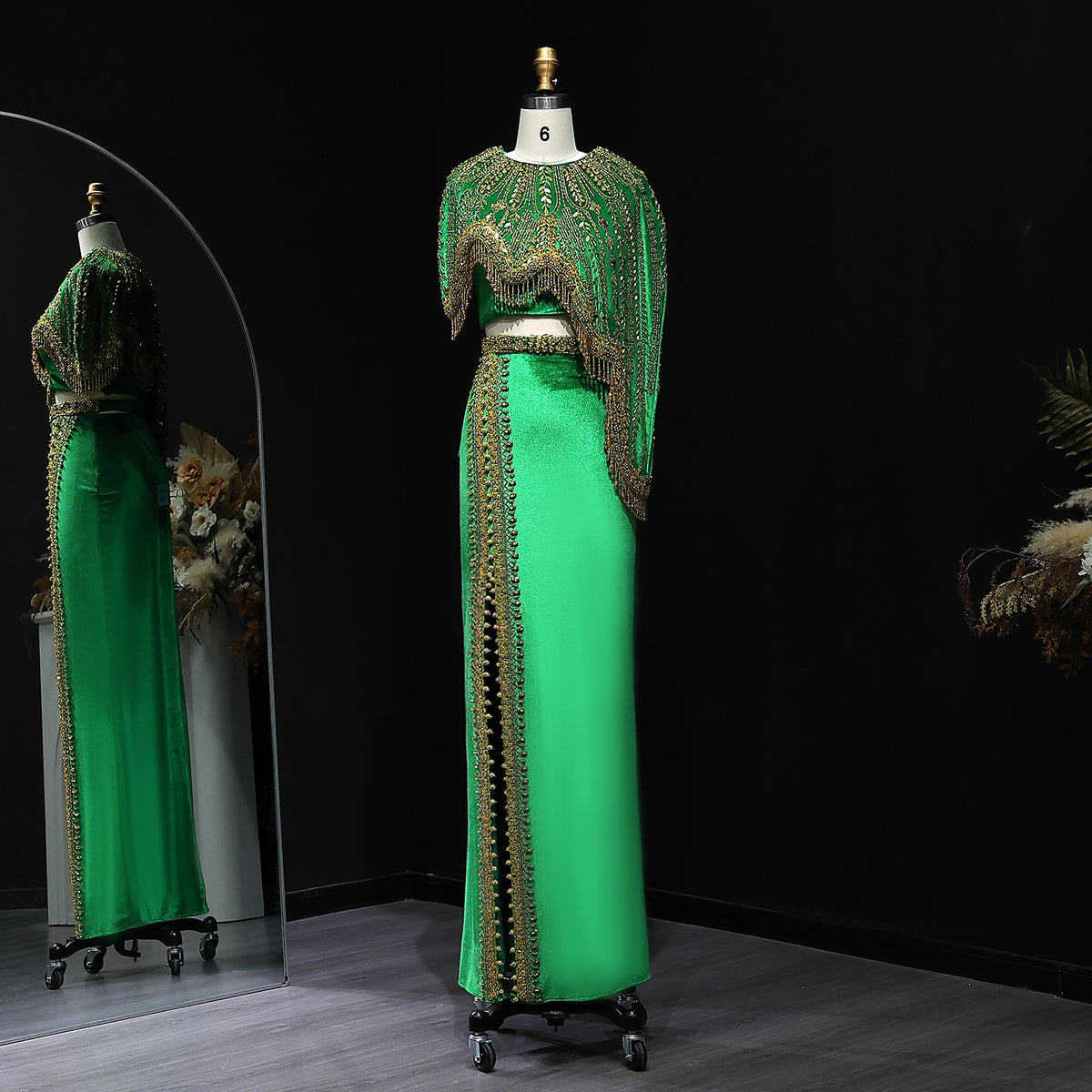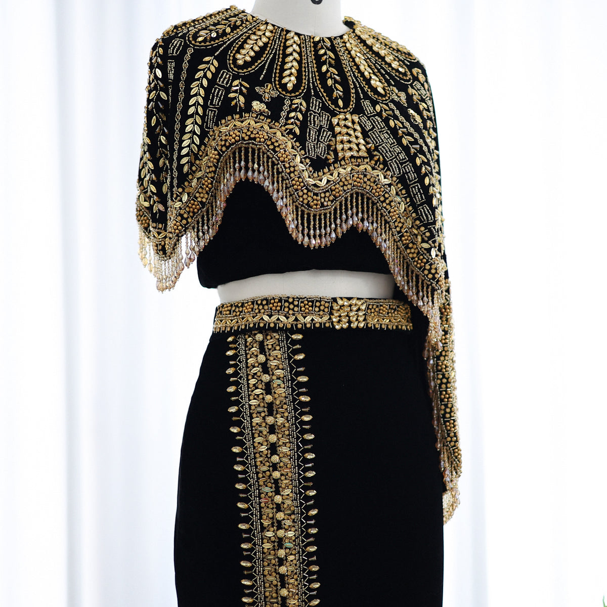 شارون سعيد فساتين سهرة فاخرة عربية باللونين الأسود والذهبي من قطعتين للنساء لحفلات الزفاف مطرز ميدي رسمية للحفلات الراقصة SS367