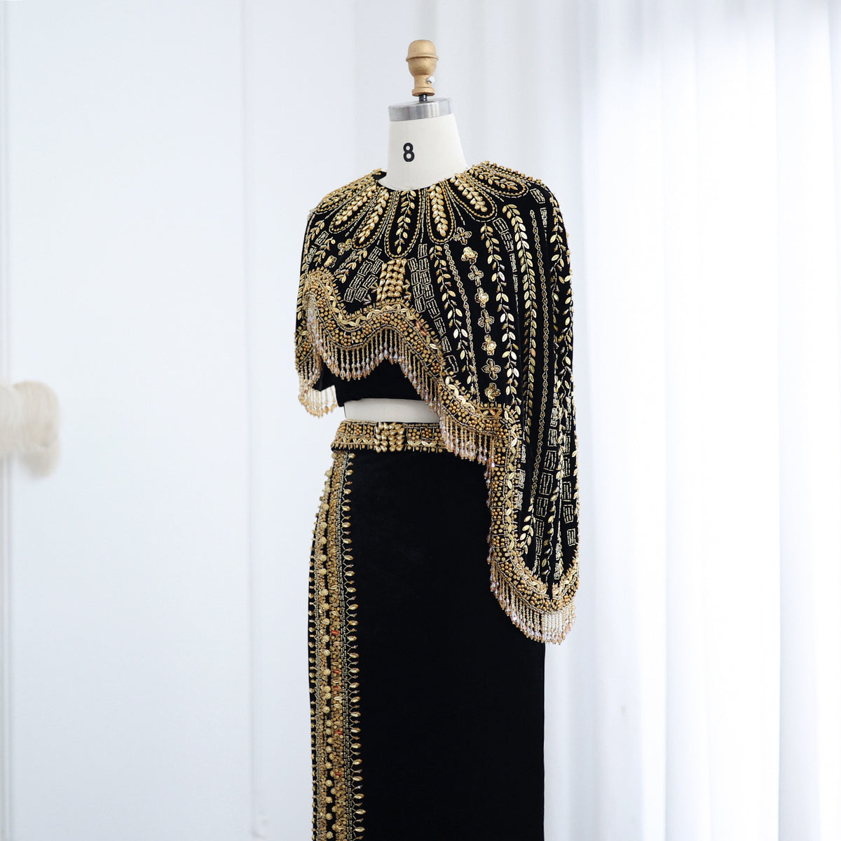 ارتقي بأسلوب مناسبتك الرسمية مع فساتين السهرة العربية الفاخرة من شارون سعيد. ينضح التصميم المذهل المكون من قطعتين باللونين الأسود والذهبي بالرقي، بينما تضيف التفاصيل المطرزة لمسة أنيقة. مثالي لحفلات الزفاف، والحفلات الراقصة، هذا الفستان متوسط الطول SS367 ضروري لأي مناسبة خاصة.