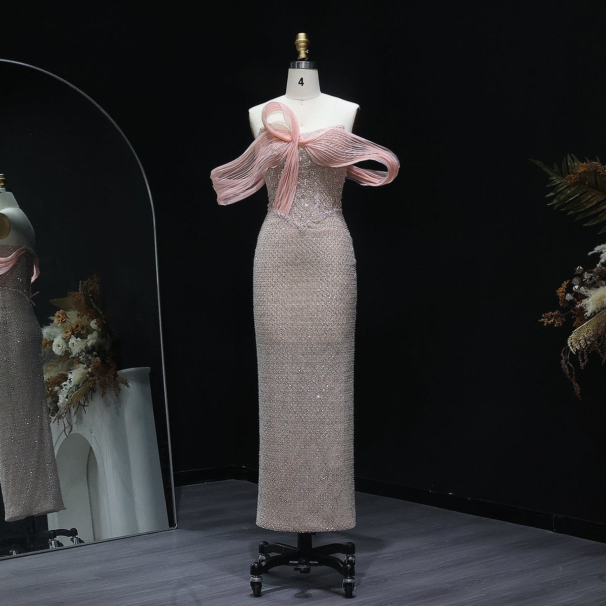 Luxury Off Shoulder Blush Pink Evening Dress SS521