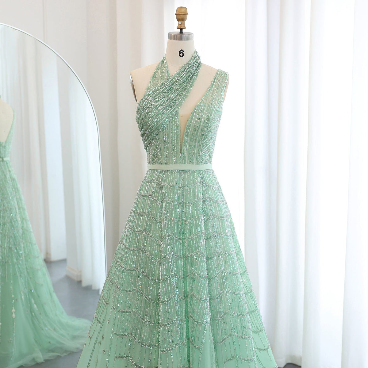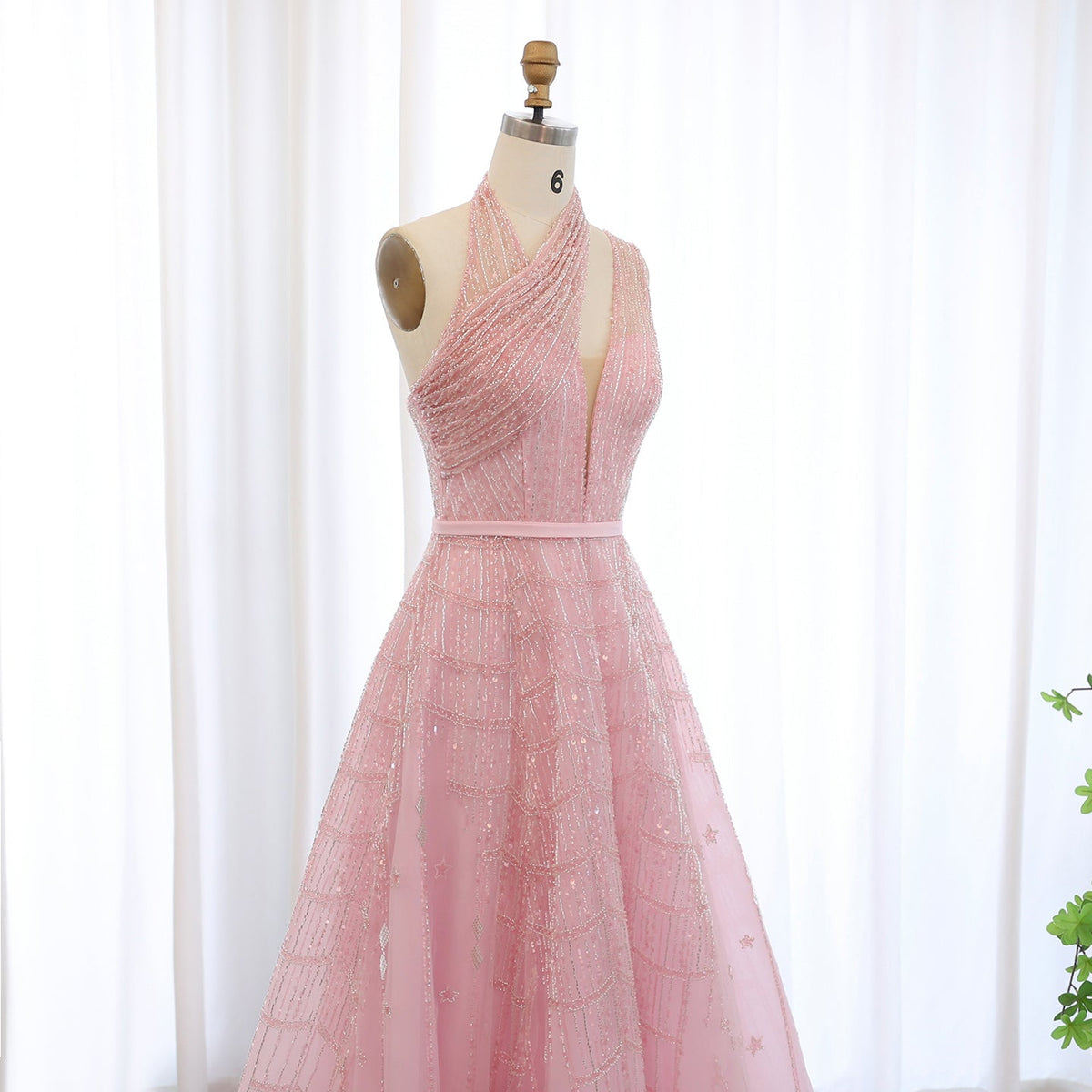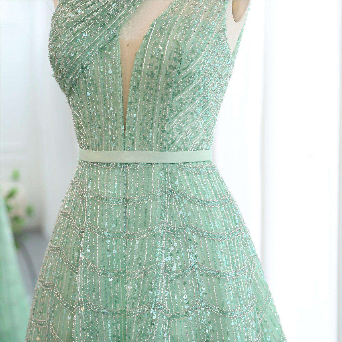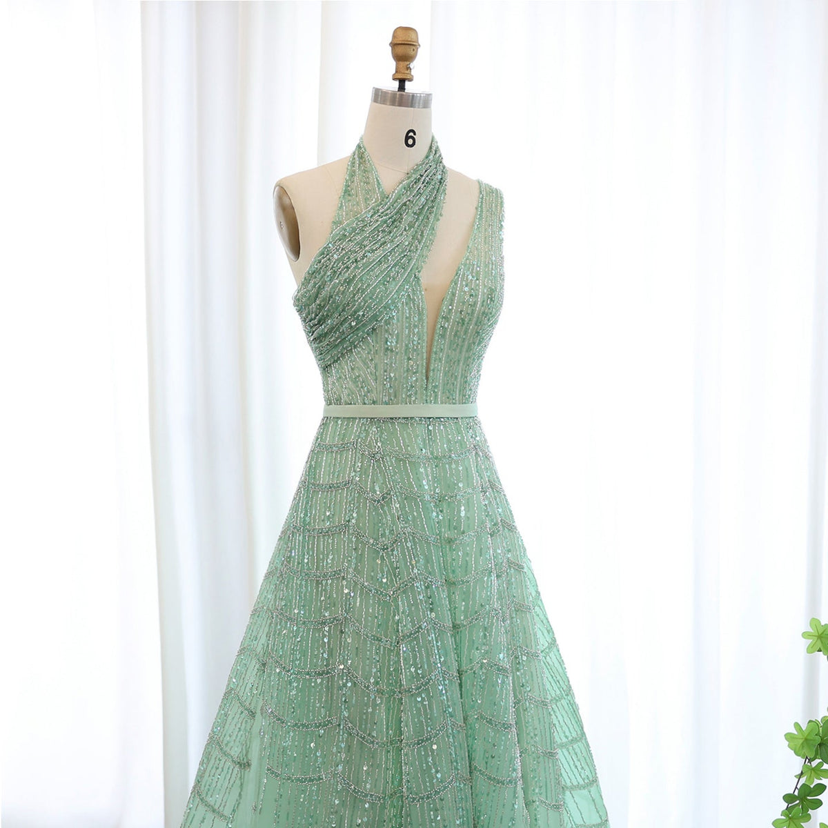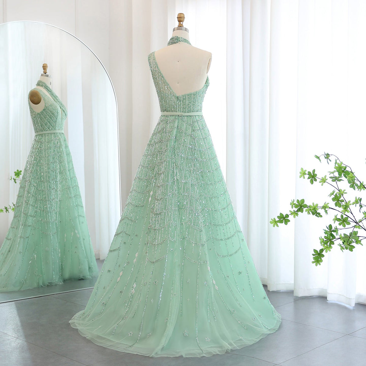 اكتشفي الأناقة والفخامة مع فستان السهرة دبي ليلك من شارون سعيد. مطرز بإتقان، هذا الفستان مثالي لأي مناسبة رسمية. يضيف طوله الطويل لمسة أنيقة بينما يضيف التصميم المعقد لمسة فريدة من نوعها. اعتنق الطراز العربي وتميز في أي حفل زفاف أو حفلة موسيقية أو حفلة.