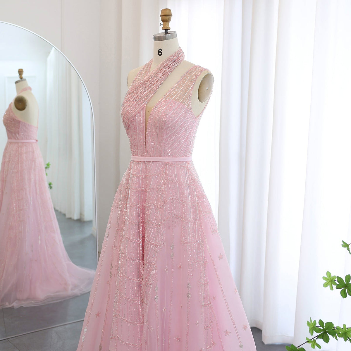 فساتين سهرة فاخرة مطرزة من شارون سعيد دبي أرجواني للنساء لحفلات الزفاف أنيقة طويلة عربية للحفلات الراقصة الرسمية SS329