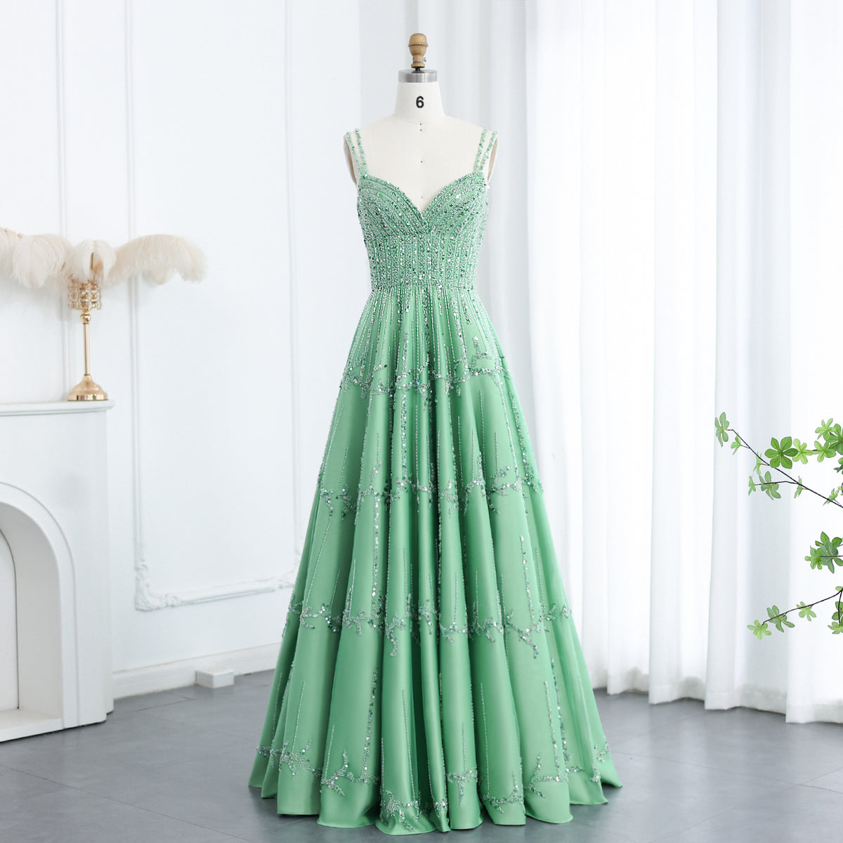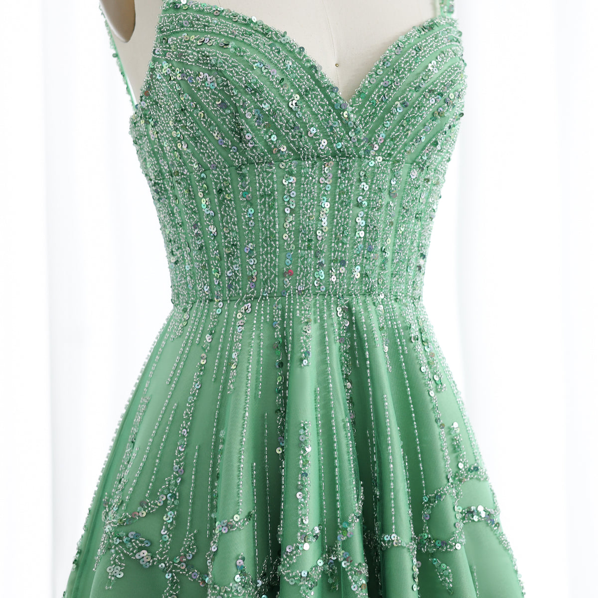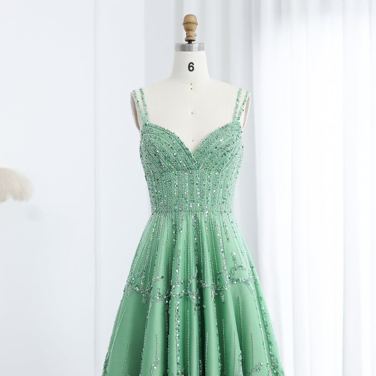Luxury Beaded Spaghetti Straps Green Evening Dresses with Sequin SS225