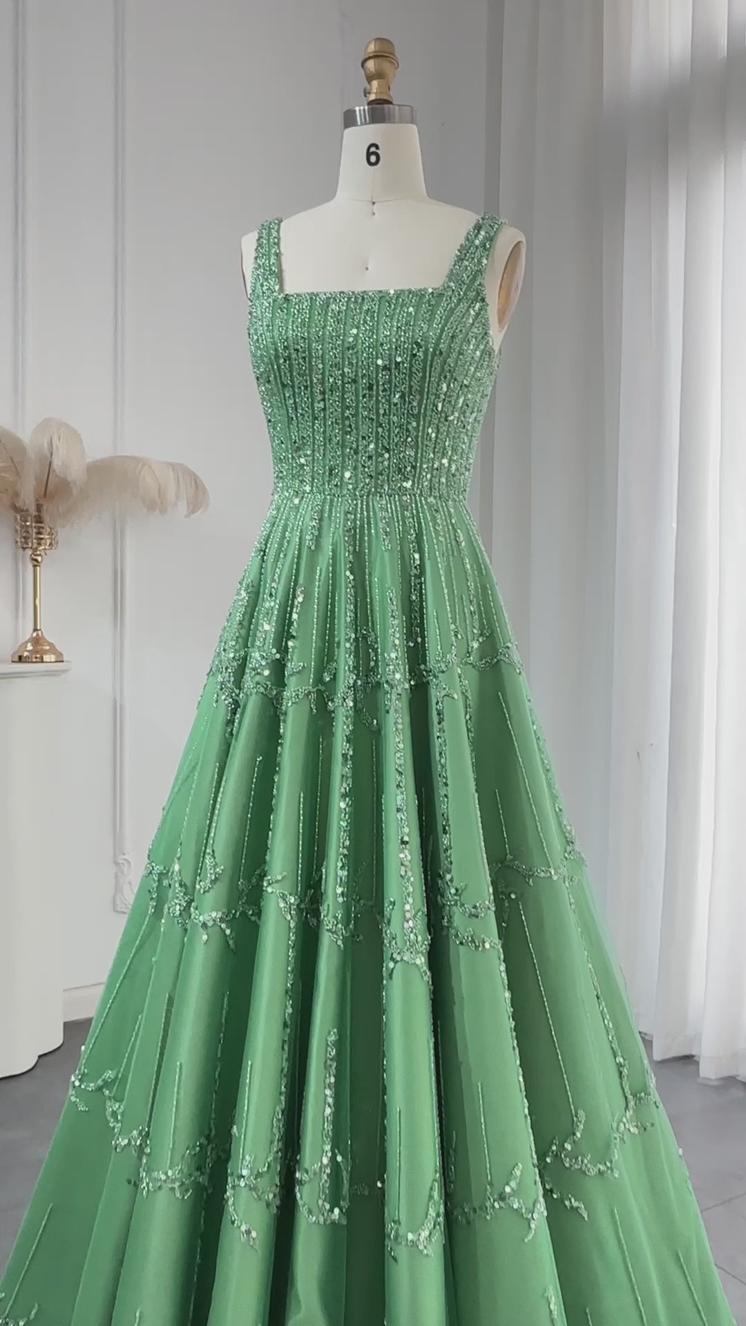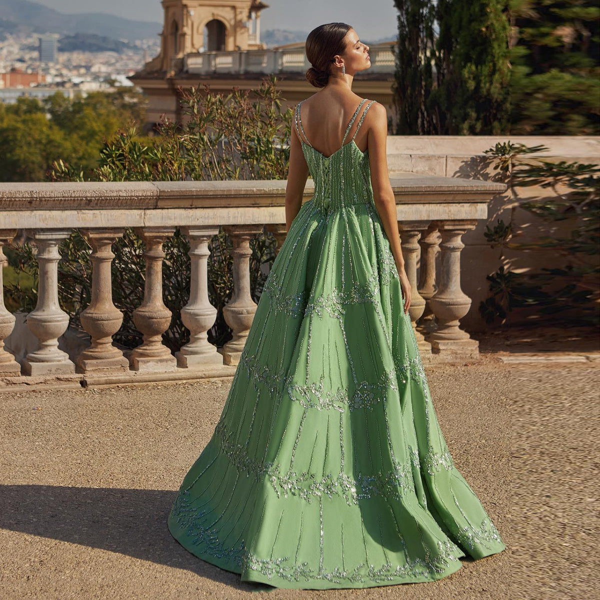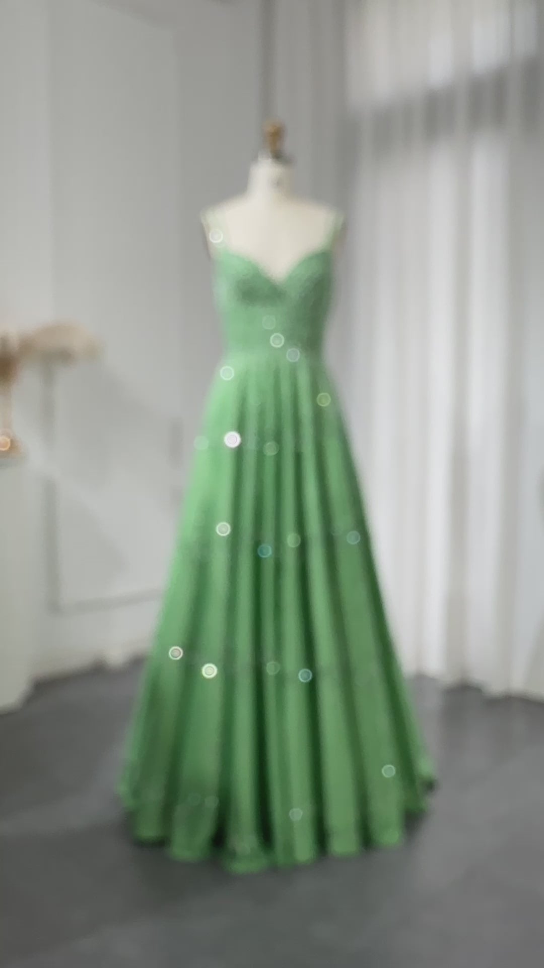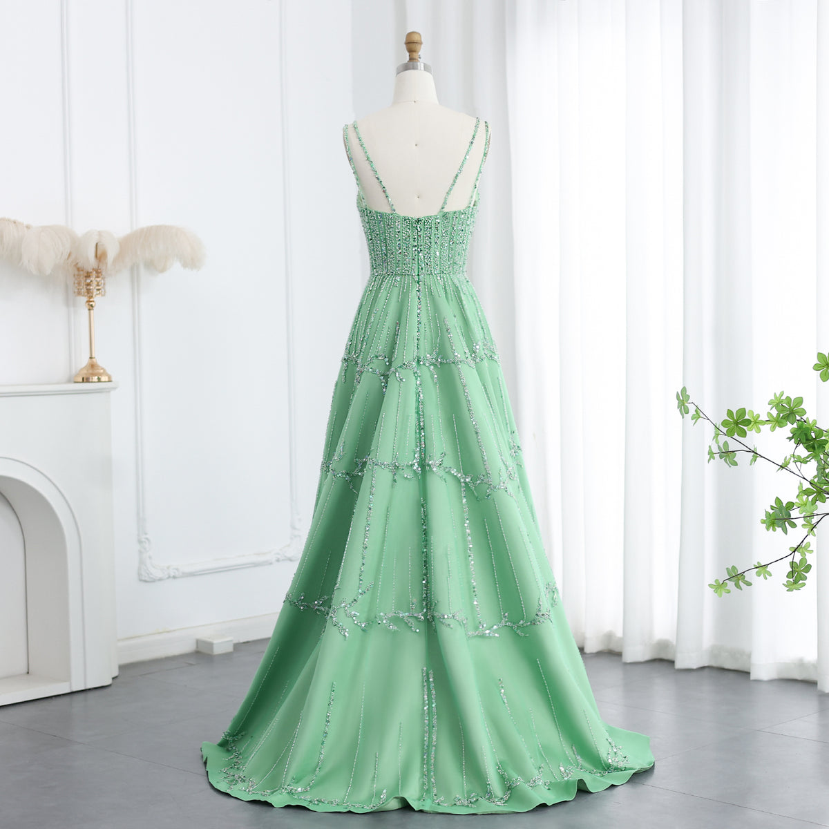 Luxury Beaded Spaghetti Straps Green Evening Dresses with Sequin SS225
