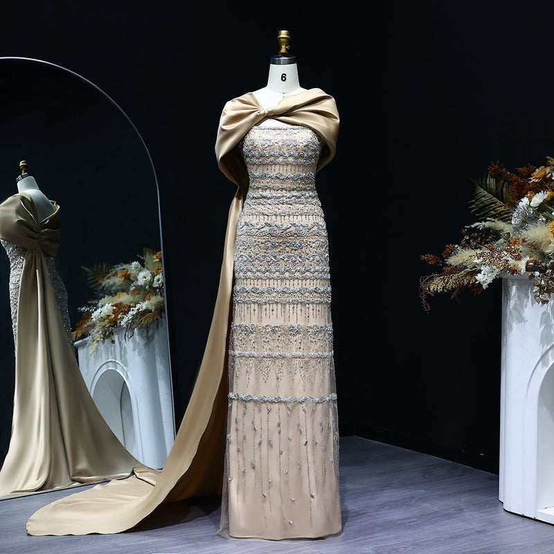 Luxury Sage Green Evening Dress with Cape SS238B