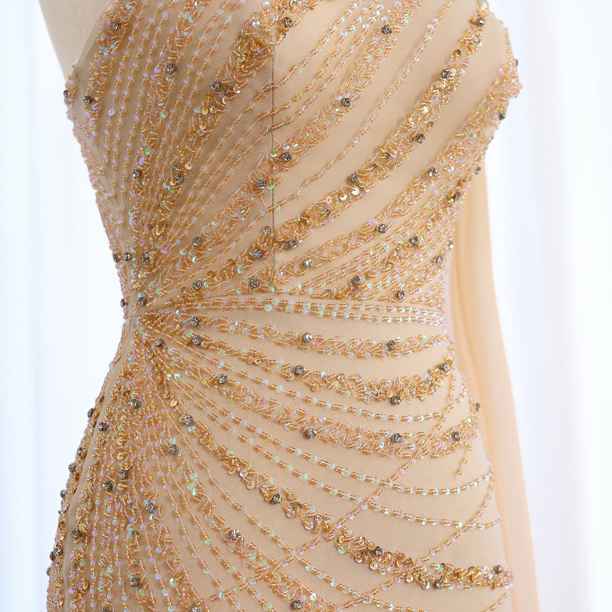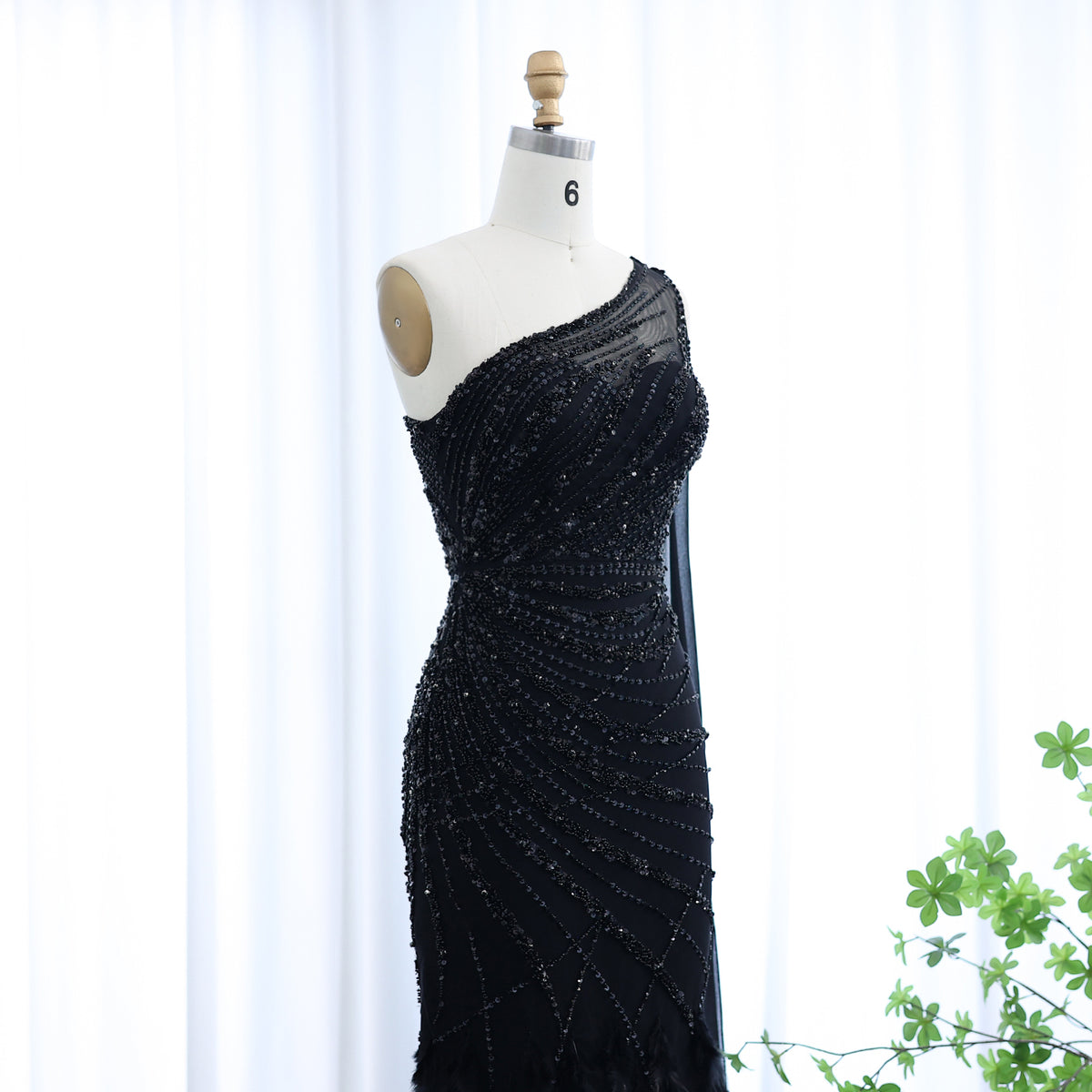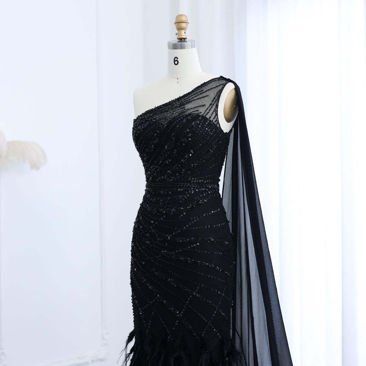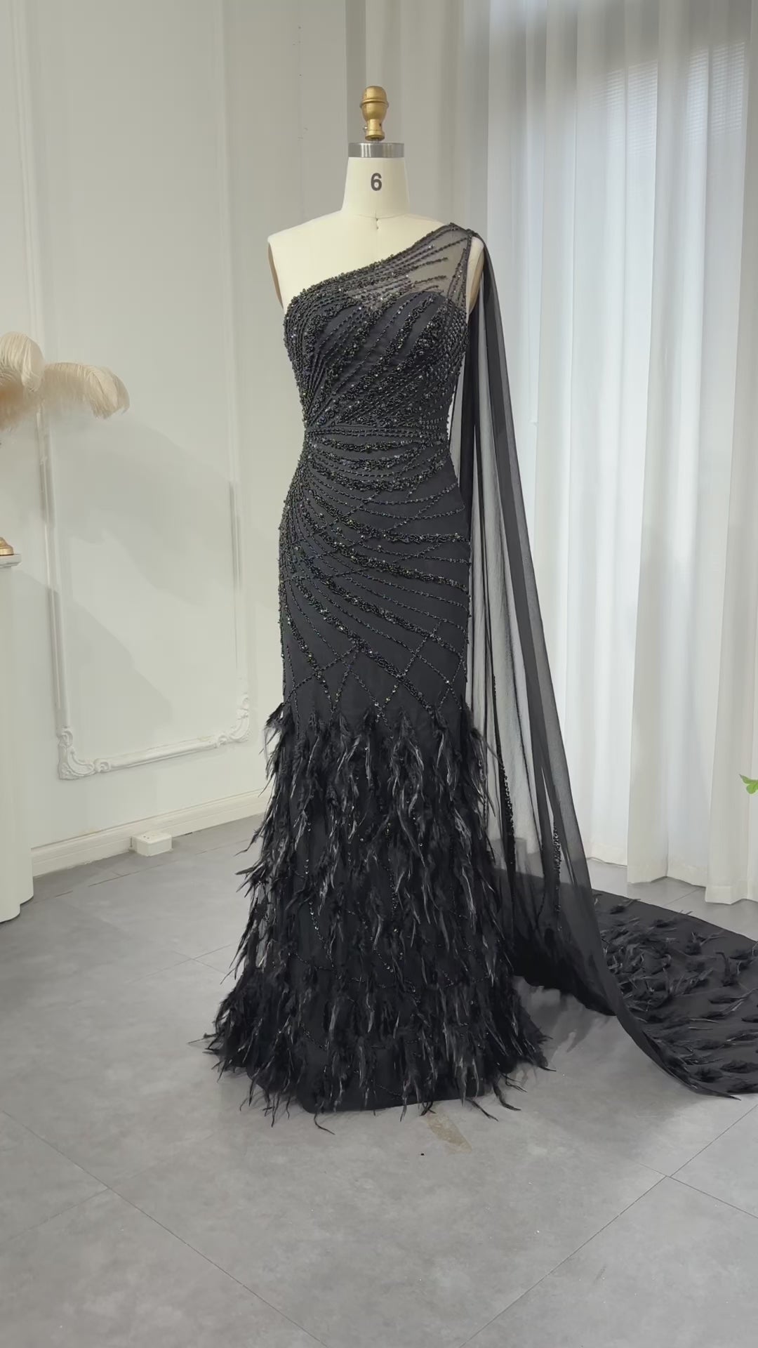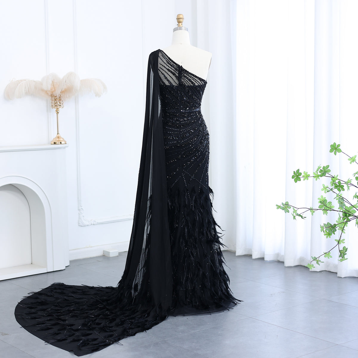 شارون سعيد فاخر ريشة فيروزي أكوا كتف واحد حورية البحر فستان سهرة مع ذيل كيب طويل حفلة موسيقية رداء حفلات الزفاف SS498