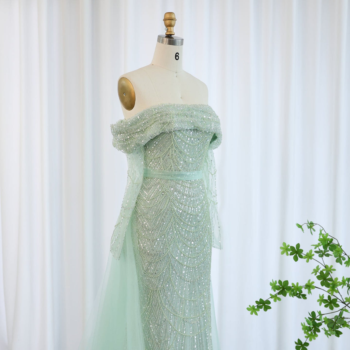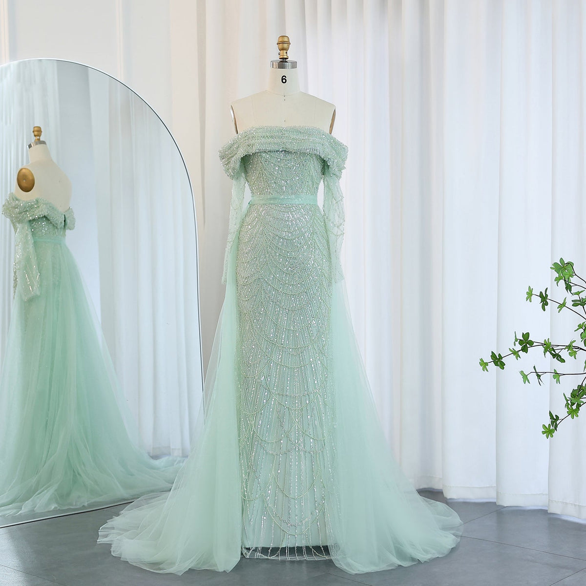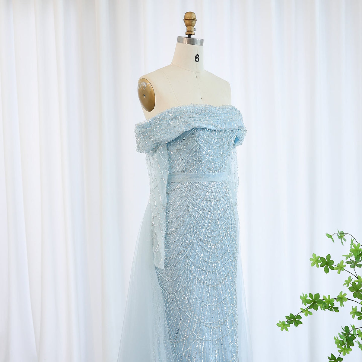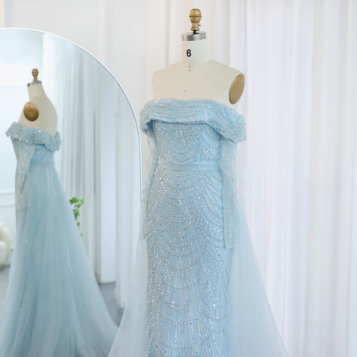 شارون سعيد فستان سهرة فاخر بدون الكتف أزرق فاتح حورية البحر مع تنورة قابلة للانفصال دبي فستان حفلات الزفاف للنساء SS287