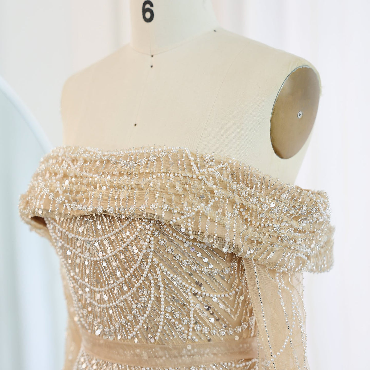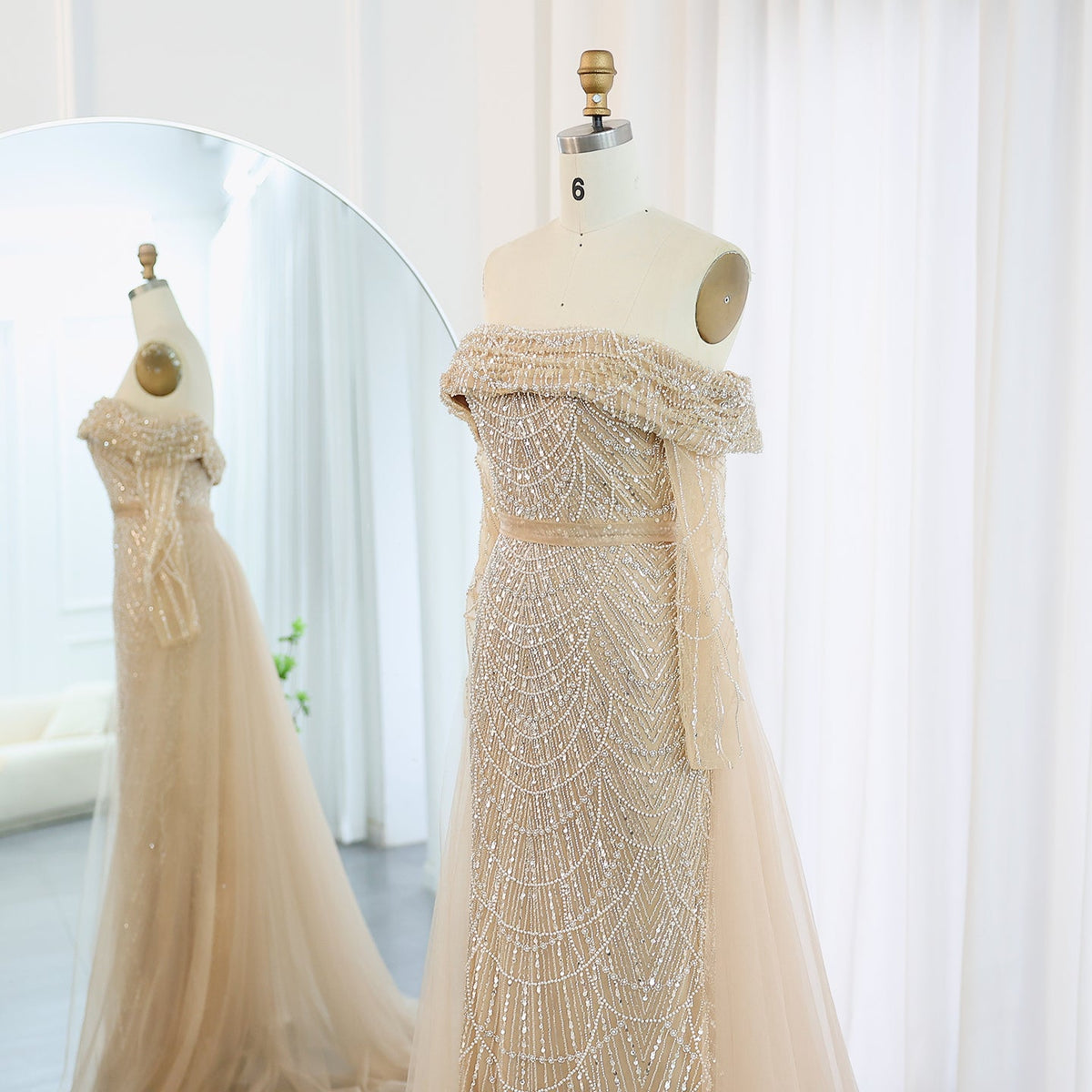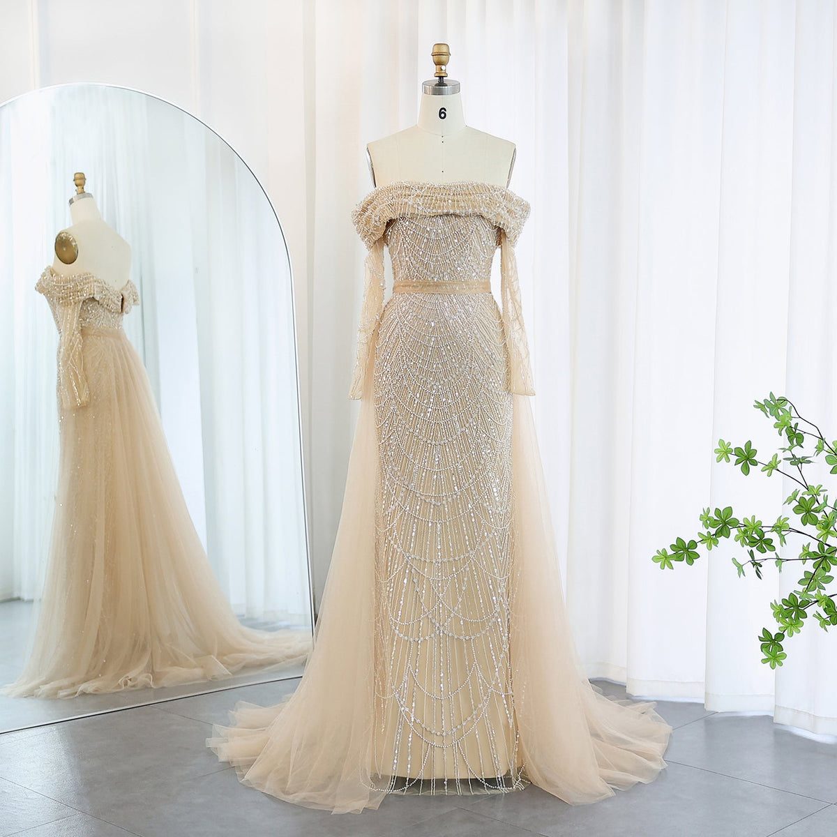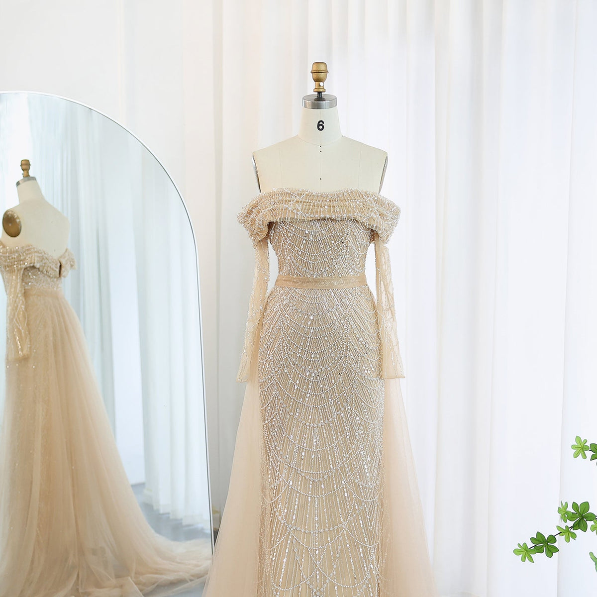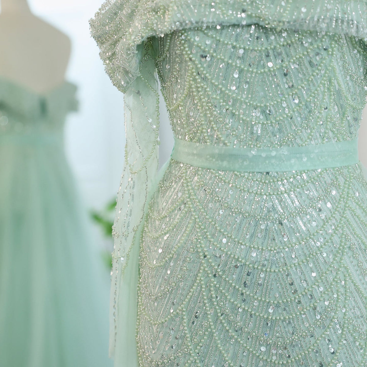 شارون سعيد فستان سهرة فاخر بدون الكتف أزرق فاتح حورية البحر مع تنورة قابلة للانفصال دبي فستان حفلات الزفاف للنساء SS287