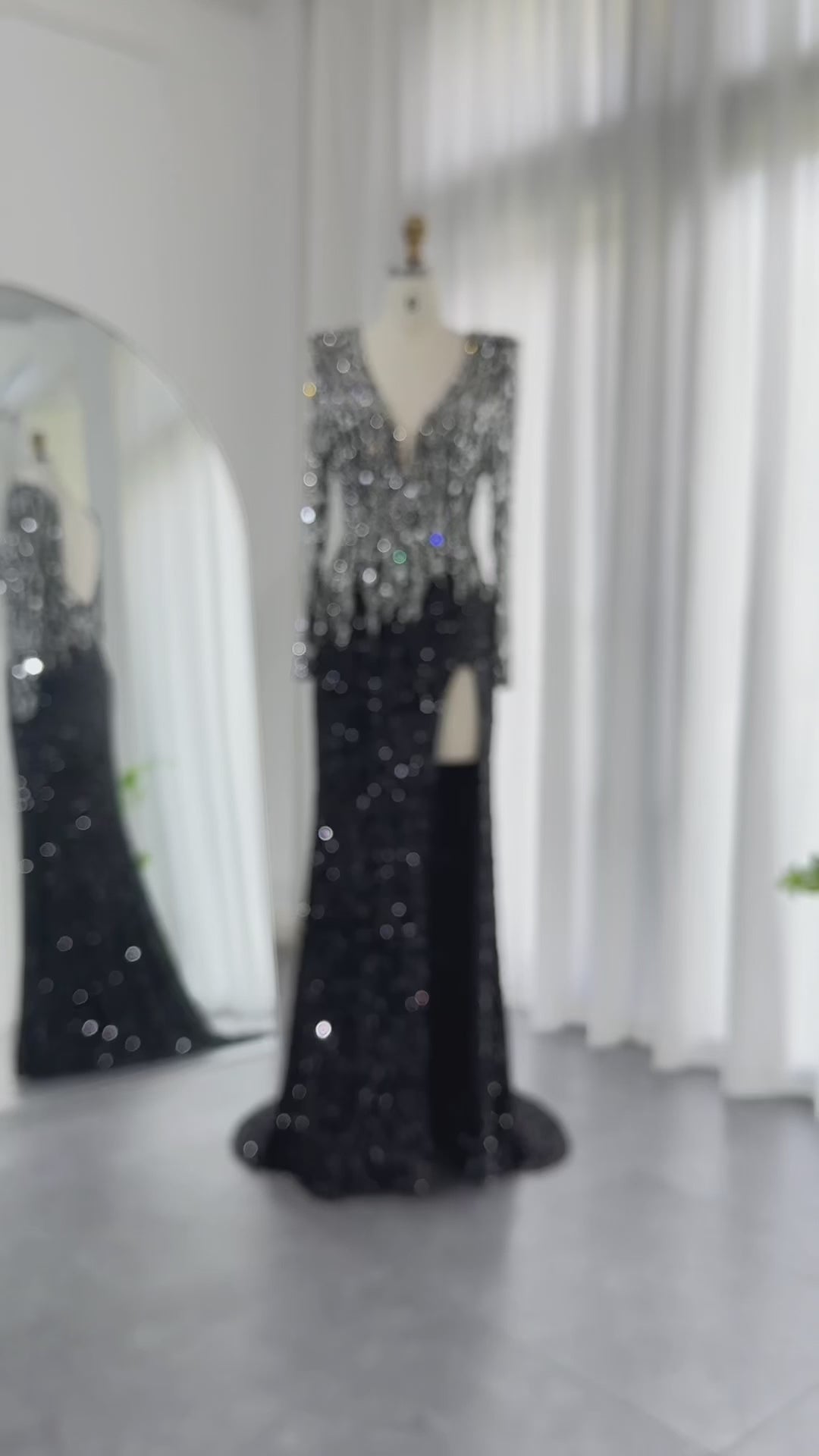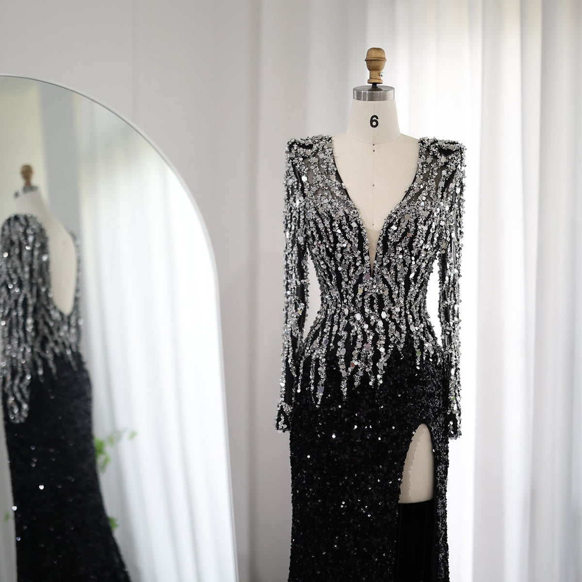 شارون سعيد فساتين سهرة فاخرة بحورية البحر باللون الأسود في دبي 2024 أنيقة على شكل حرف v وأكمام طويلة للنساء العربيات رداء حفلات رسمي SS250