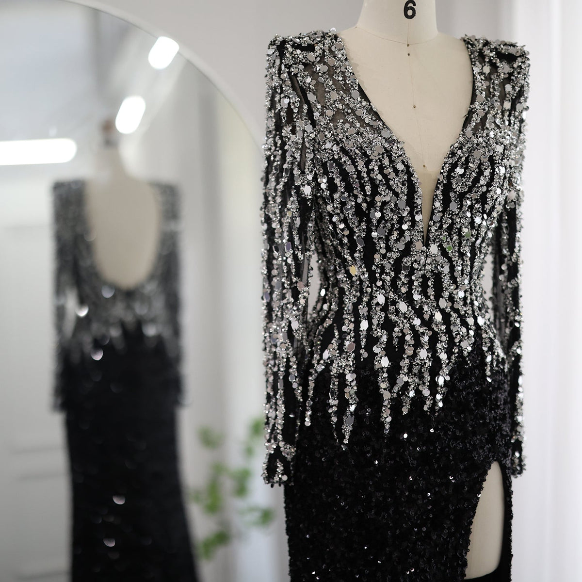 كن مثالاً للأناقة في فستان السهرة الفاخر ذو حورية البحر الأسود في دبي من شارون سعيد. يتميز هذا الفستان بياقة على شكل حرف V وأكمام طويلة، وهو ينضح بالرقي والأناقة. مصنوعة من أقمشة فاخرة، وتتناسب بشكل جميل مع أي نوع من الجسم. مثالي للمناسبات الرسمية والحفلات الساحرة، فهو ضروري لأي امرأة تتطلع إلى الموضة.