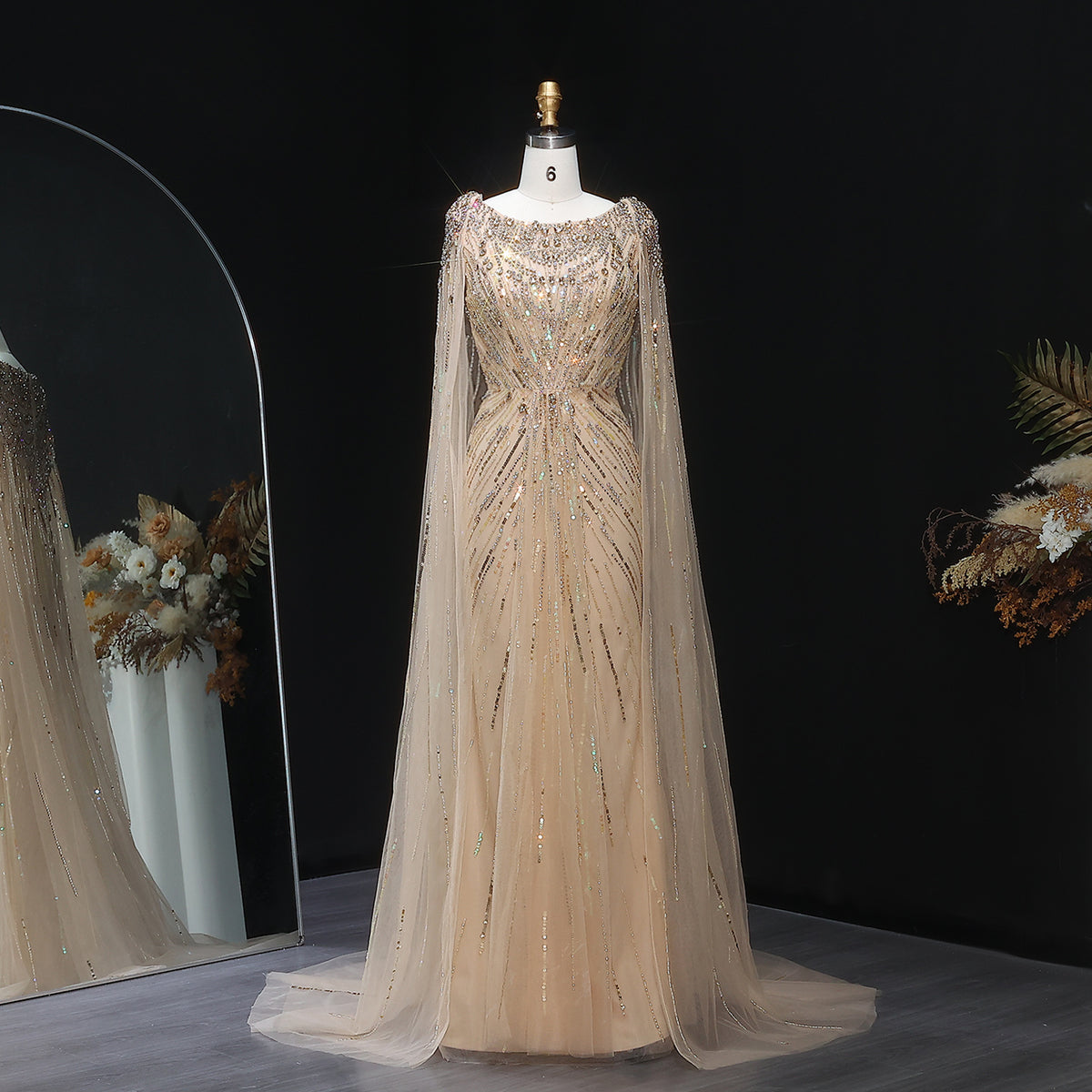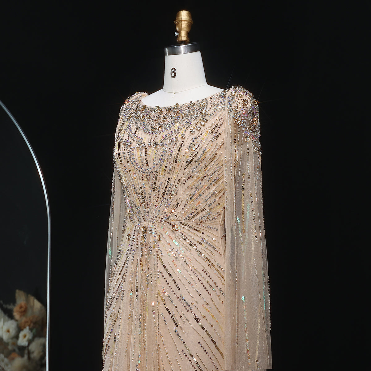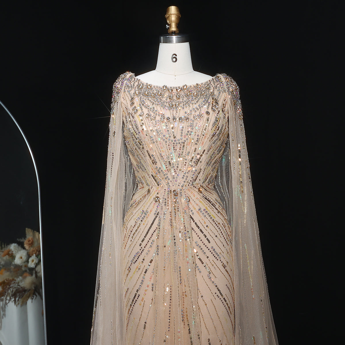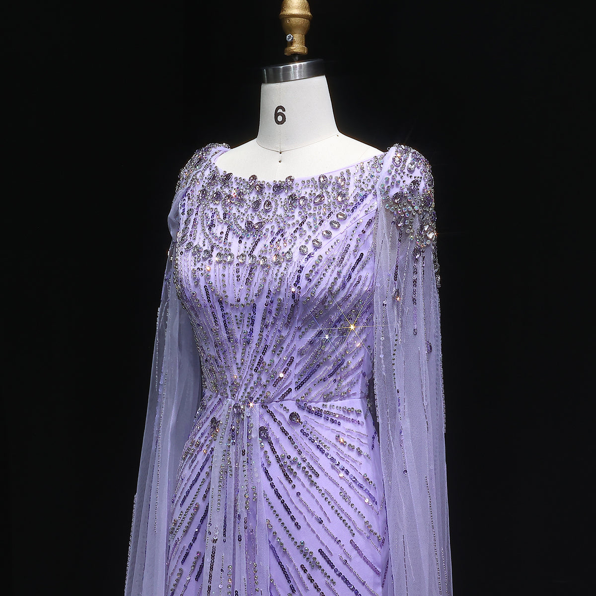 Luxury Crystal Lilac Evening Dress with Cape Sleeves SS549