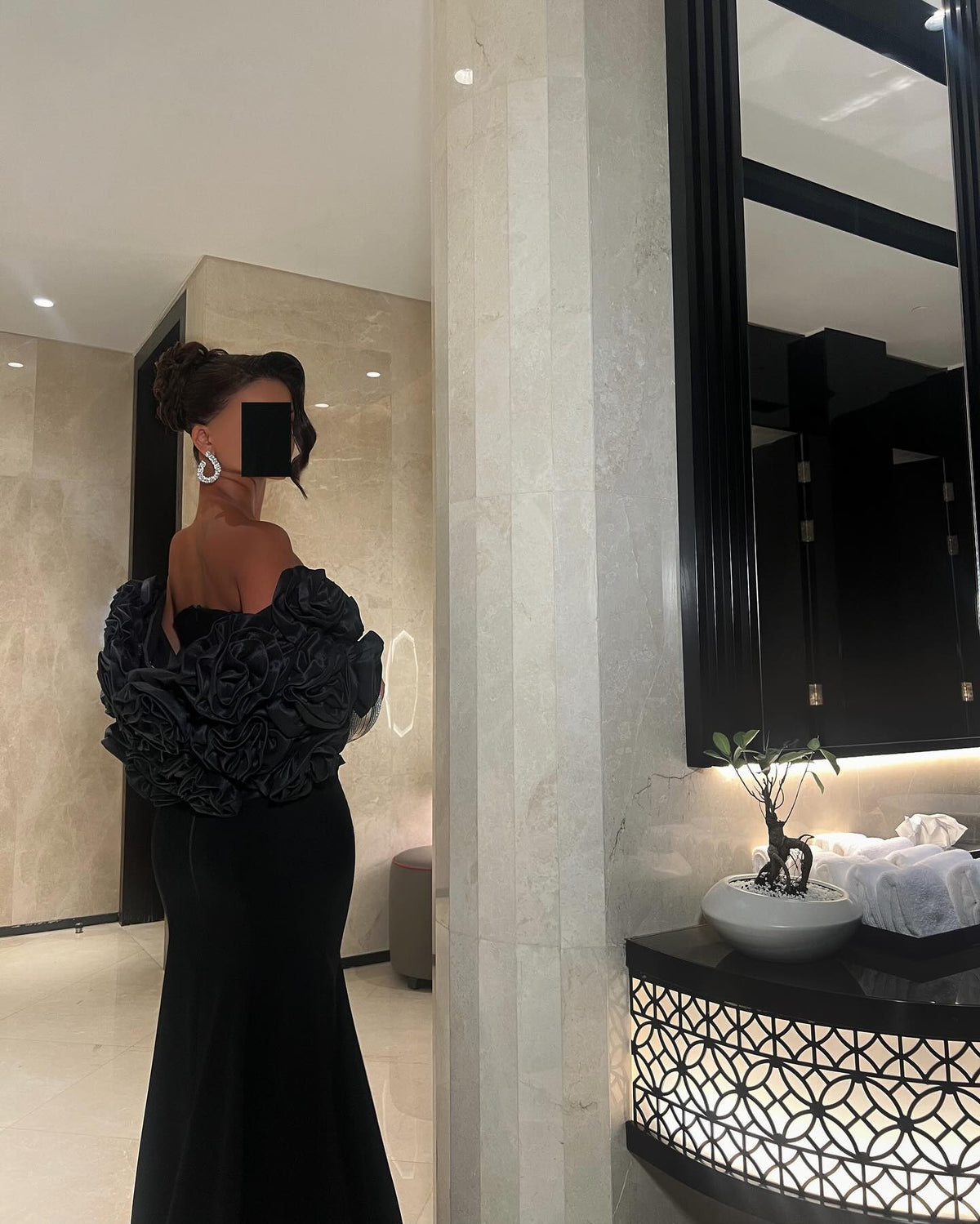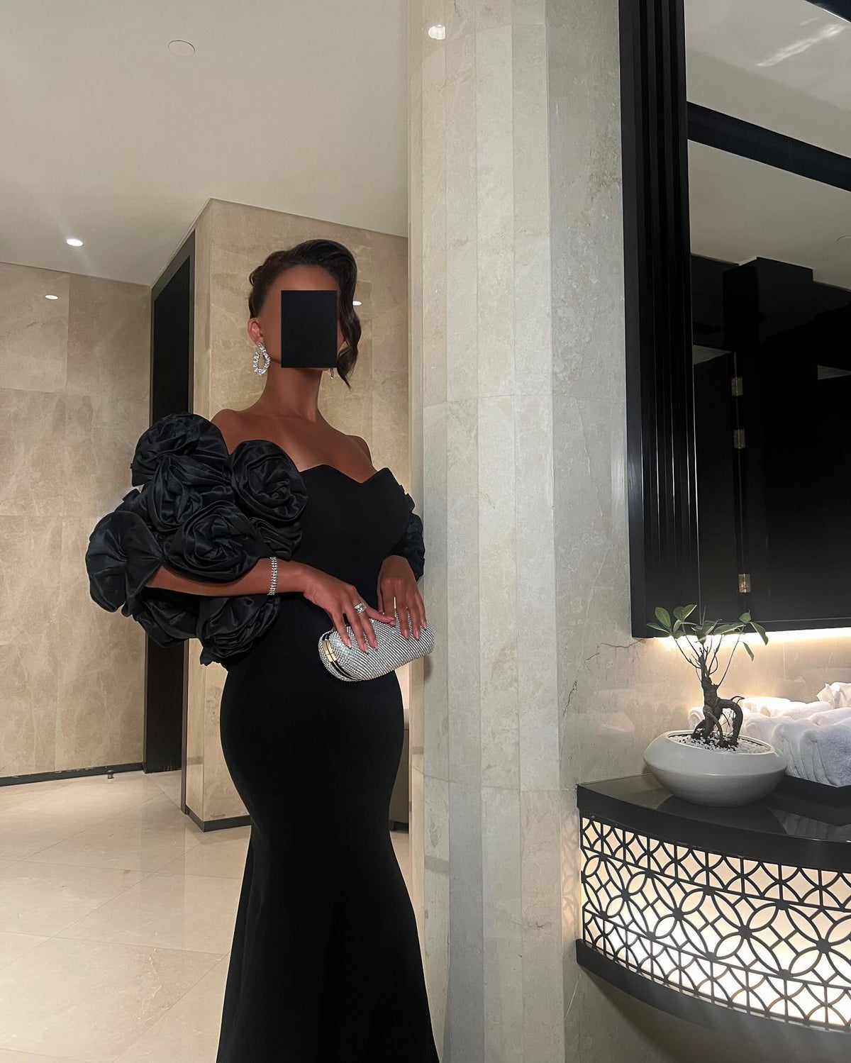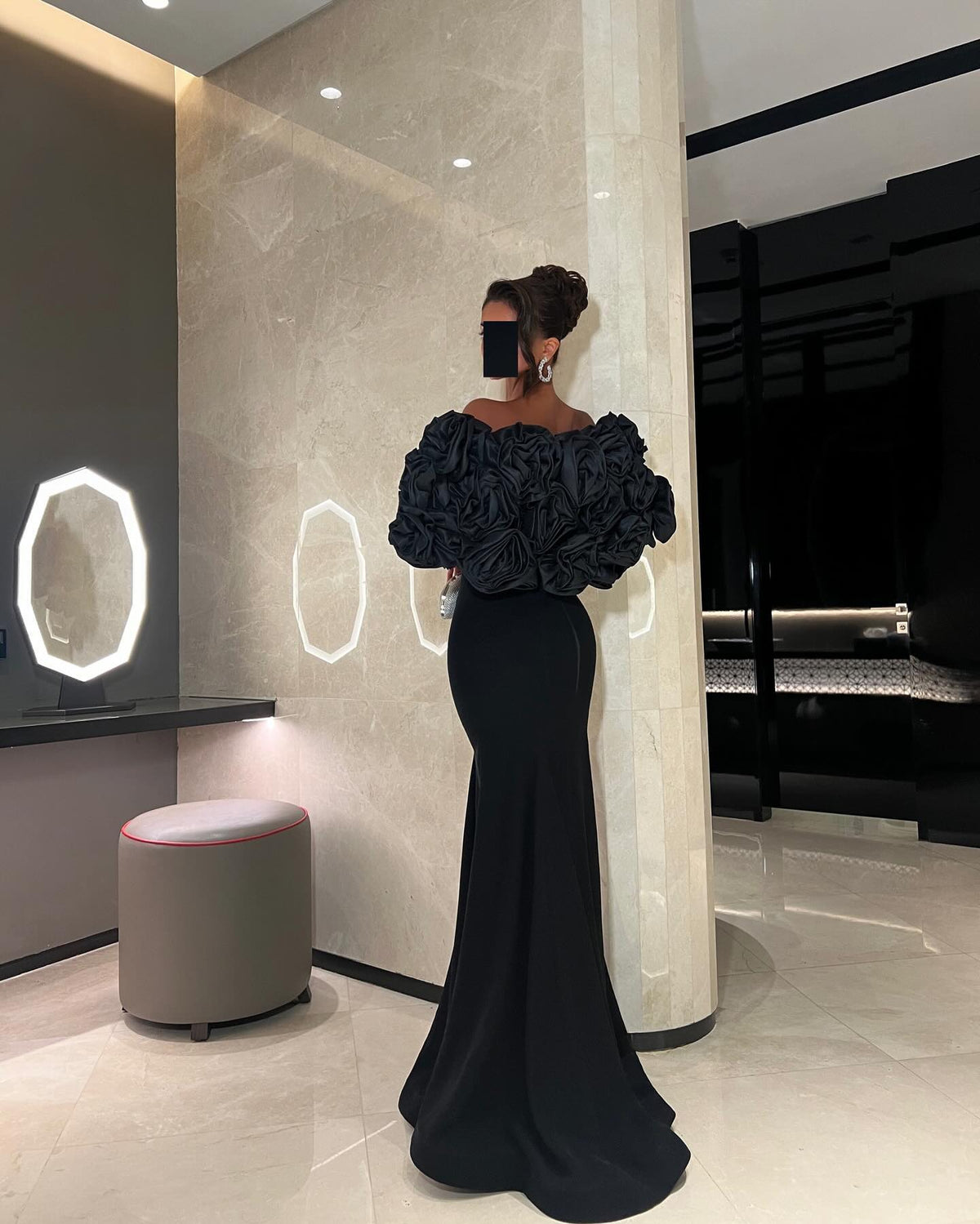 Elegant 3D Floral Black Mermaid Evening Dress SF115
