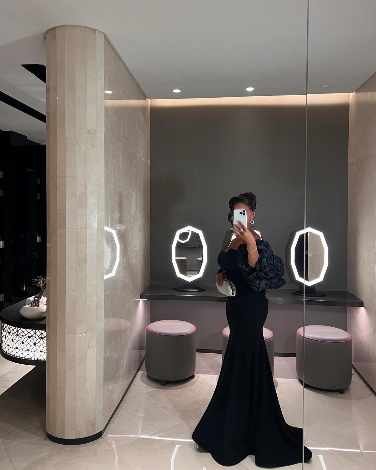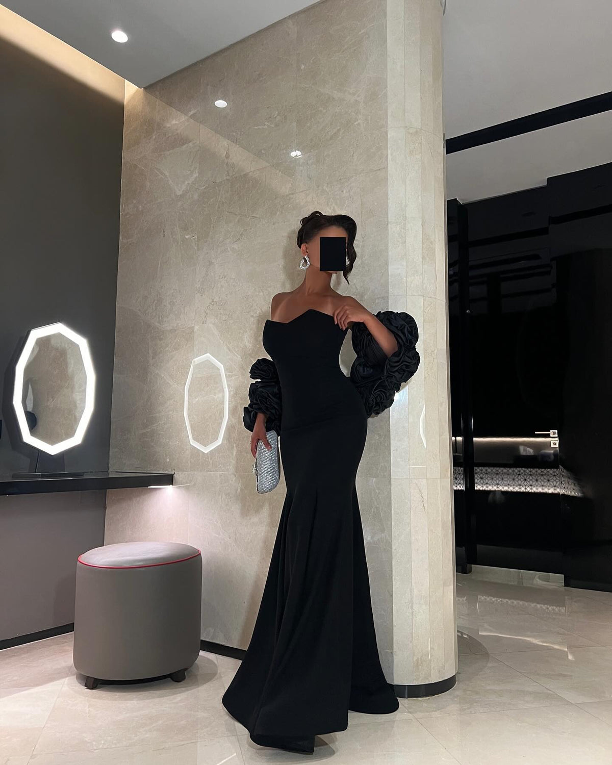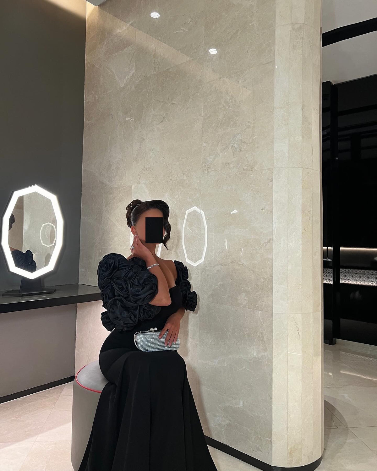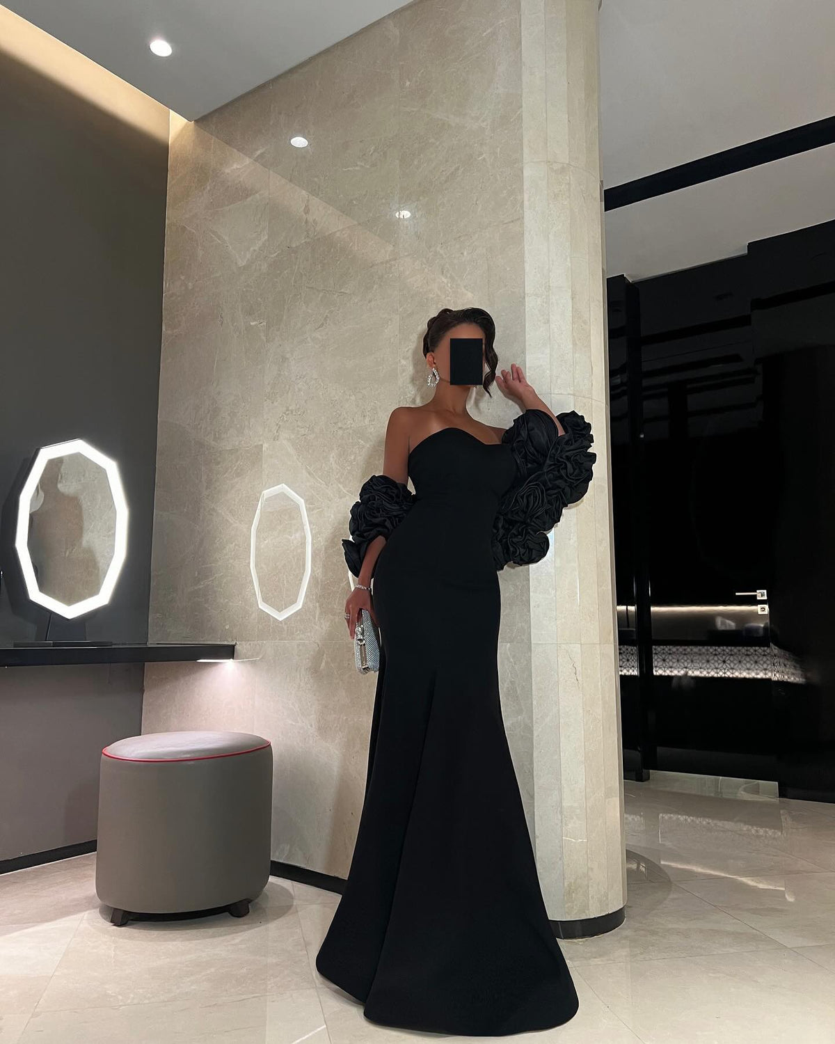 Elegant 3D Floral Black Mermaid Evening Dress SF115