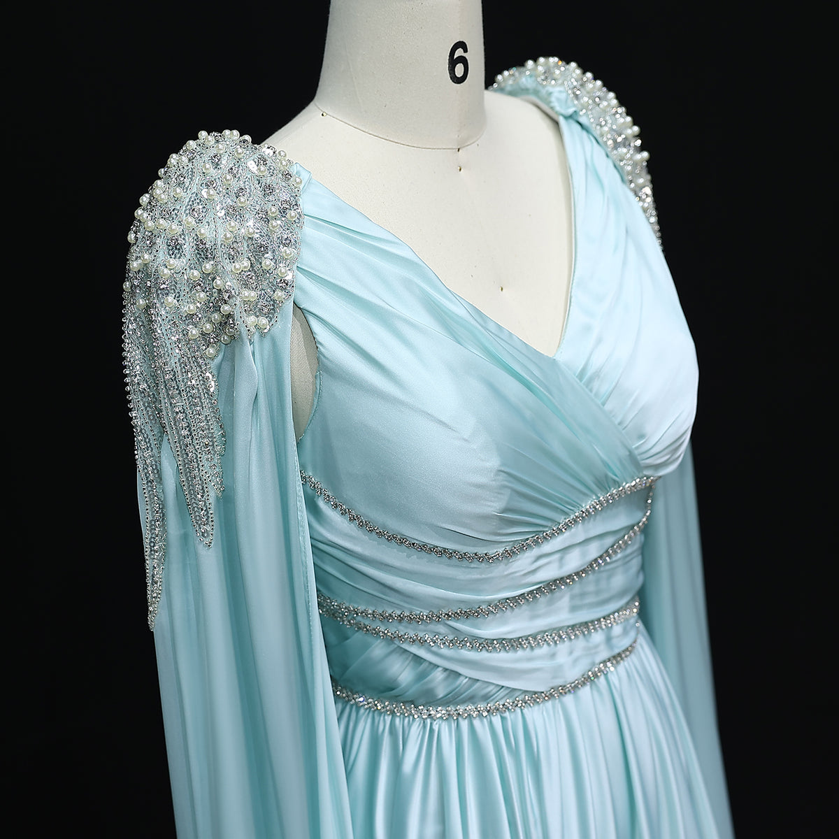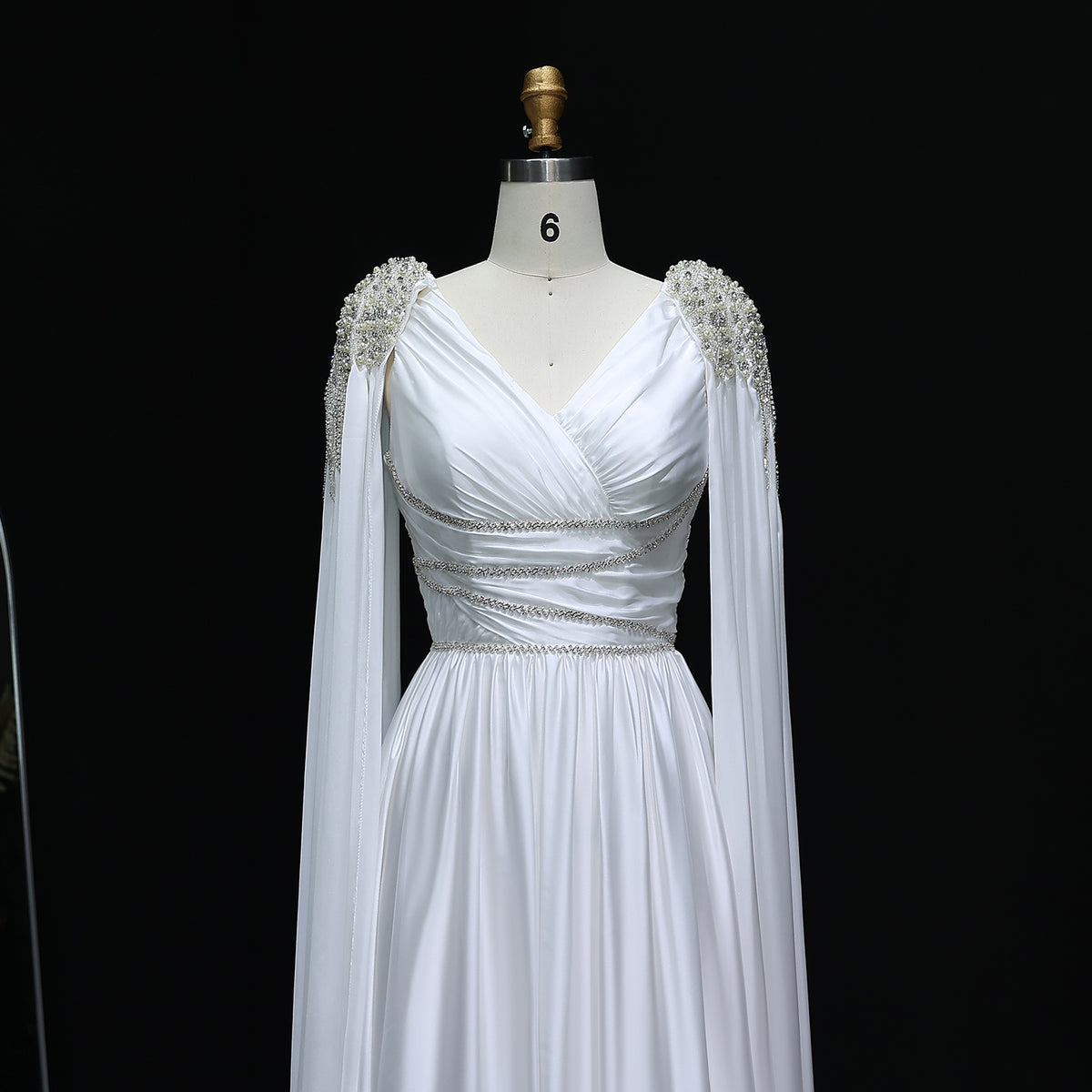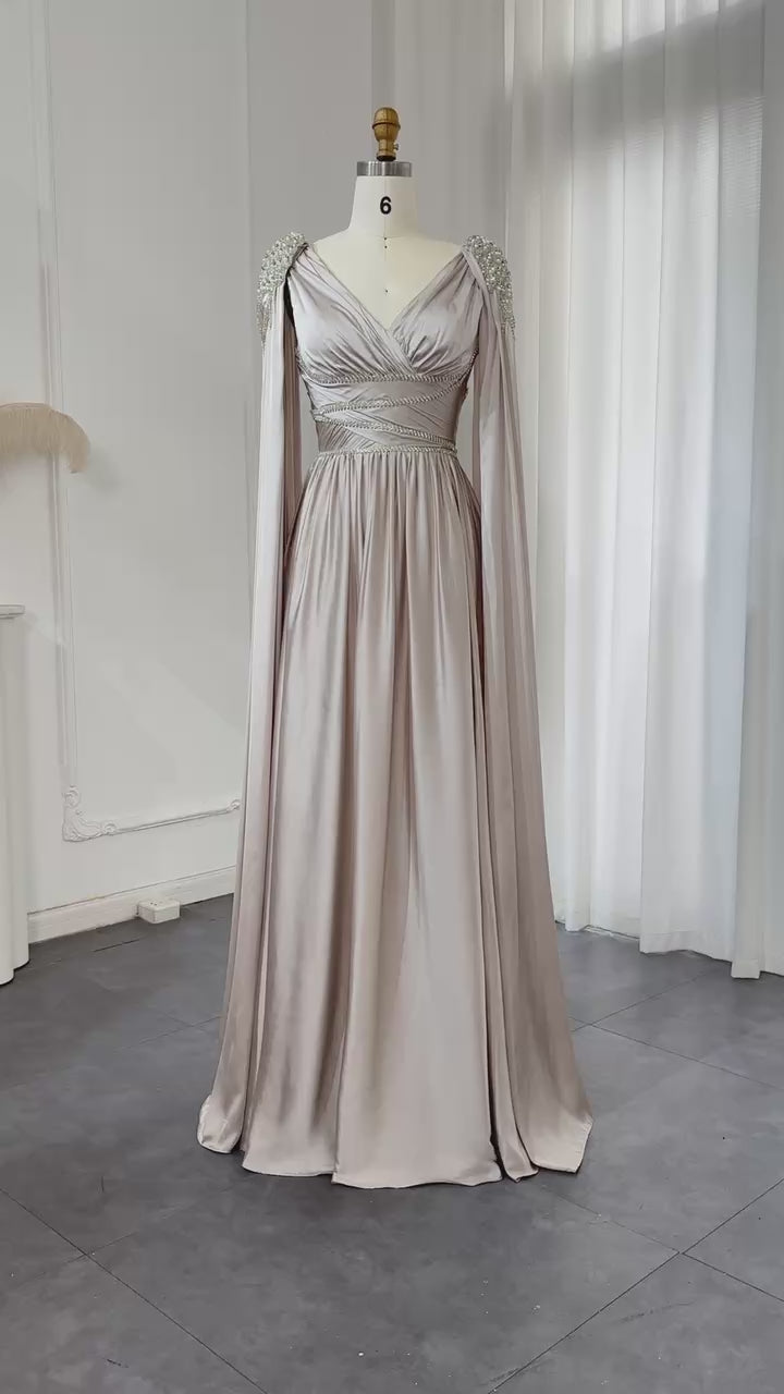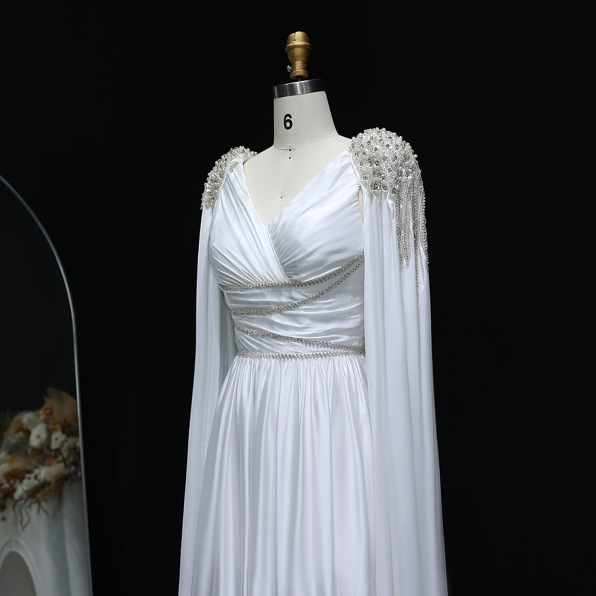 Luxury Crystal Rose Gold Evening Dress with Cape SS589