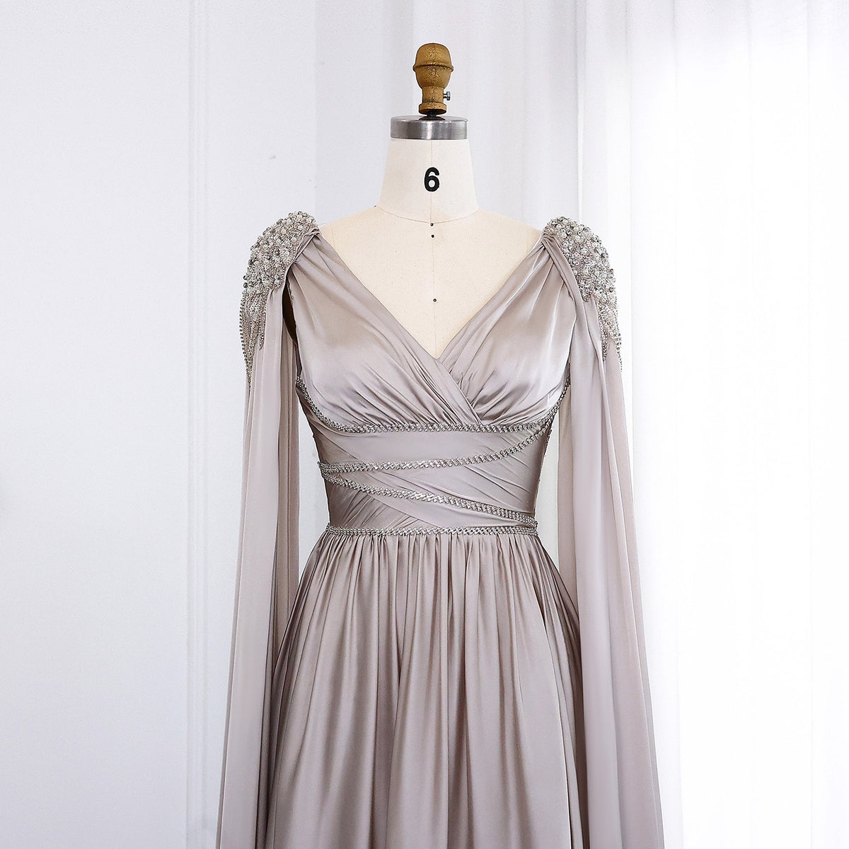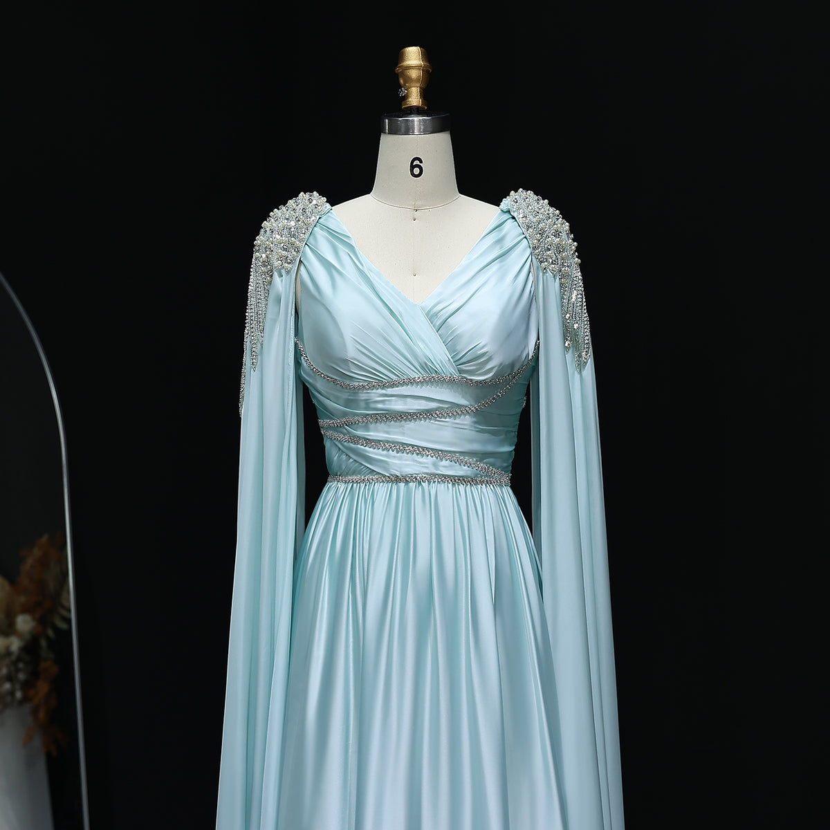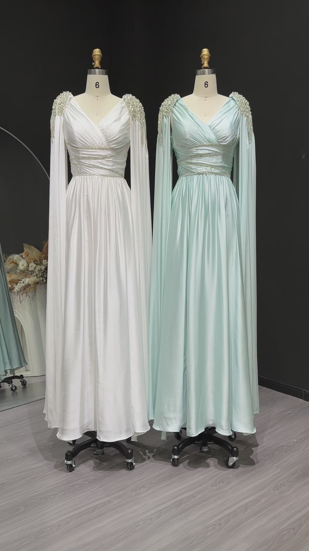 Luxury Crystal Rose Gold Evening Dress with Cape SS589