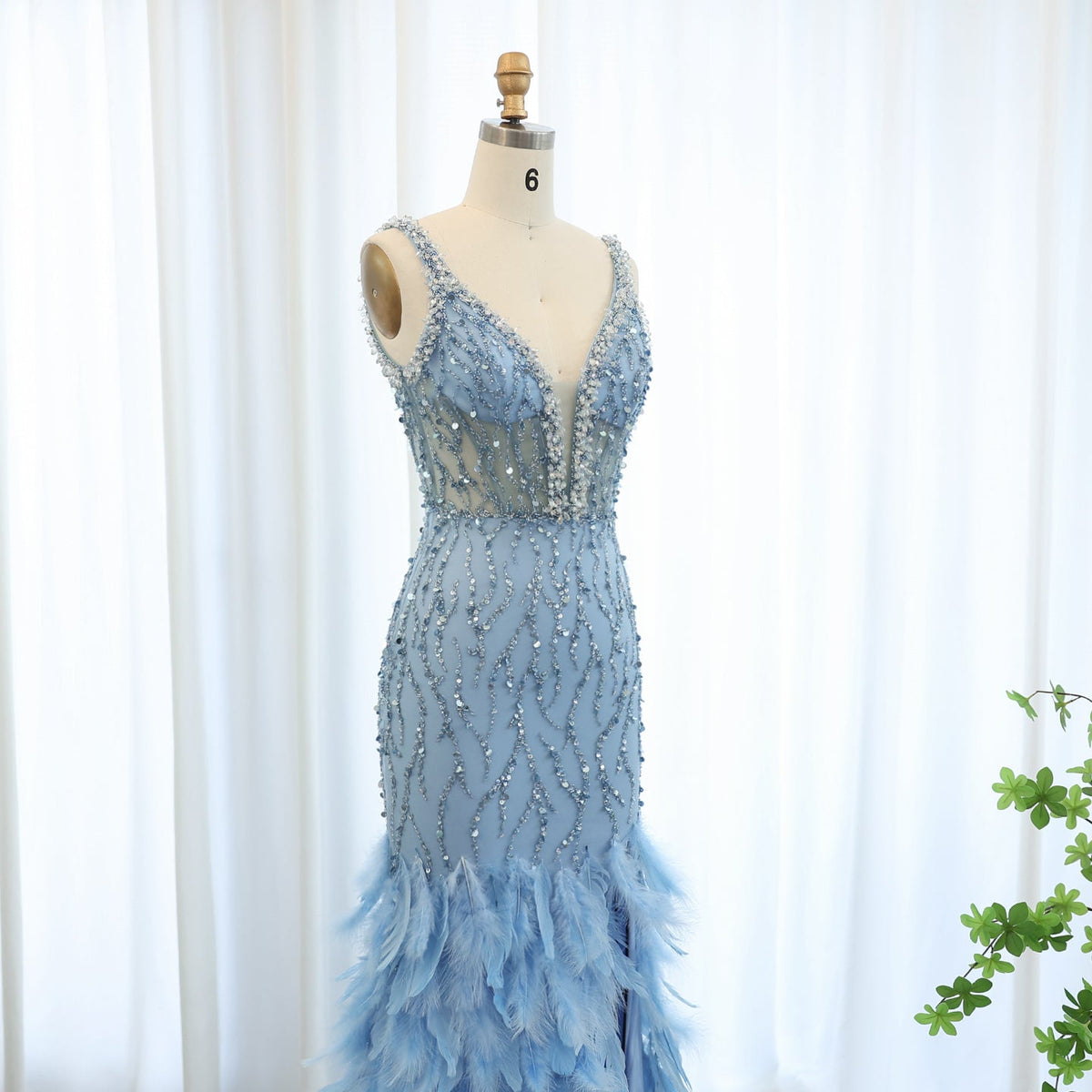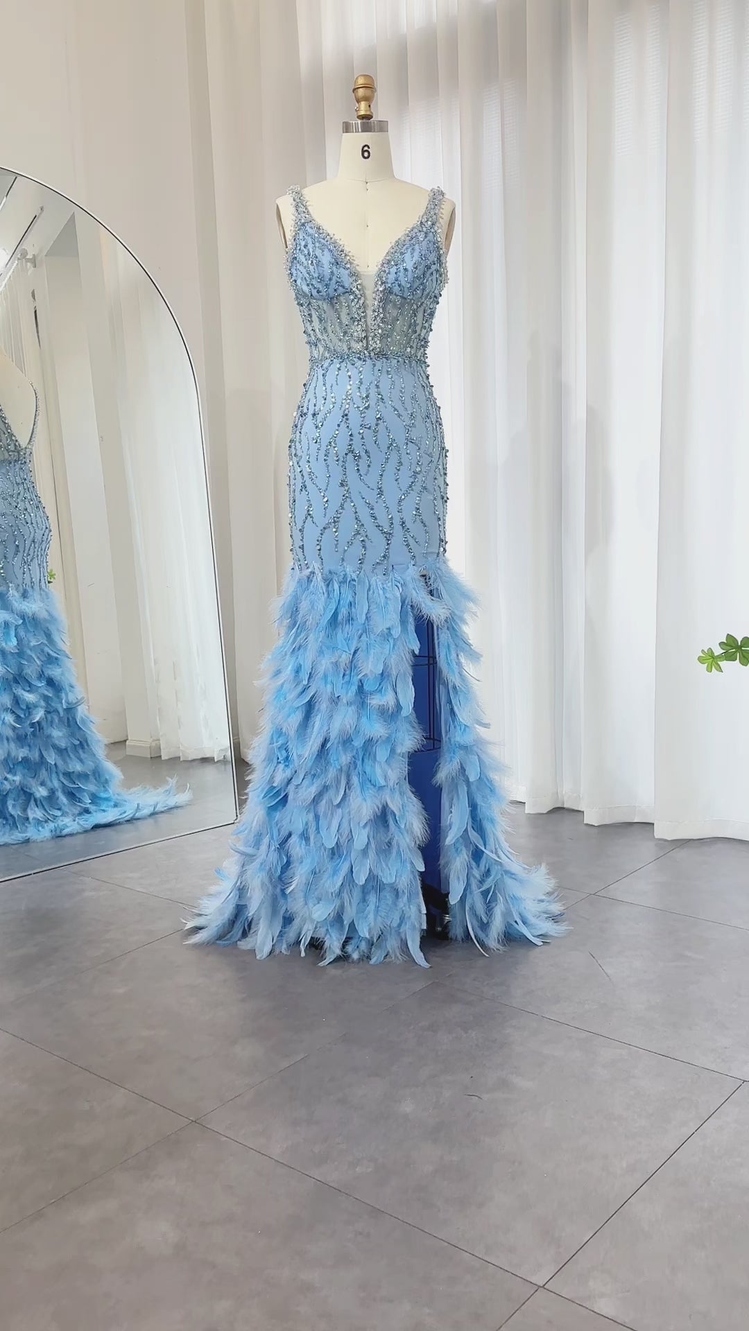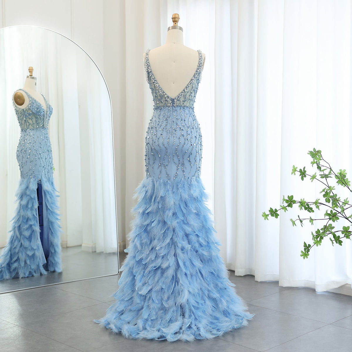 كخبير في الصناعة، أقدم لك فستان سهرة حورية البحر الوردي الفاخر من شارون سعيد. يتميز هذا الفستان الأنيق برقبة عميقة على شكل حرف V، وفتحة جانبية زرقاء مذهلة، وريش فاخر يضفي لمسة من التألق. مثالي لحفلات الزفاف، أو الحفلات الراقصة، أو أي مناسبة خاصة.