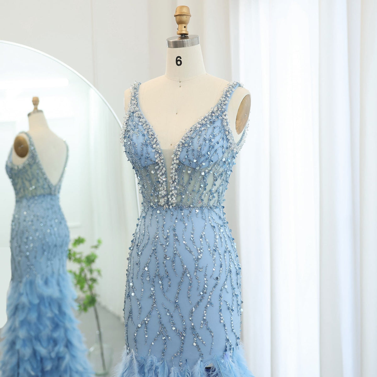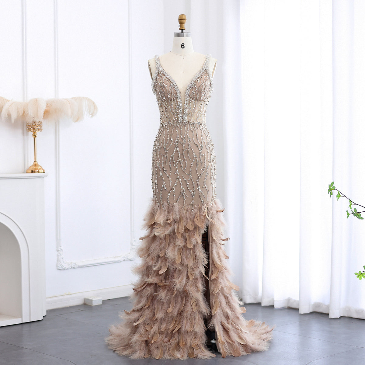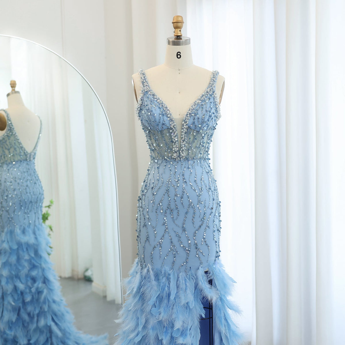 كخبير في الصناعة، أقدم لك فستان سهرة حورية البحر الوردي الفاخر من شارون سعيد. يتميز هذا الفستان الأنيق برقبة عميقة على شكل حرف V، وفتحة جانبية زرقاء مذهلة، وريش فاخر يضفي لمسة من التألق. مثالي لحفلات الزفاف، أو الحفلات الراقصة، أو أي مناسبة خاصة.