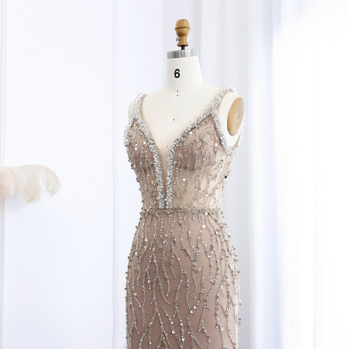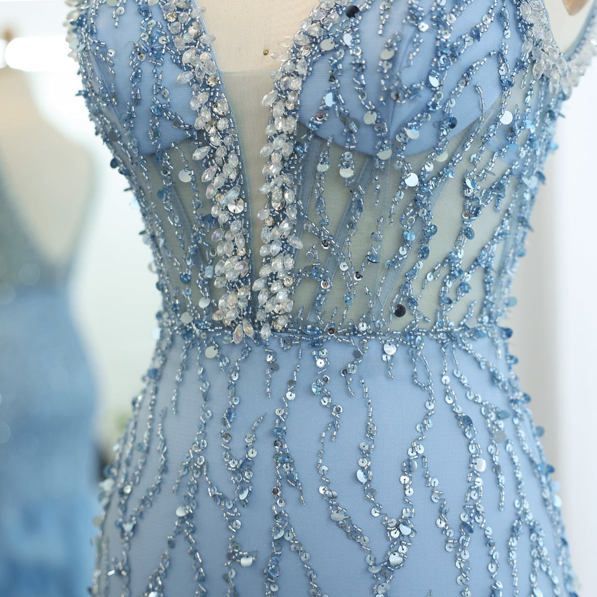 شارون سعيد فساتين سهرة فاخرة بحورية البحر باللون الوردي للنساء لحفلات الزفاف وفتحة جانبية زرقاء وفتحة جانبية طويلة للحفلات الراقصة SS184