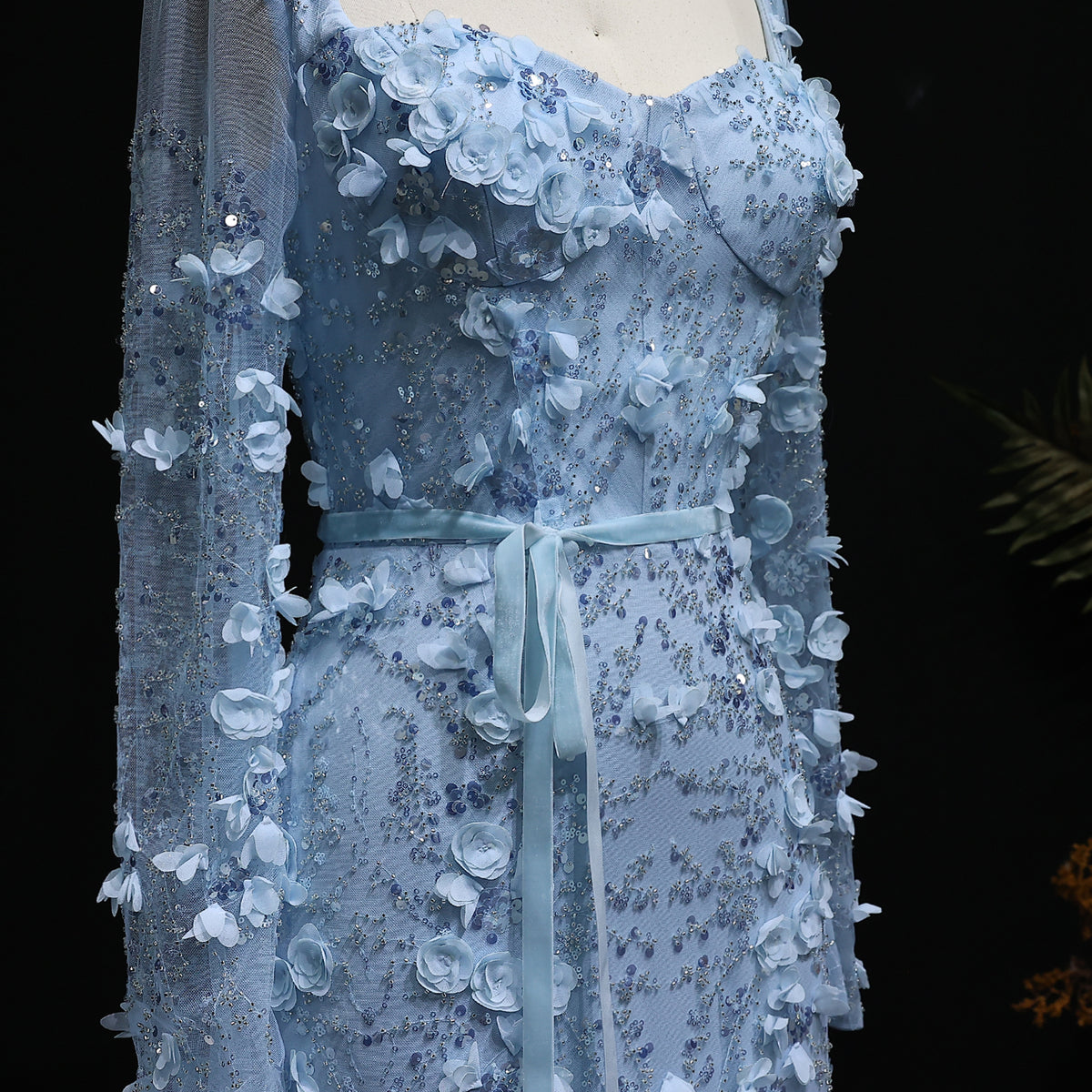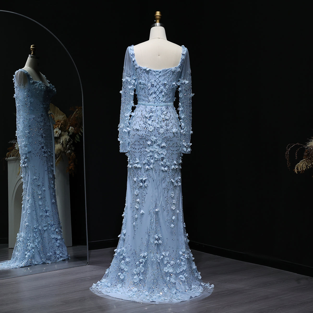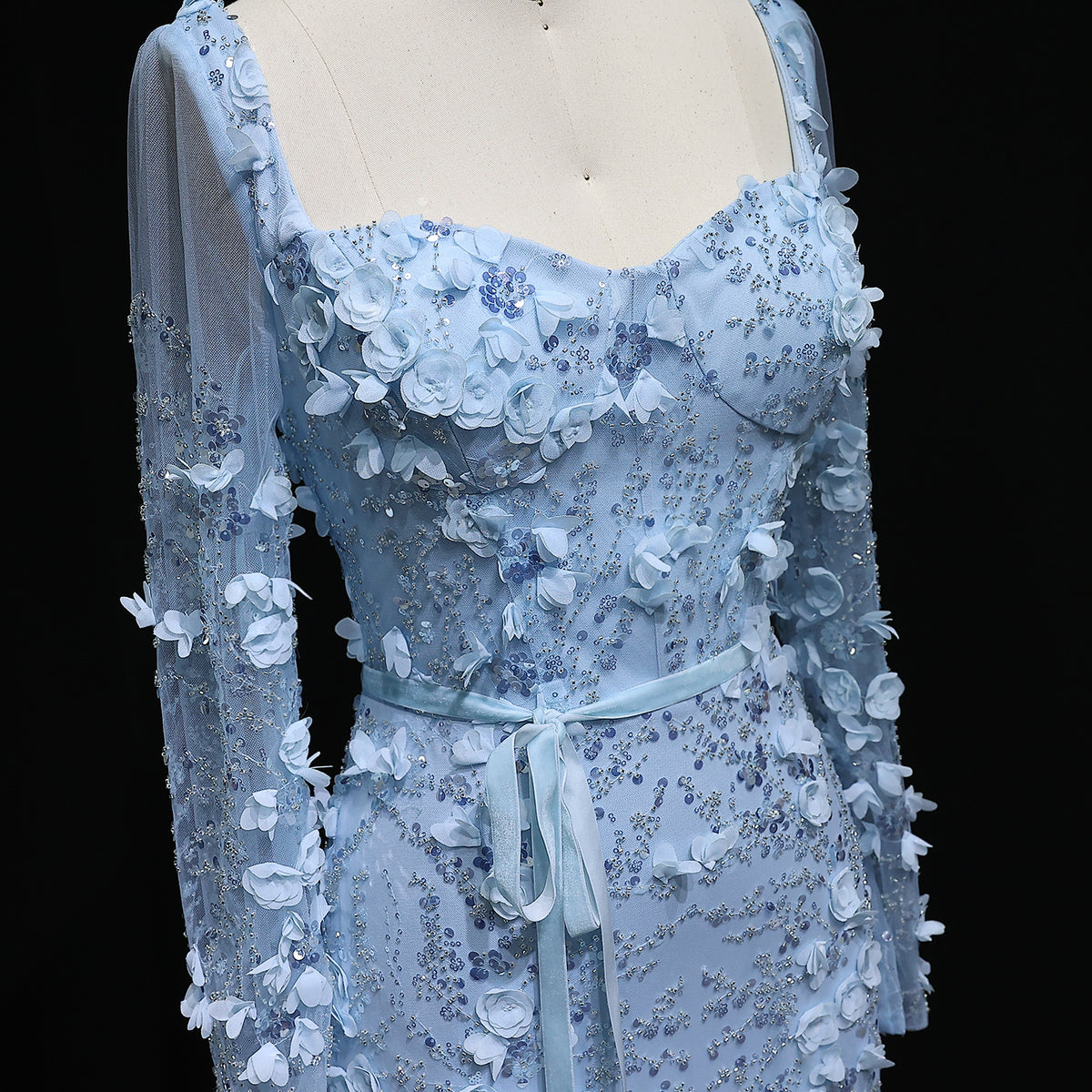 Indulge in the sophistication and luxury of our Luxury Green 3D Floral Evening Dress with Long Sleeves SS355. Intricate 3D floral details adorn the elegant long sleeves, creating a dreamy and artistic look. Perfect for any formal occasion, this dress exudes exclusivity and timeless beauty.