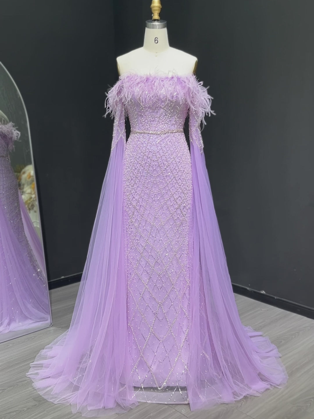 شارون سعيد فستان سهرة فاخر من الريش الفيروزي في دبي بأكمام كيب أرجواني عربي للنساء لحفلات الزفاف فستان حفلات SS261