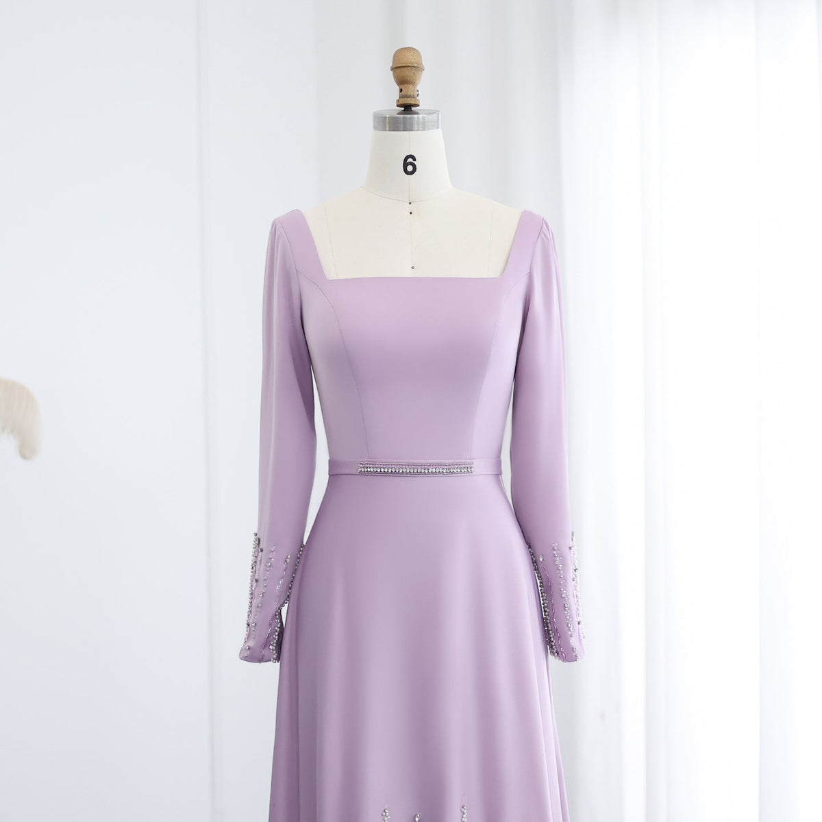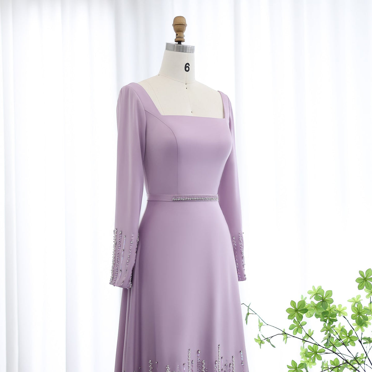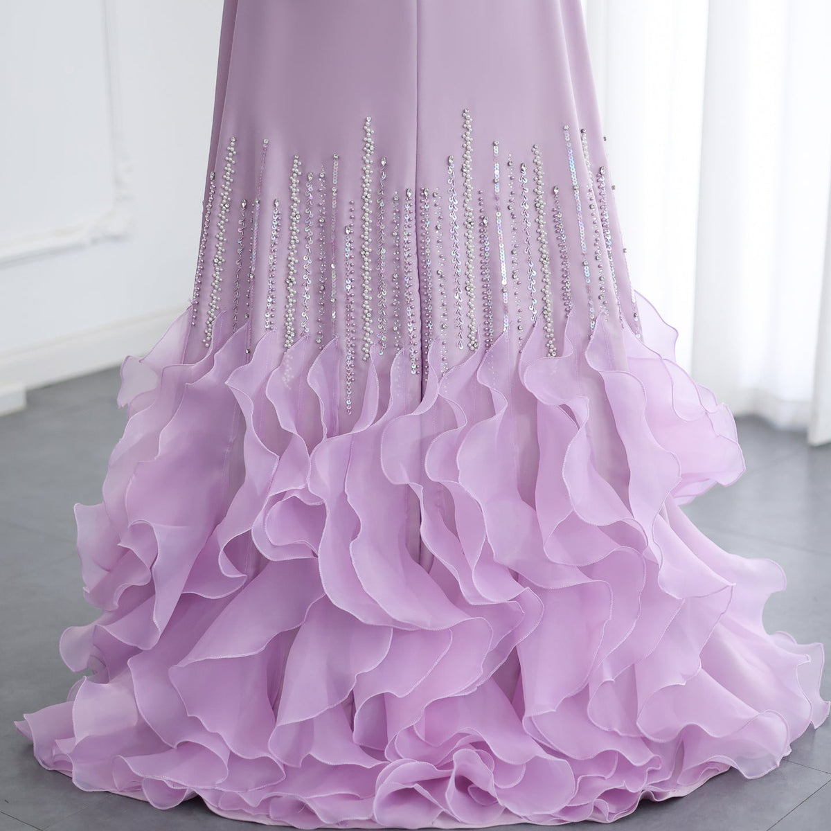 Luxury Lilac Ruffles Long Sleeve Evening Dress SS579
