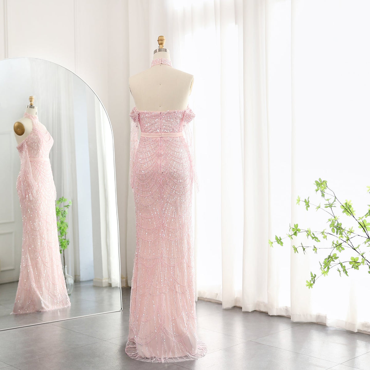 ارفعي أناقتك مع فساتين السهرة ذات حورية البحر الفاخرة من شارون سعيد في دبي. تتميز هذه الفساتين بياقة رسن وصورة ظلية على شكل حورية البحر، مما يعكس الأناقة والرقي. تضيف القفازات المتضمنة لمسة من الدراما، وهي مثالية للمناسبات الرسمية وحفلات الزفاف. استمتعي بالسحر العربي وتألقي بفساتين SS289.