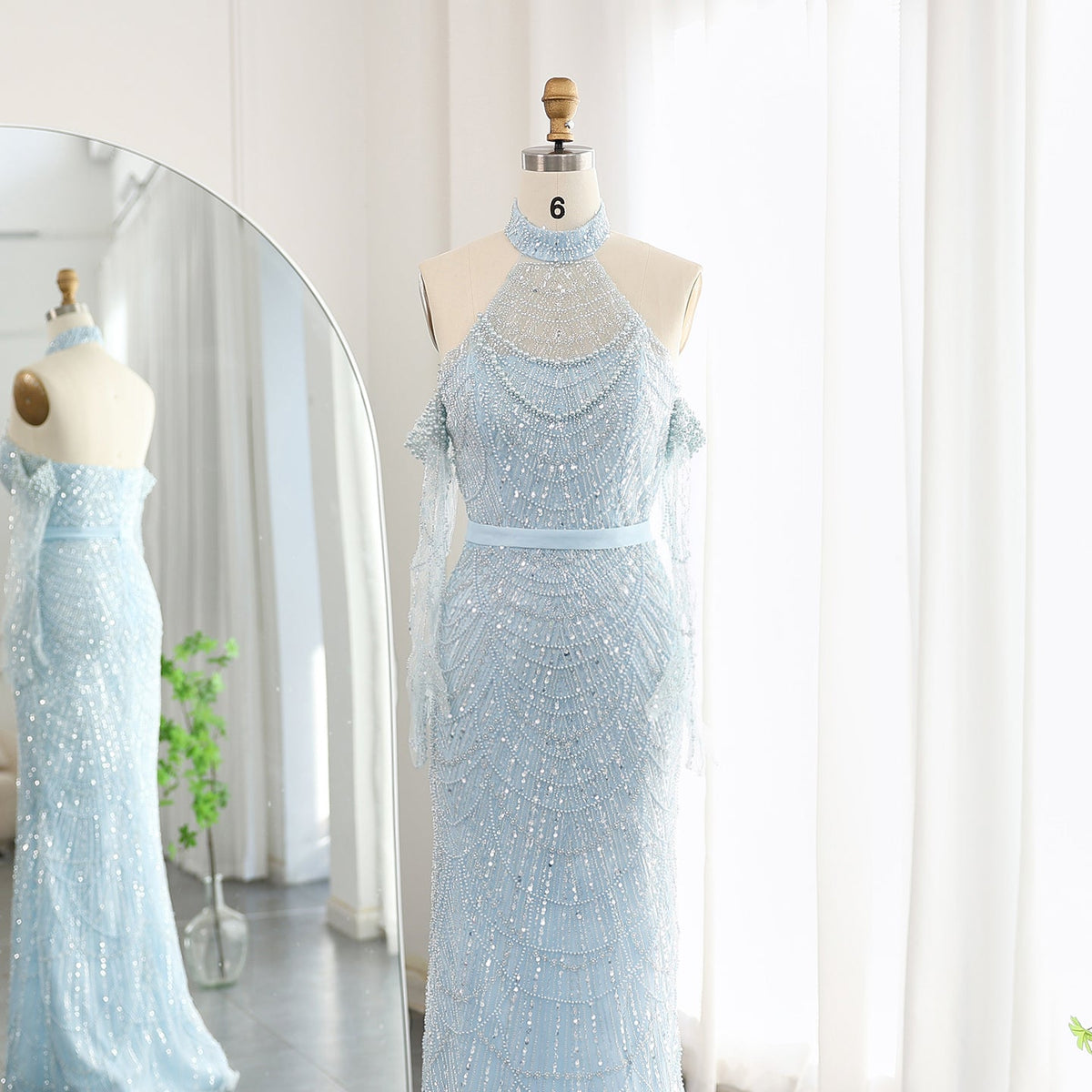 شارون سعيد فاخر دبي فساتين سهرة حورية البحر عارية مع قفازات 2024 مثير الرسن المرأة العربية الزفاف رداء حفلات رسمية SS289