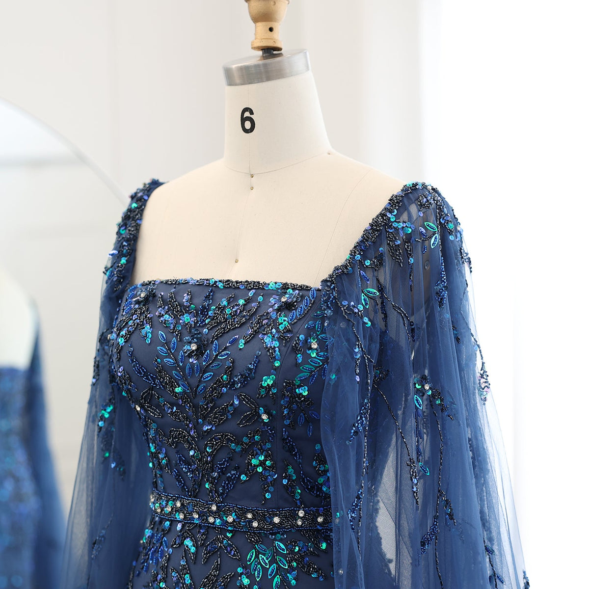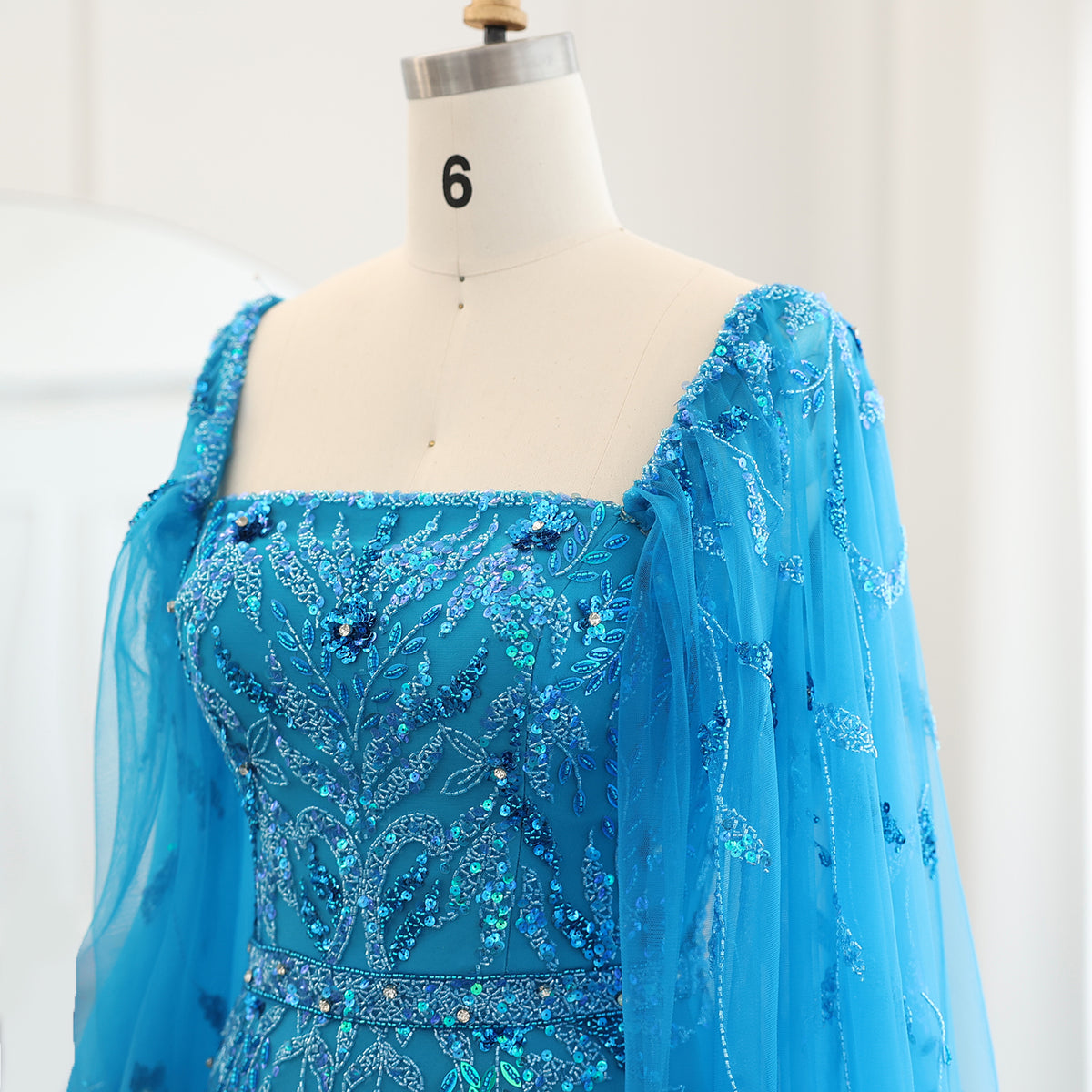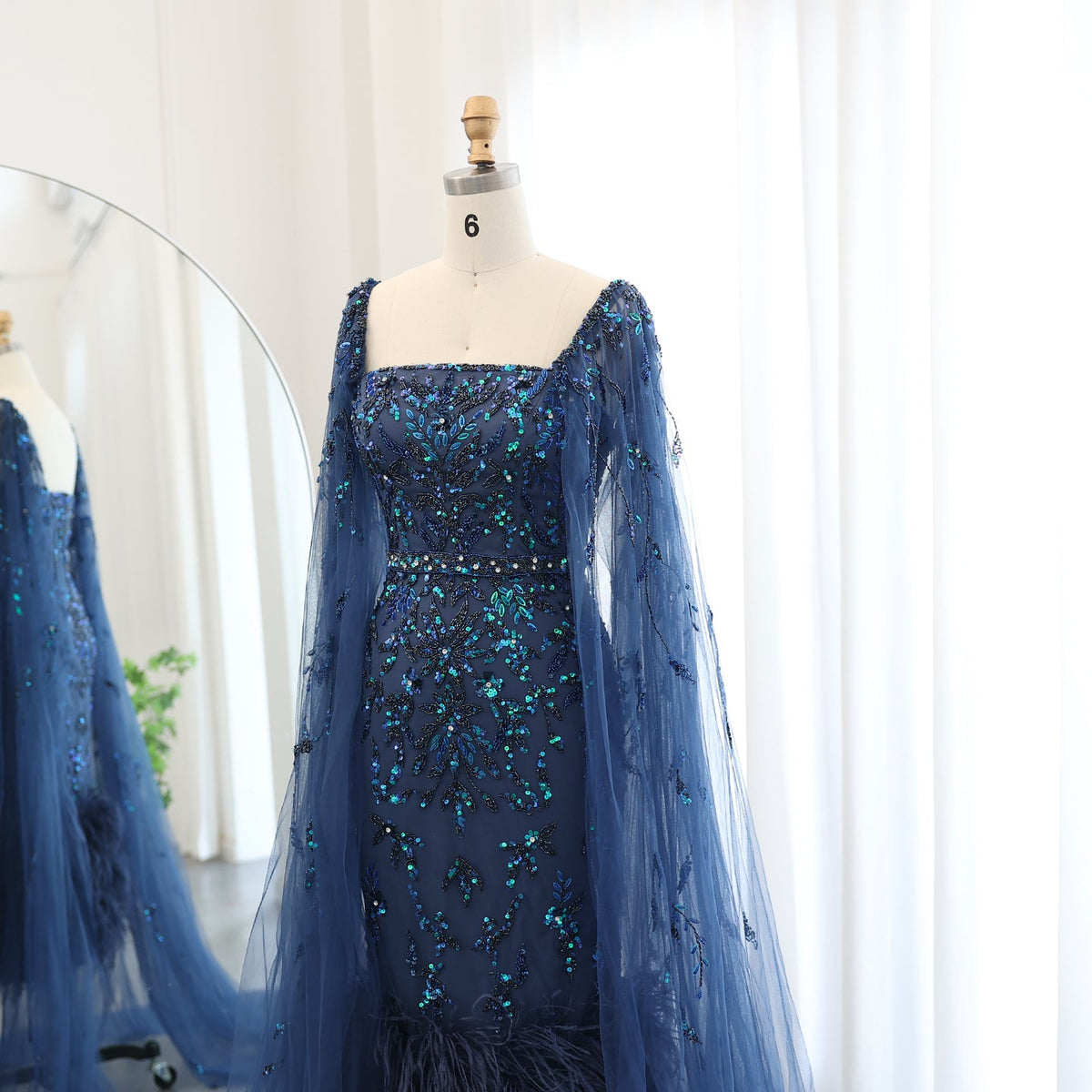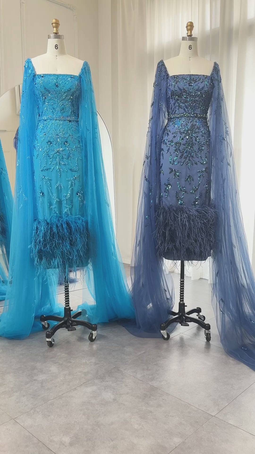 ارتقي بأناقتك مع فستان السهرة الليلكي الفاخر من شارون سعيد دبي. مصمم بلمسات ريش مذهلة وأكمام كيب أنيقة، هذا الفستان متوسط ​​الطول بطول الكاحل ينضح بالفخامة والرقي. مثالي لحفلات الزفاف أو المناسبات الرسمية، هذا الفستان سيجعلك تشعرين وكأنك أميرة عربية ساحرة.
