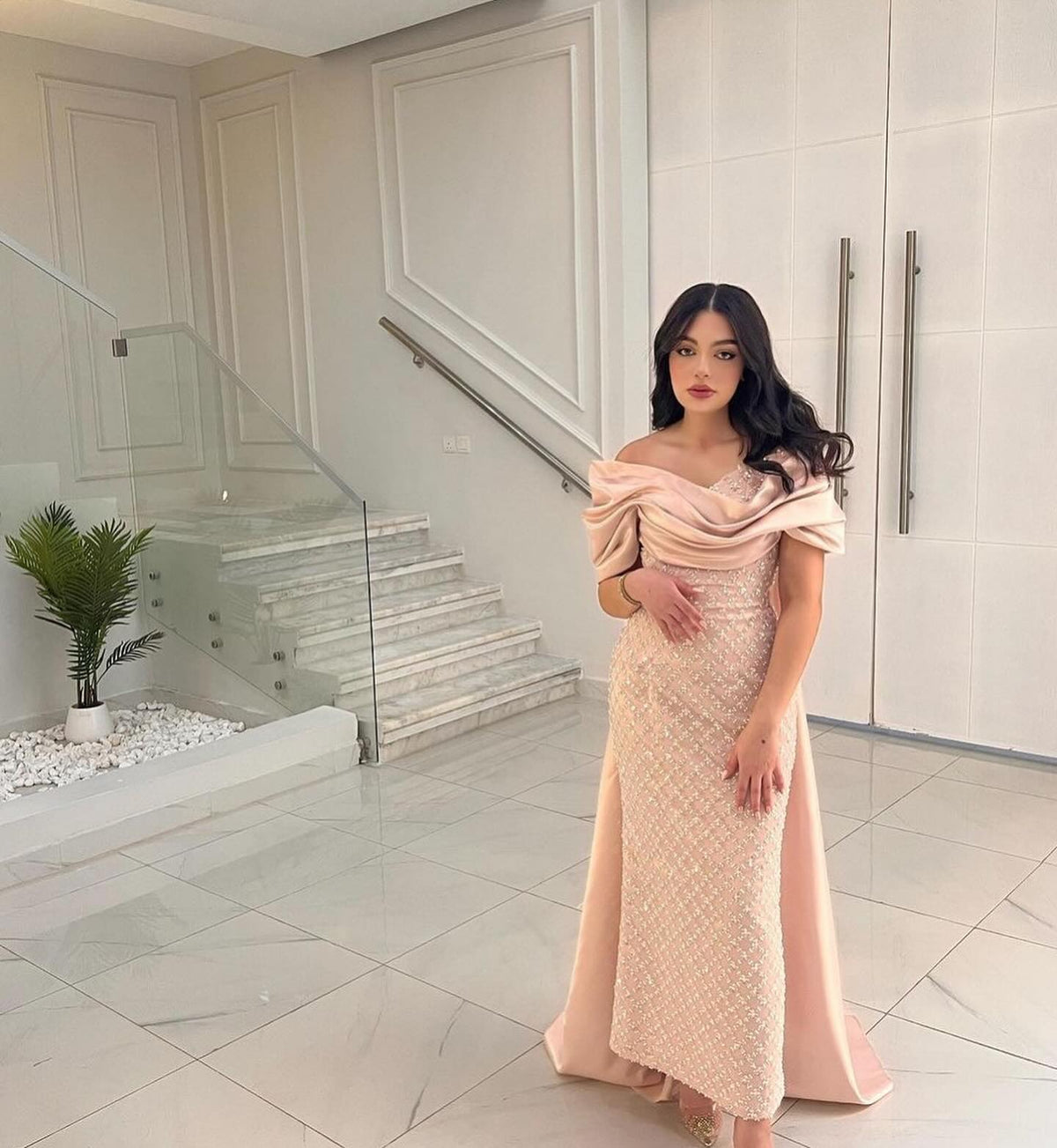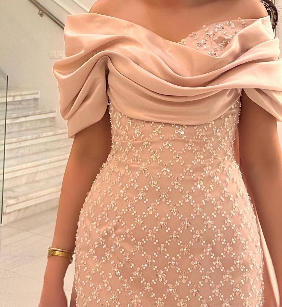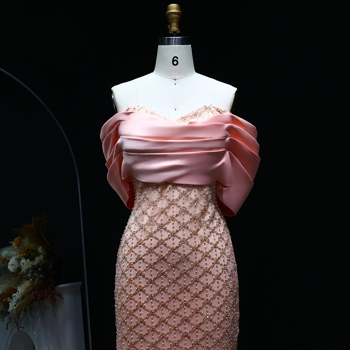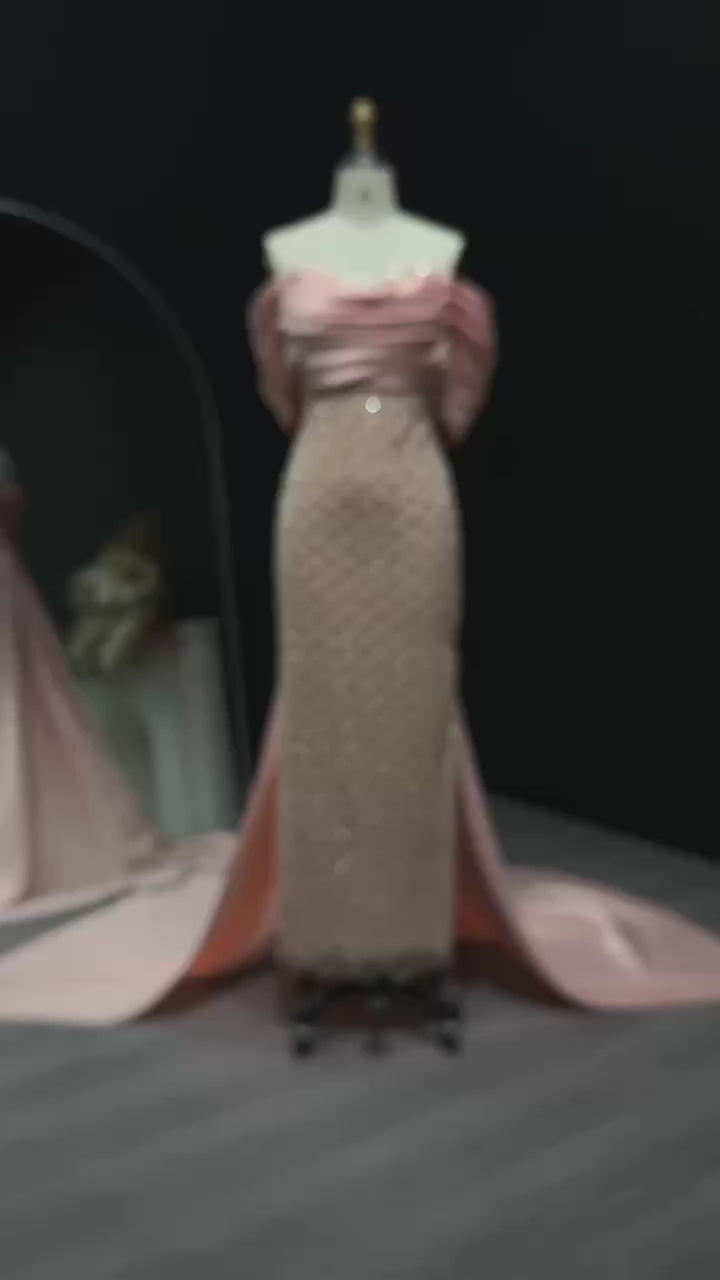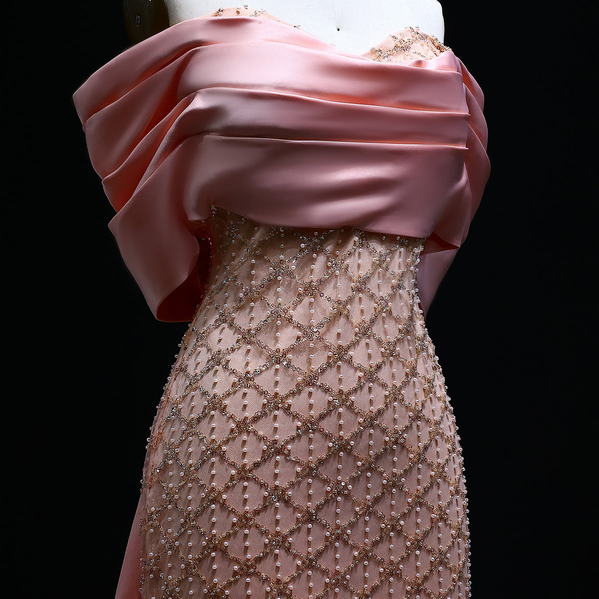 Luxury Off Shoulder Pink Evening Dress with Cape SS709