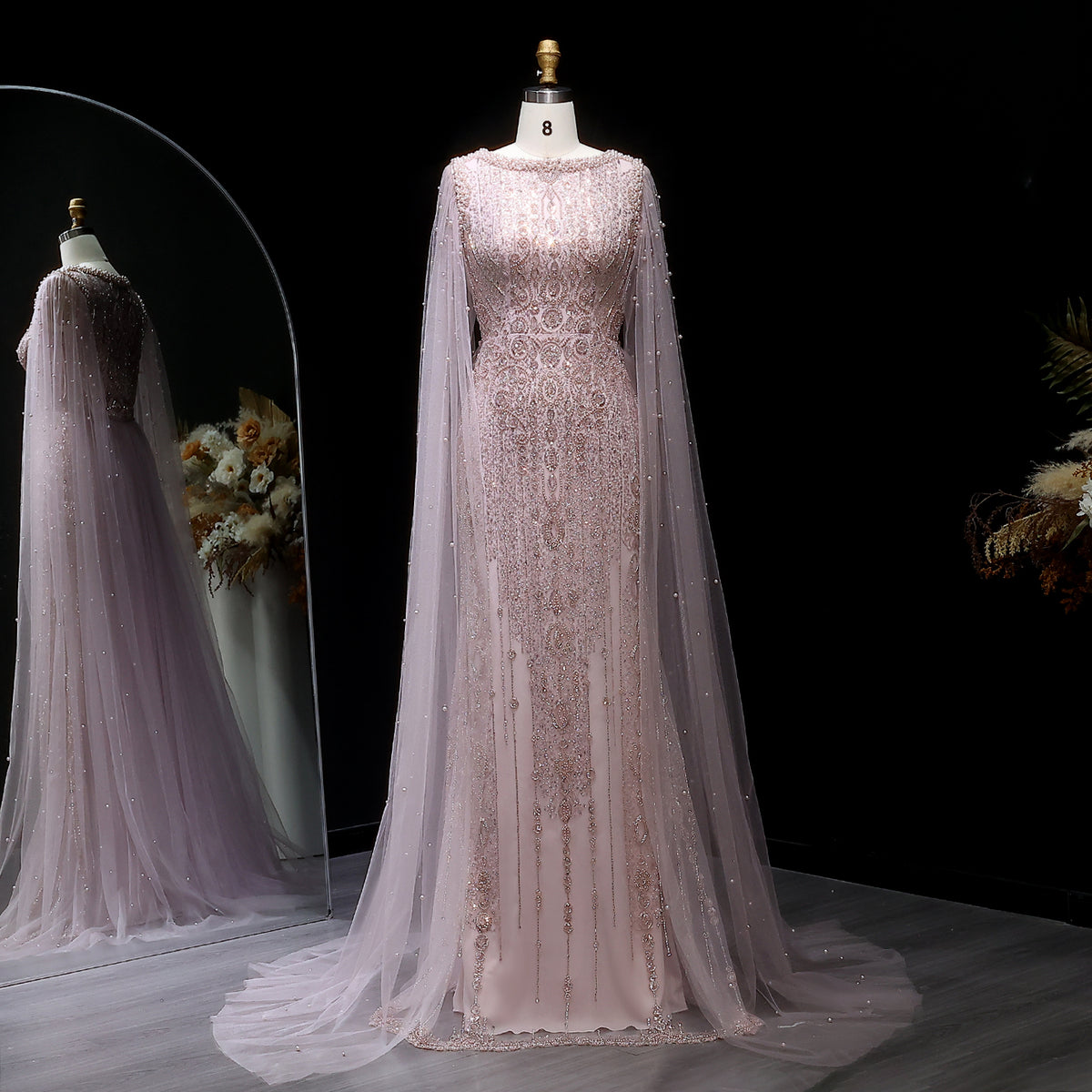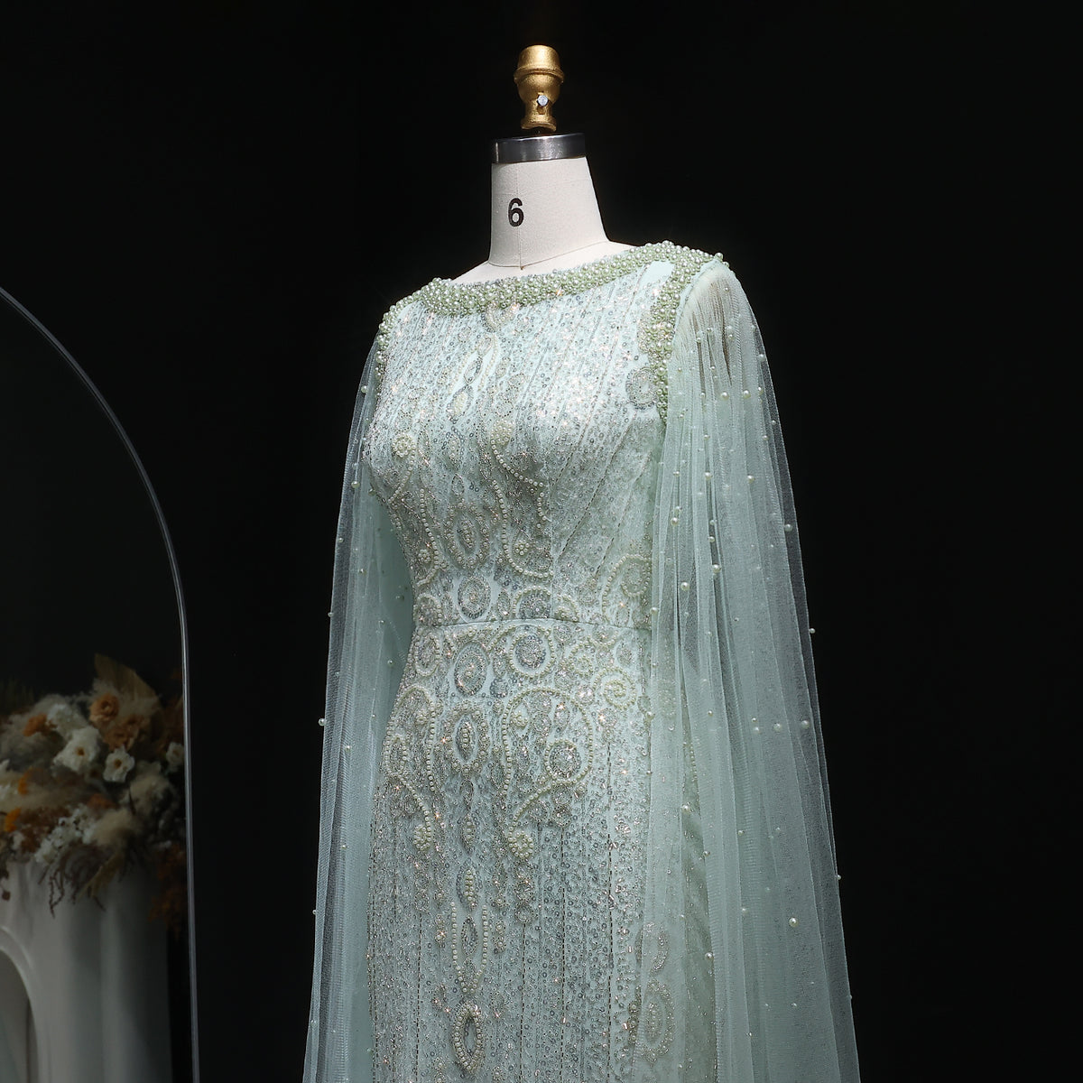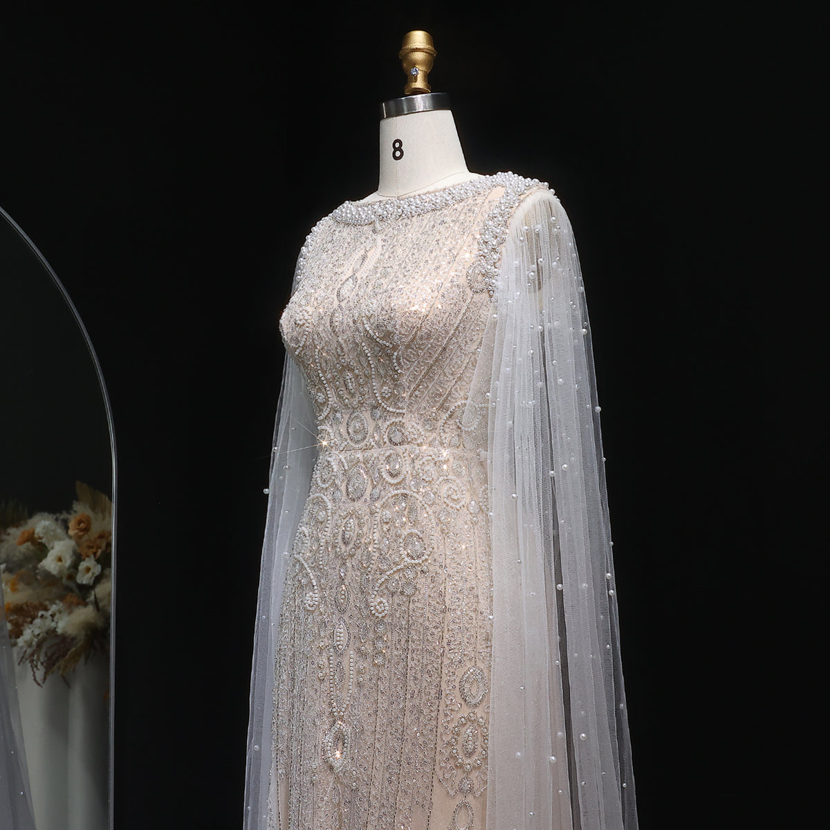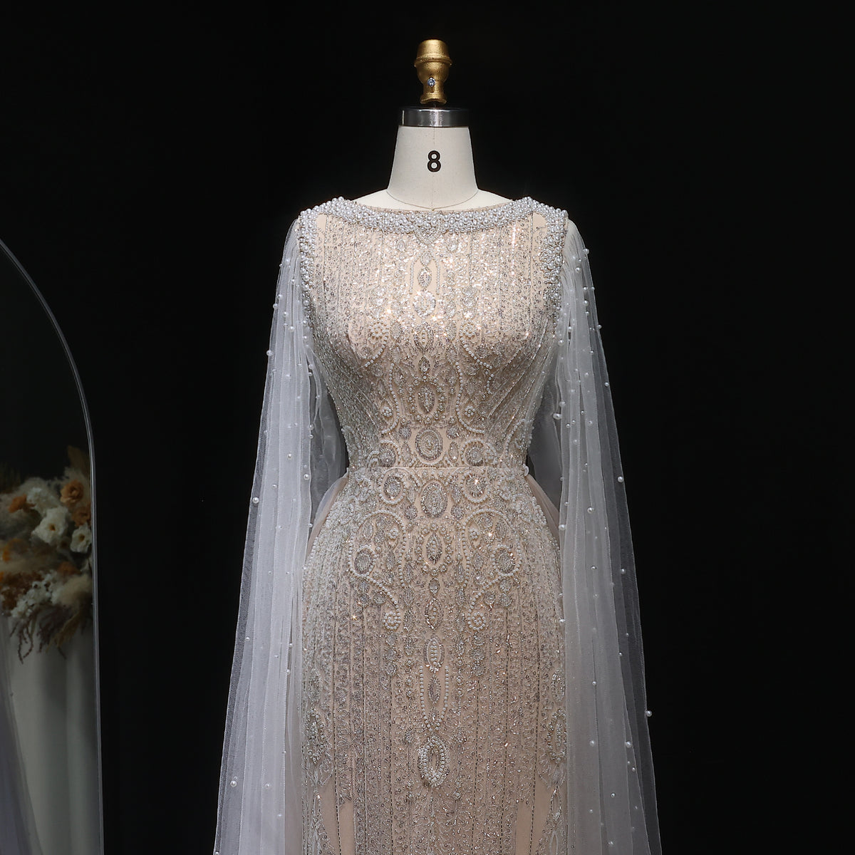 فستان سهرة فاخر من شارون سعيد بحورية البحر باللون الأبيض في دبي بأكمام كيب للنساء لحفلات الزفاف العربية SS458