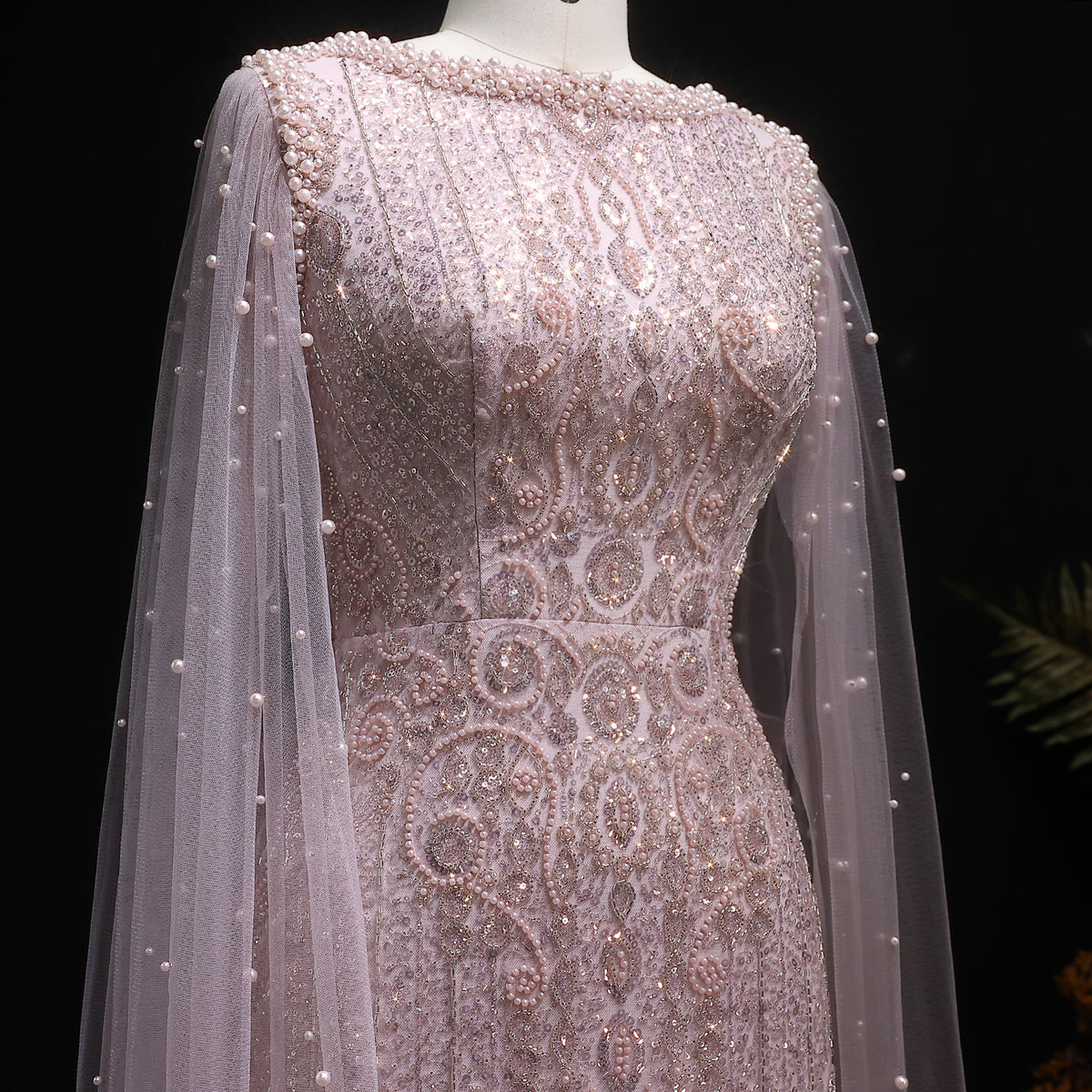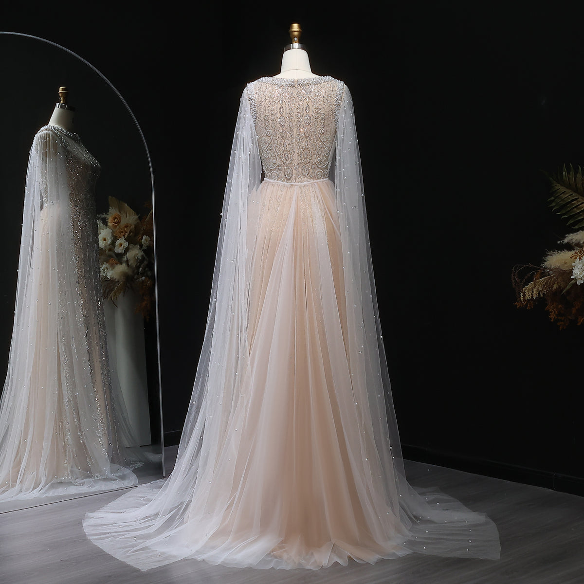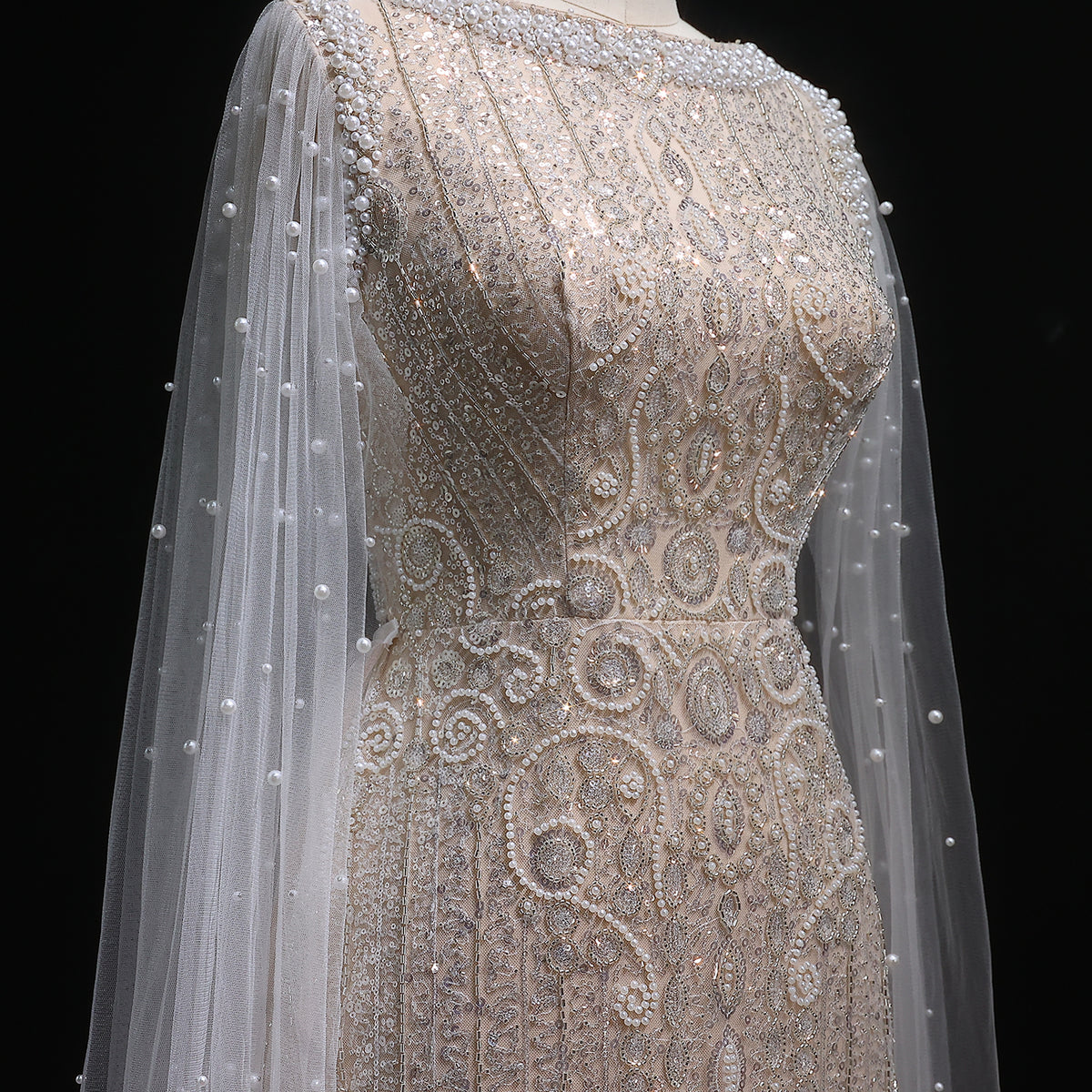 فستان سهرة فاخر من شارون سعيد بحورية البحر باللون الأبيض في دبي بأكمام كيب للنساء لحفلات الزفاف العربية SS458