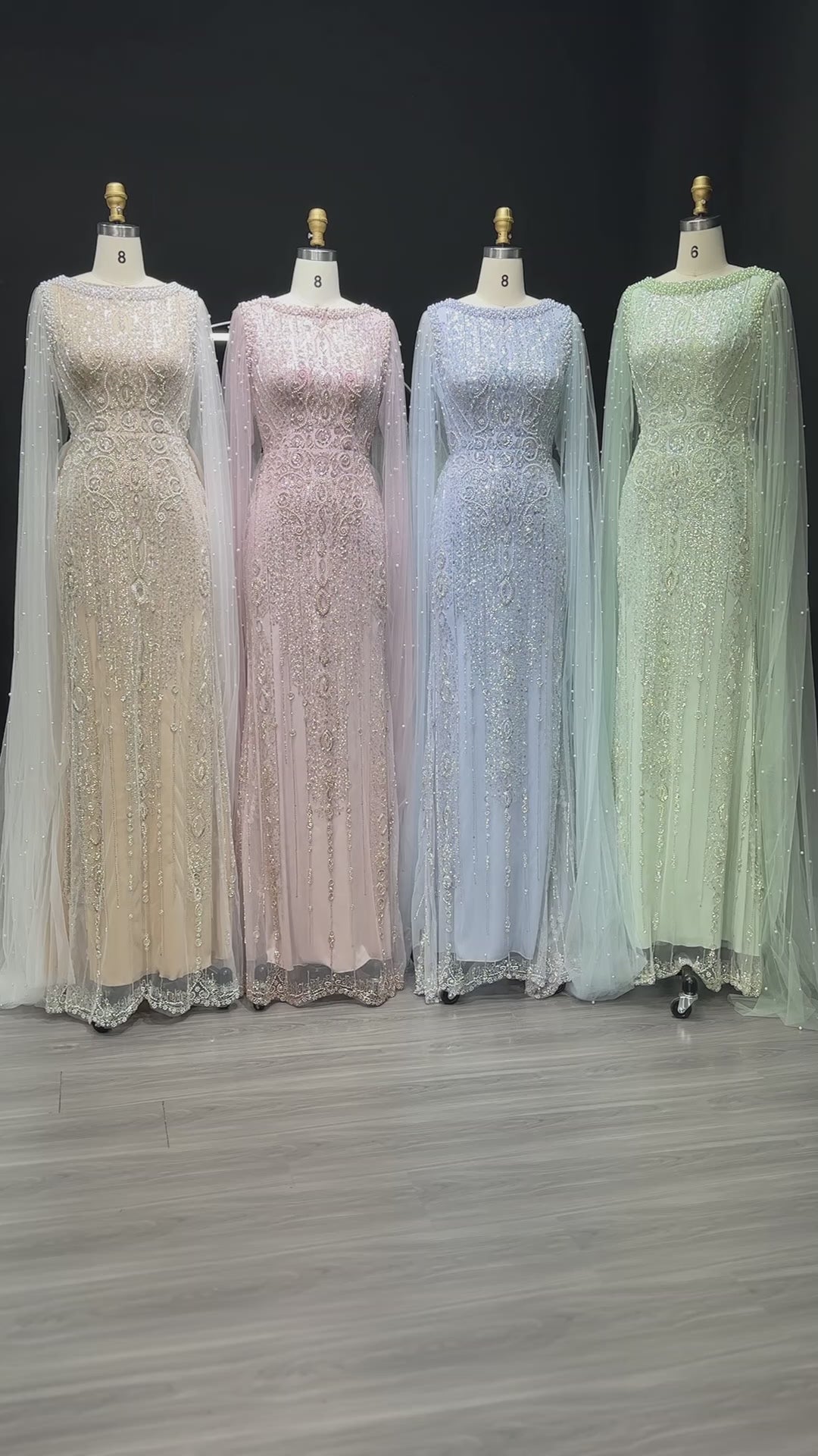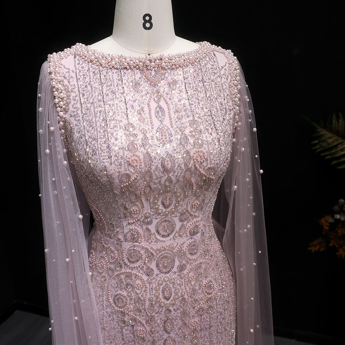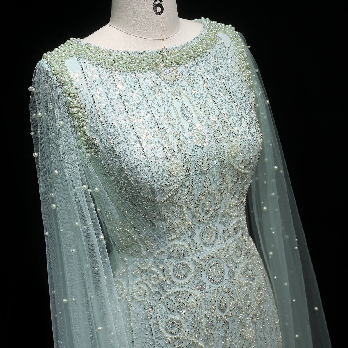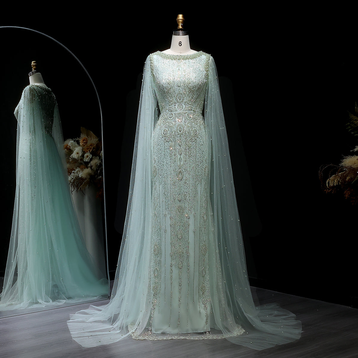 فستان سهرة فاخر من شارون سعيد بحورية البحر باللون الأبيض في دبي بأكمام كيب للنساء لحفلات الزفاف العربية SS458