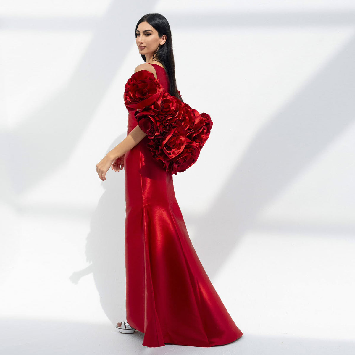 This Luxury Burgundy Mermaid Evening Dress with Floral Cape Sleeves (SF207) offers a refined silhouette that enhances your natural curves with its tailored mermaid cut. Crafted in a rich burgundy hue, the dress features elegant floral-patterned cape sleeves that add a sophisticated and delicate touch. Ideal for formal events, this gown combines dramatic style with graceful detailing, ensuring a memorable and distinguished presence.