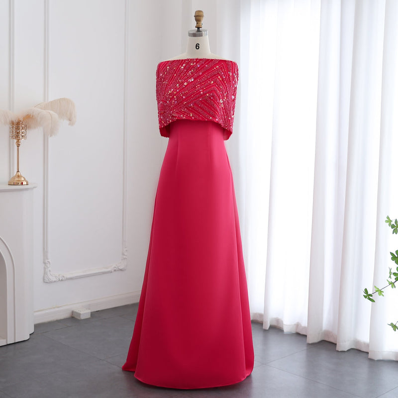 Elegant Off Shoulder Fuchsia Evening Dress with Cape SS482