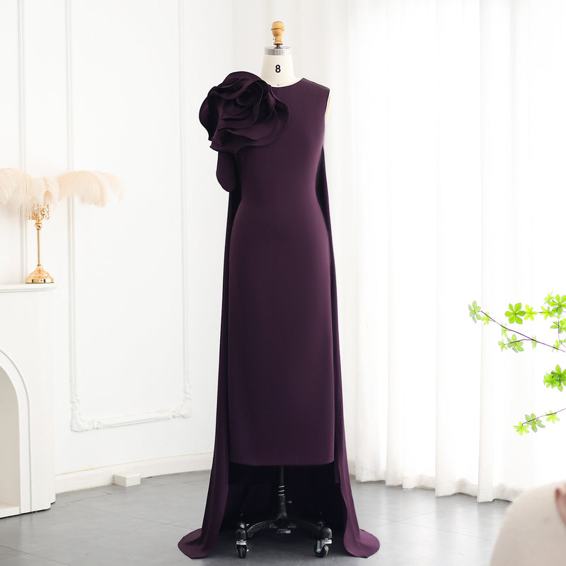 Elegant 3D Flower Purple Midi Evening Dress with Cape SF067