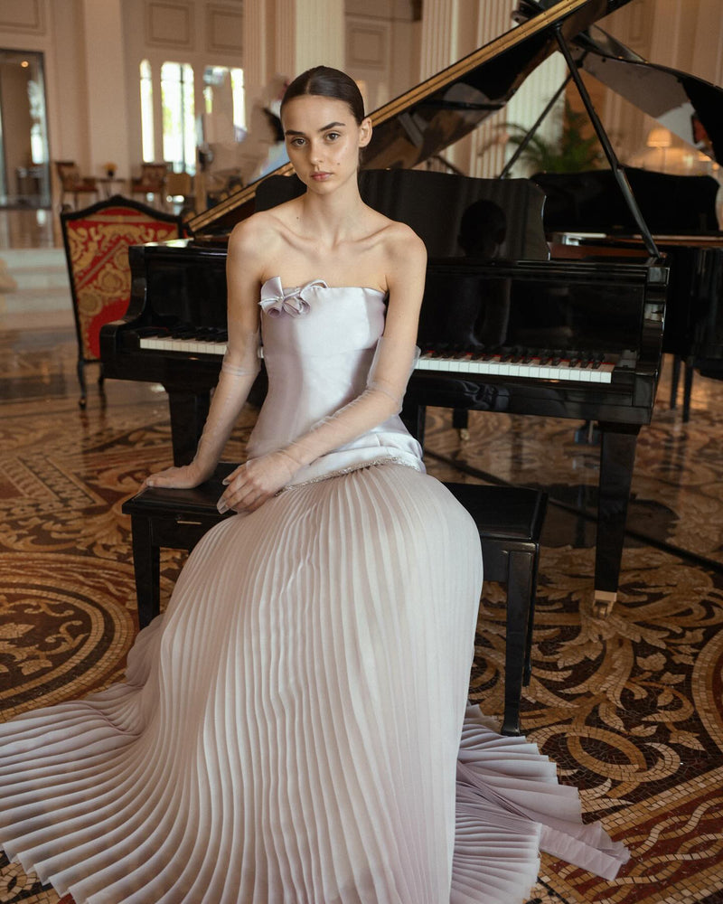 Luxury Crystal Lilac Strapless Chiffon Evening Dress SS539
