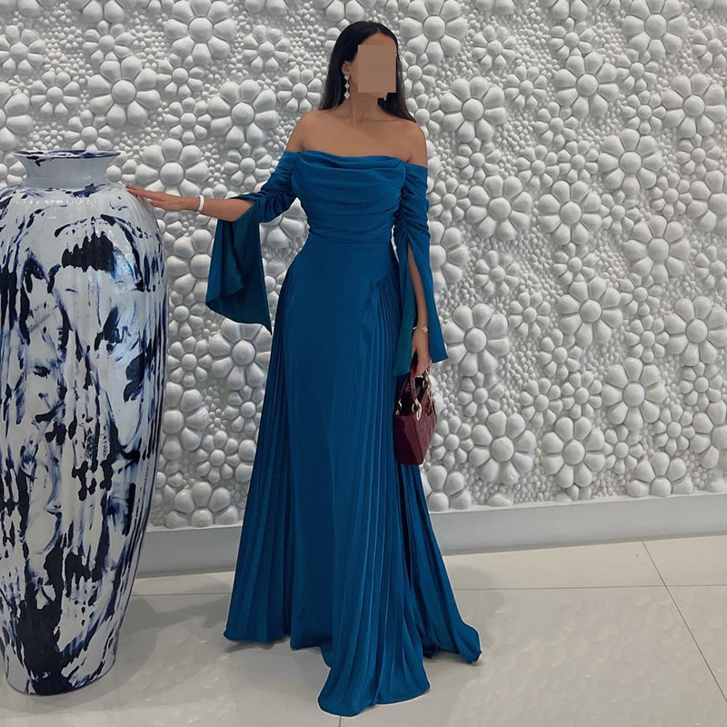 Elegant Blue Off-Shoulder Long Sleeves Evening Dress SF073