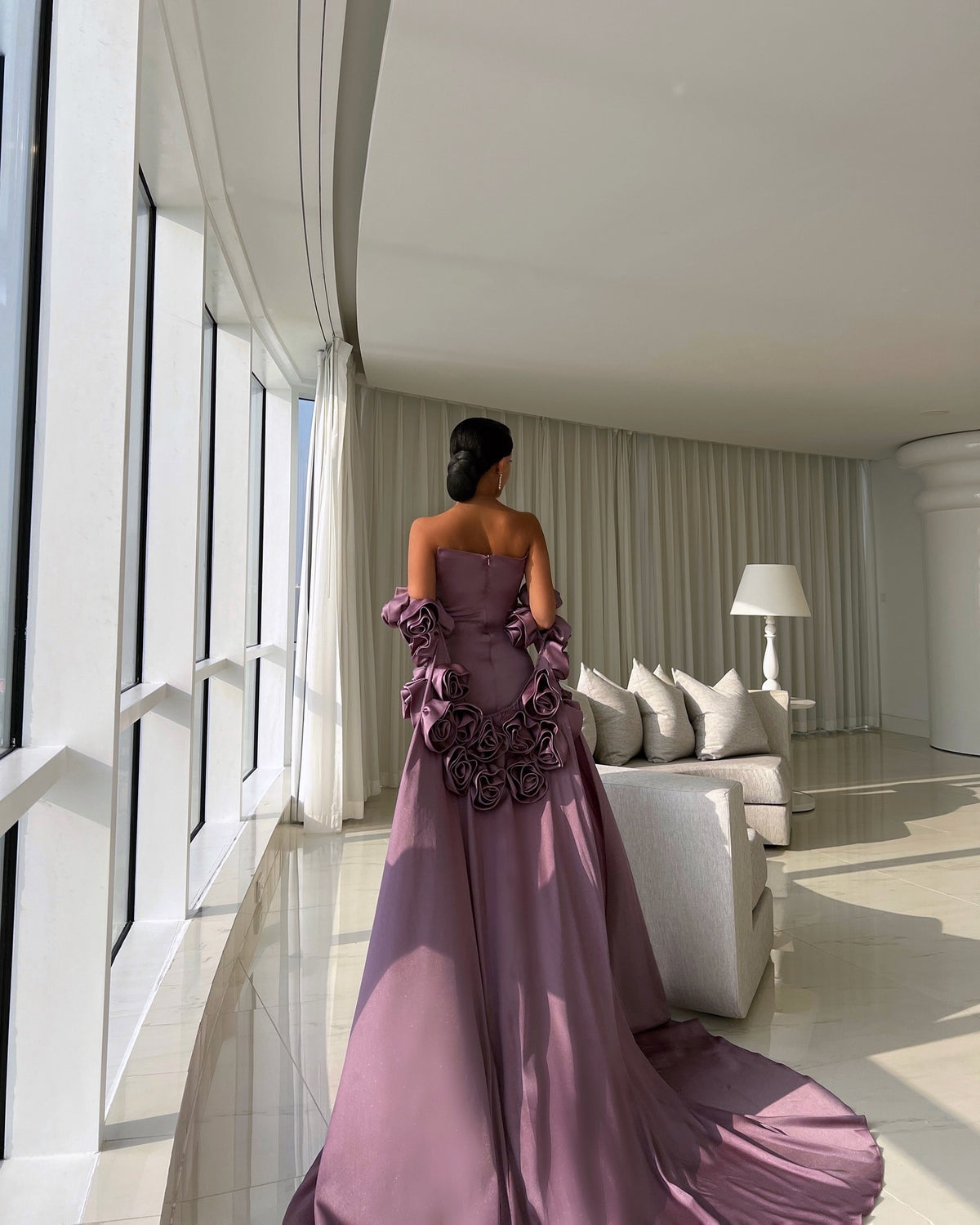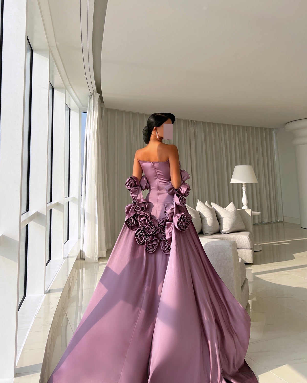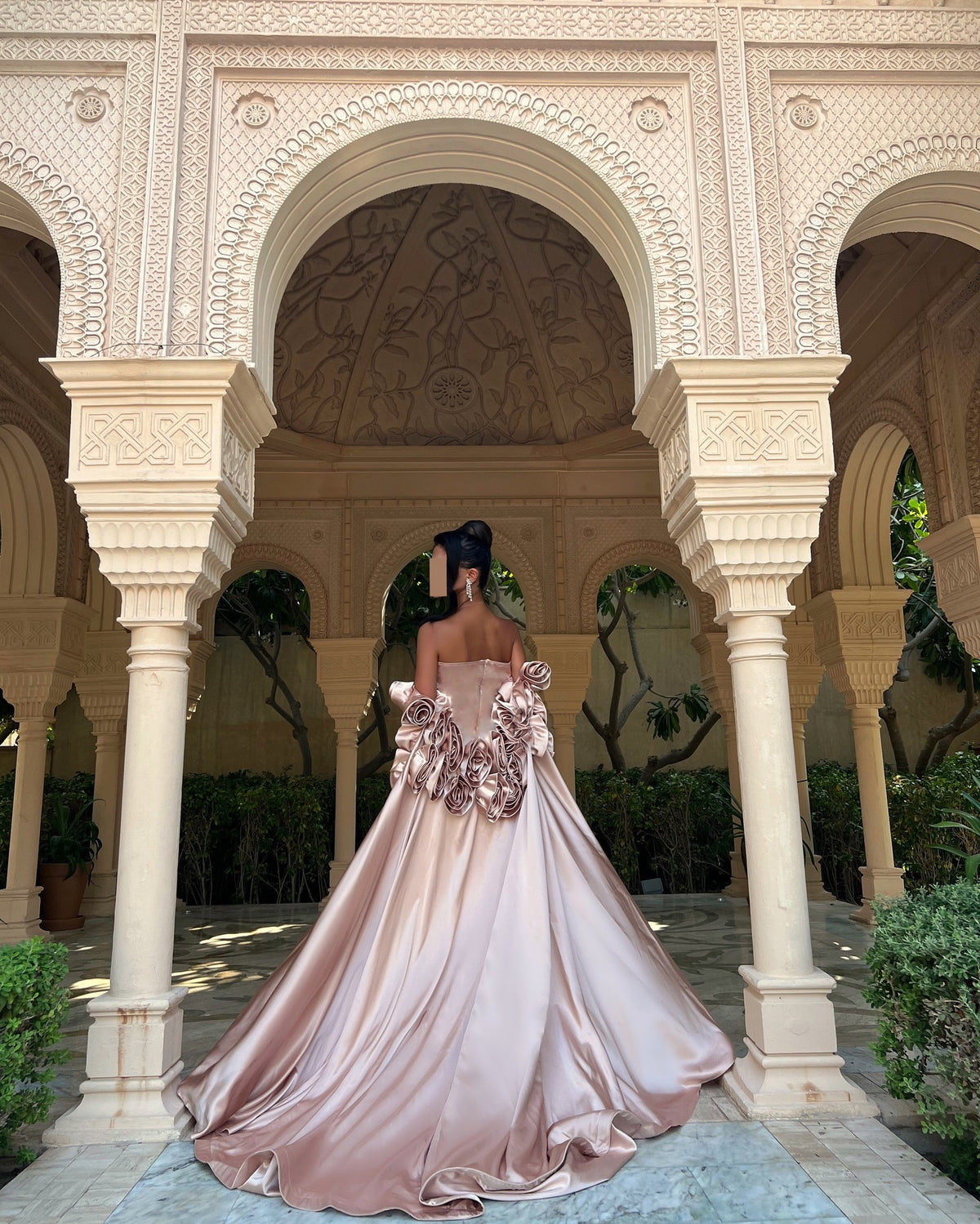 Elevate your evening look with our 3D floral rose gold dress. The intricate floral details add depth and dimension, while the overskirt adds a touch of drama. Made with high-quality materials, this dress is perfect for any special occasion, making you the belle of the ball.