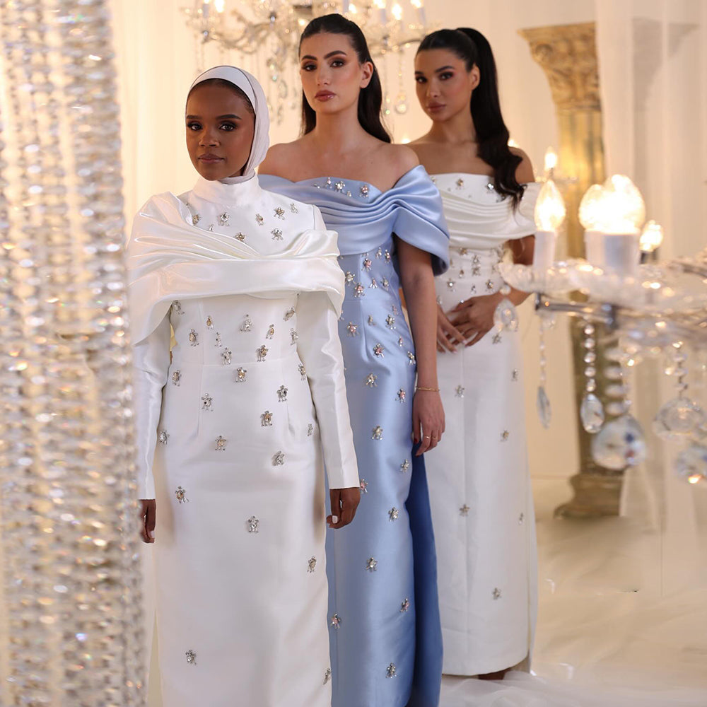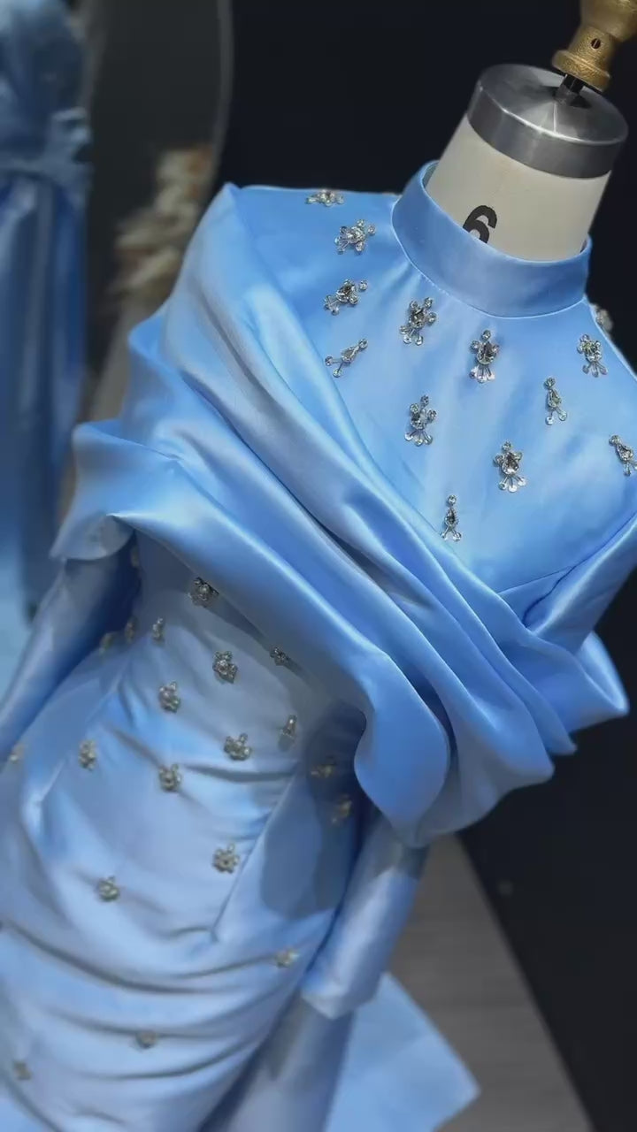 Elegant 3D Beaded Floral Blue Evening Dress with Overskirt SS271
