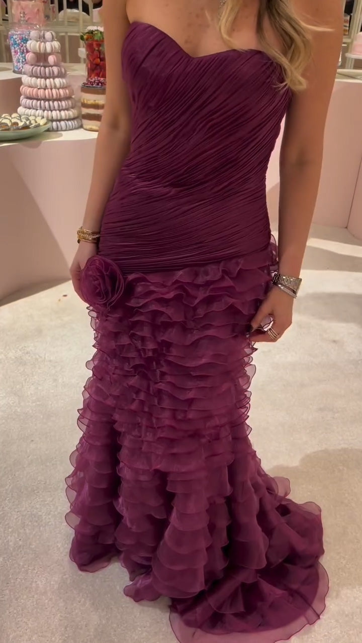 This elegant 3D floral purple pleats mermaid evening dress, SF194, is a perfect choice for any special occasion. Its stunning design, featuring intricate floral detailing and graceful pleats, exudes sophistication and style. Made with high-quality materials, this dress offers both comfort and luxury. Elevate your look with this exquisite and timeless piece.