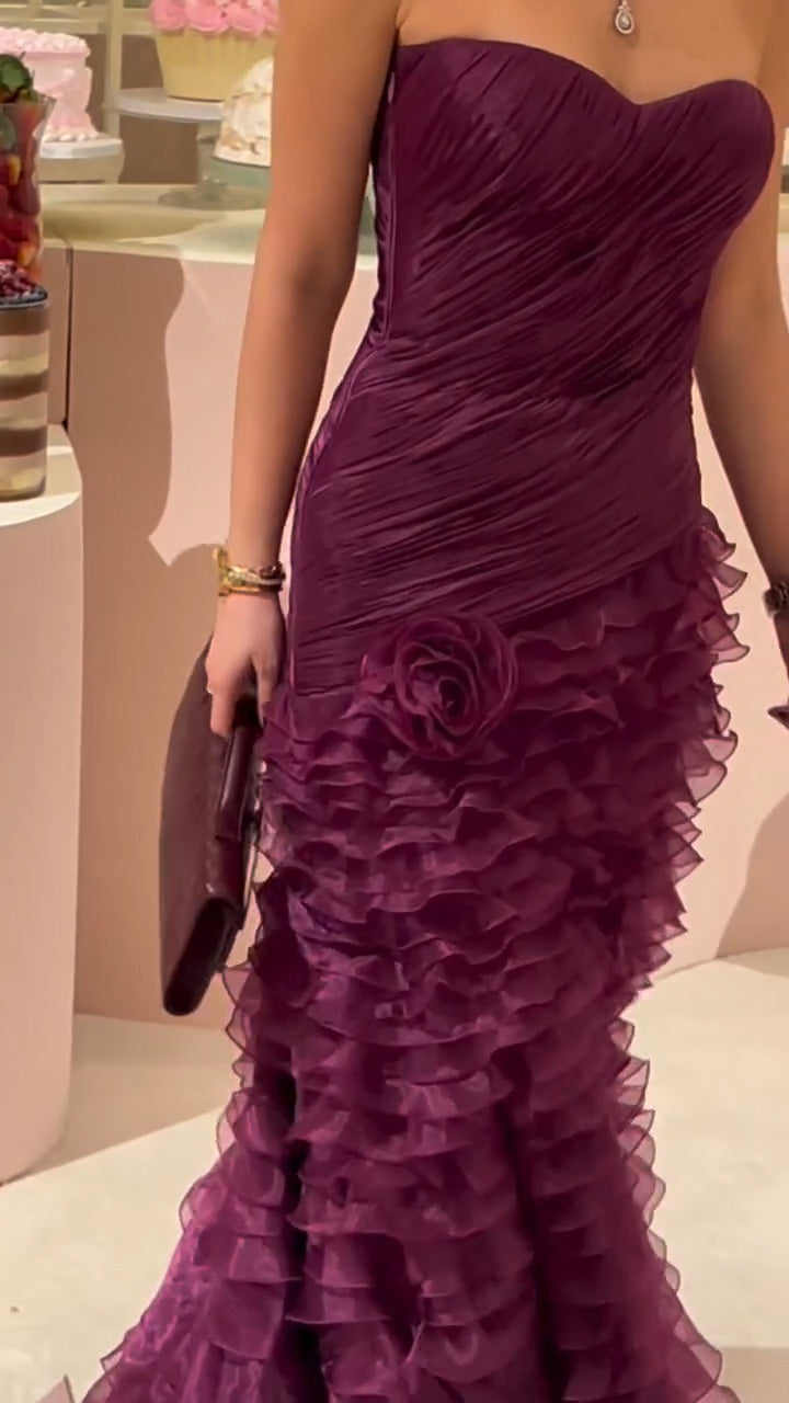 Elegant 3D Floral Purple Pleats Mermaid Evening Dress SF194