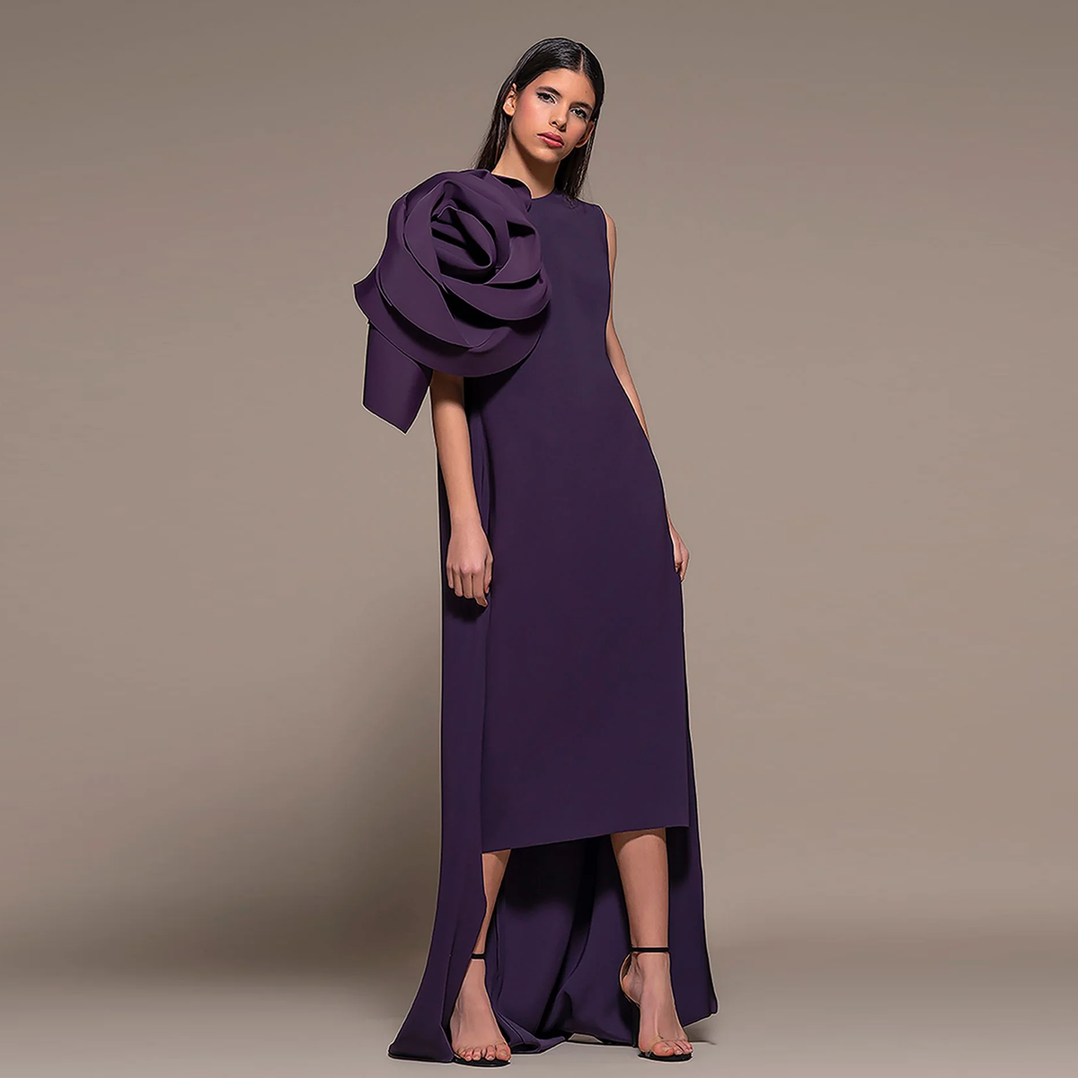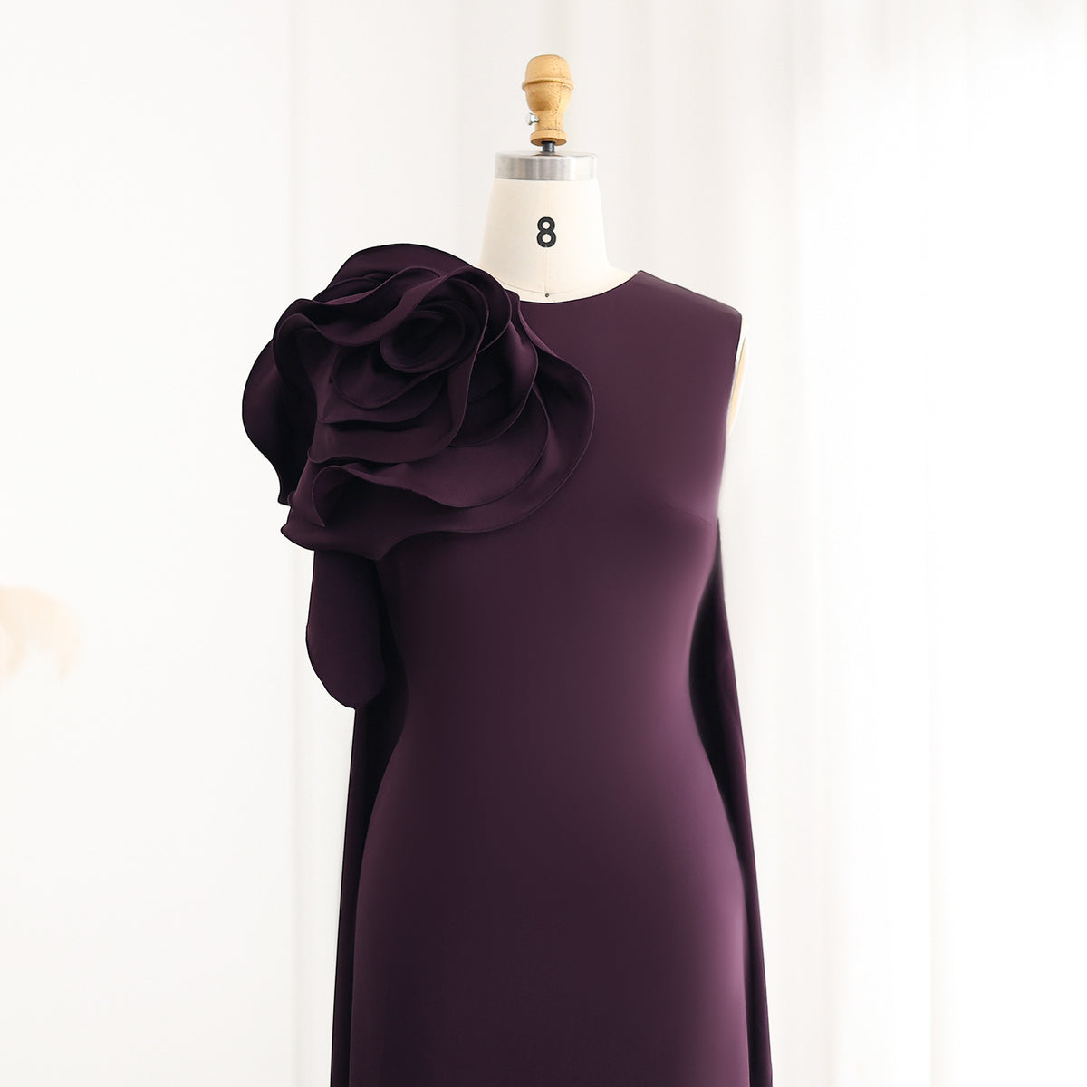 This Elegant 3D Flower Purple Scoop Midi Evening Dress with Cape SF067 is the perfect choice for any special occasion. The intricate 3D floral design and elegant scoop neckline add a touch of sophistication and glamour. The midi length and cape detail provide a unique and stylish look. Elevate your evening wardrobe with this stunning dress.