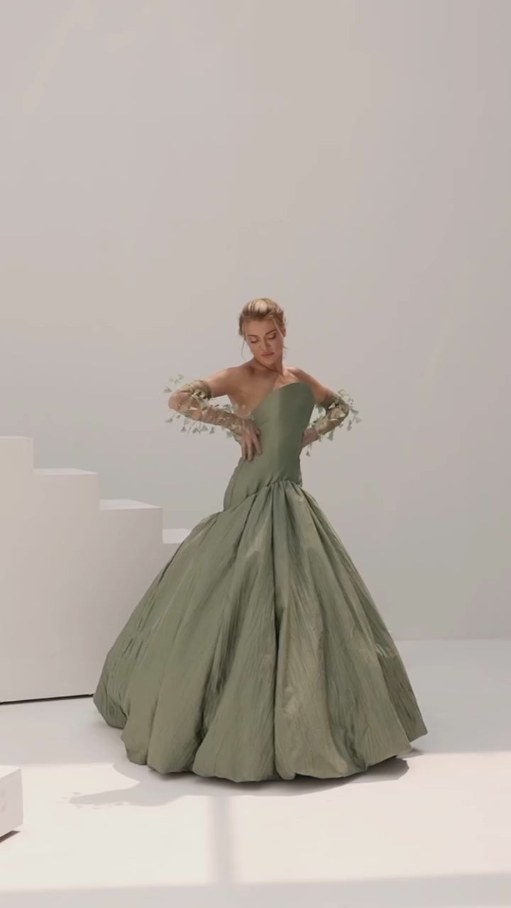 Elegant Agave Mermaid Evening Dress with Feather Gloves SF211
