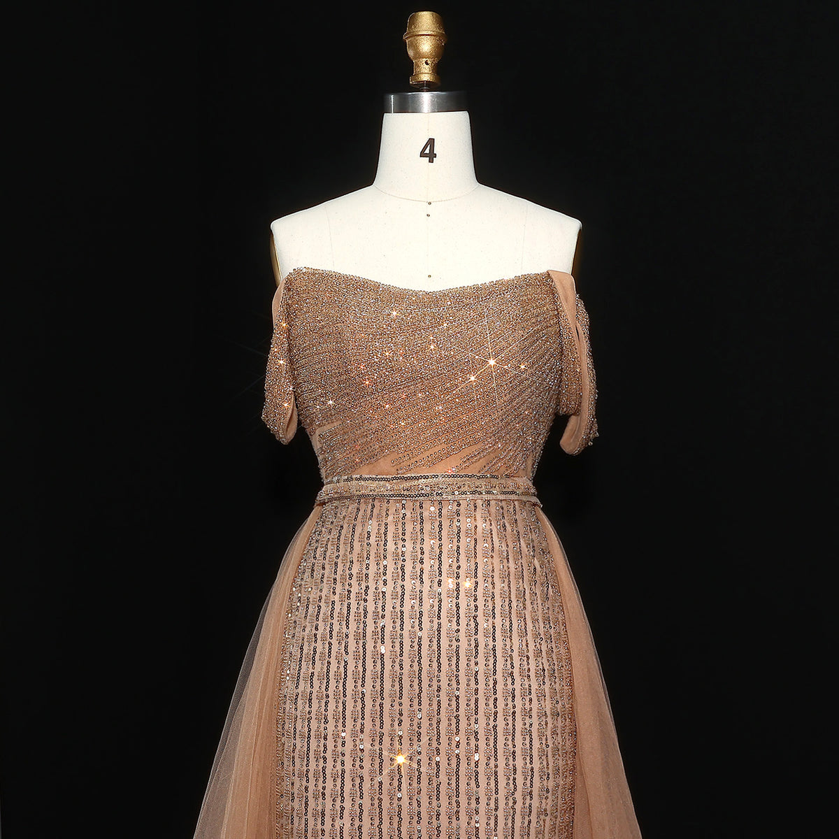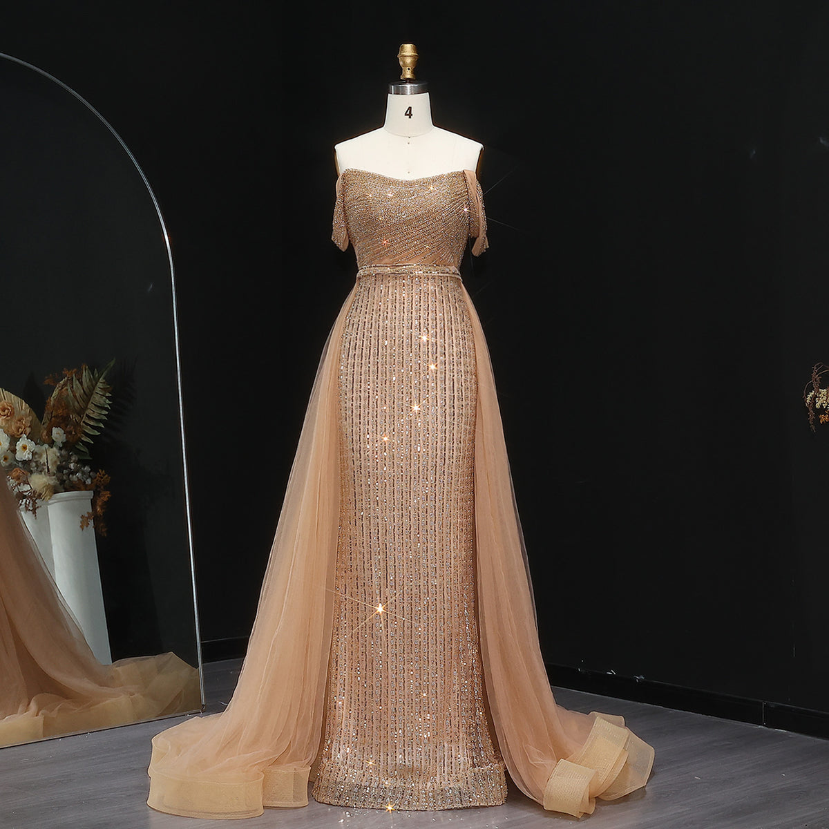 Crafted with intricate beadwork and a stunning purple hue, this Elegant Beaded Off-Shoulder Evening Dress is a showstopper. The off-shoulder design exudes grace, while the overskirt adds a touch of drama. Perfect for formal occasions, this dress will make you feel confident and elegant all night long.