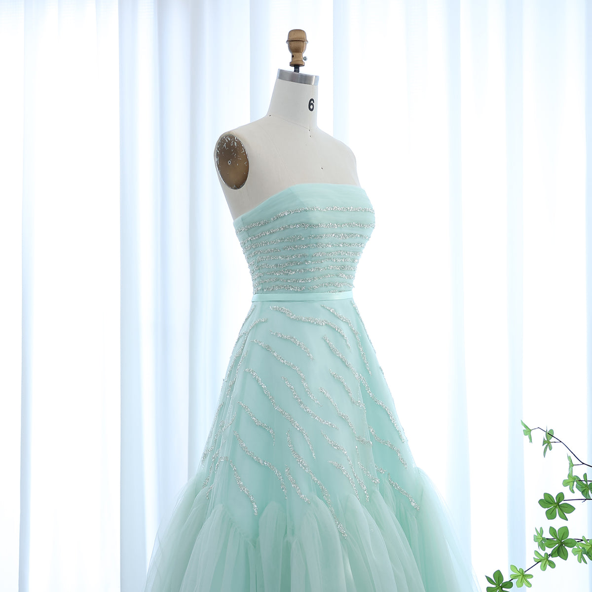 Elegant Beaded Sage Green Strapless Evening Dresses SS483