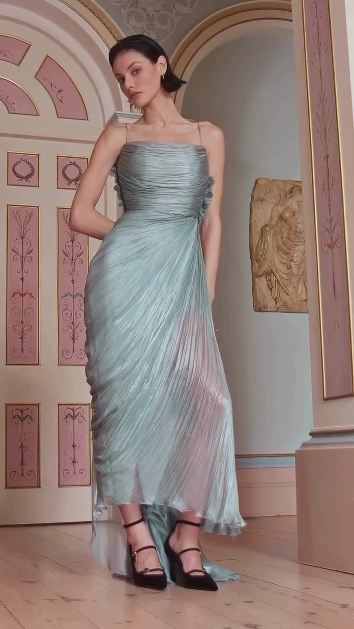 Enhance your elegance and grace with our Elegant Blue Spaghetti Straps Pleats Evening Dress SF287. Featuring delicate spaghetti straps for a sophisticated touch, the pleated design adds a touch of texture and movement to this stunning dress. Perfect for any special occasion, this dress will make you stand out with its timeless beauty.